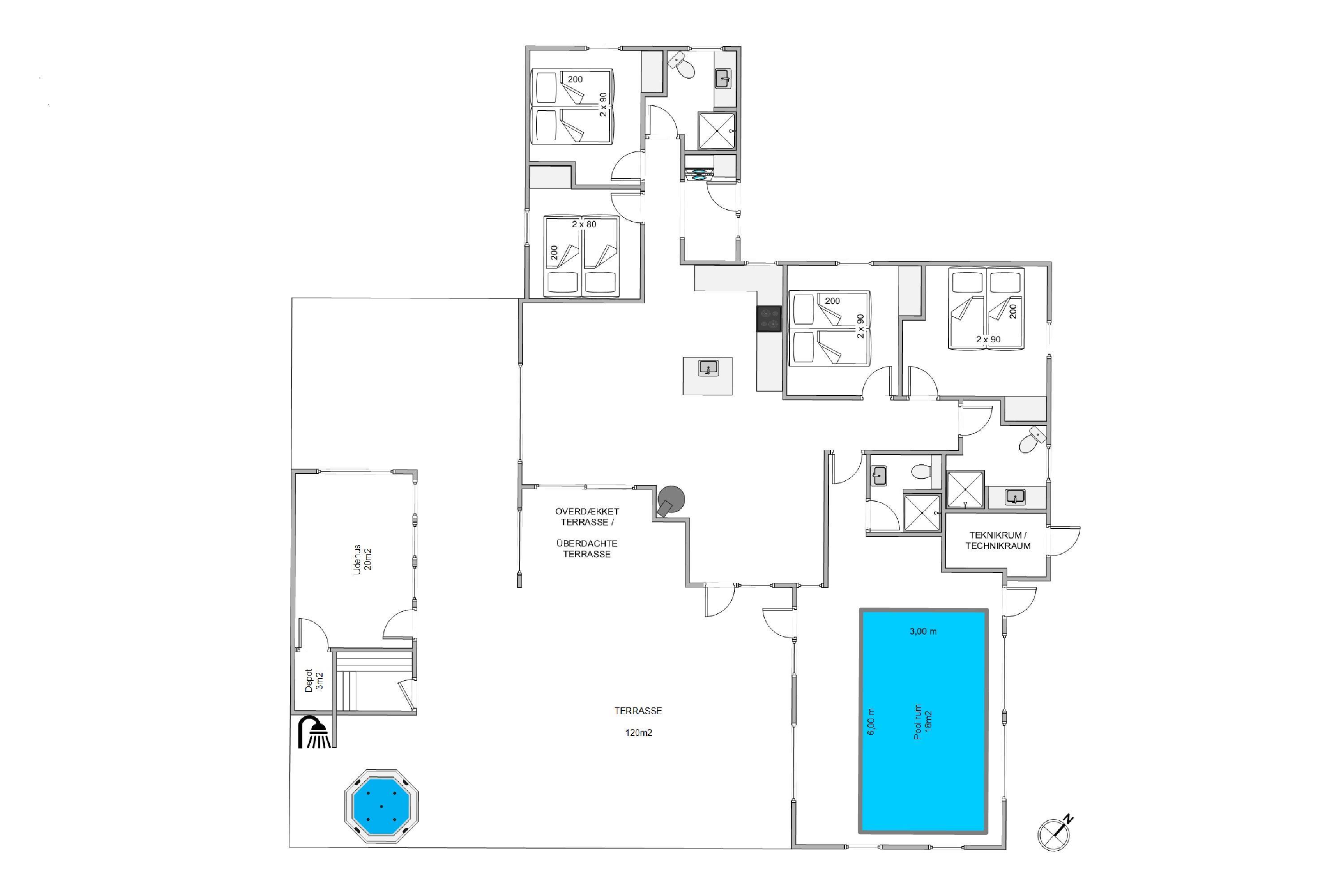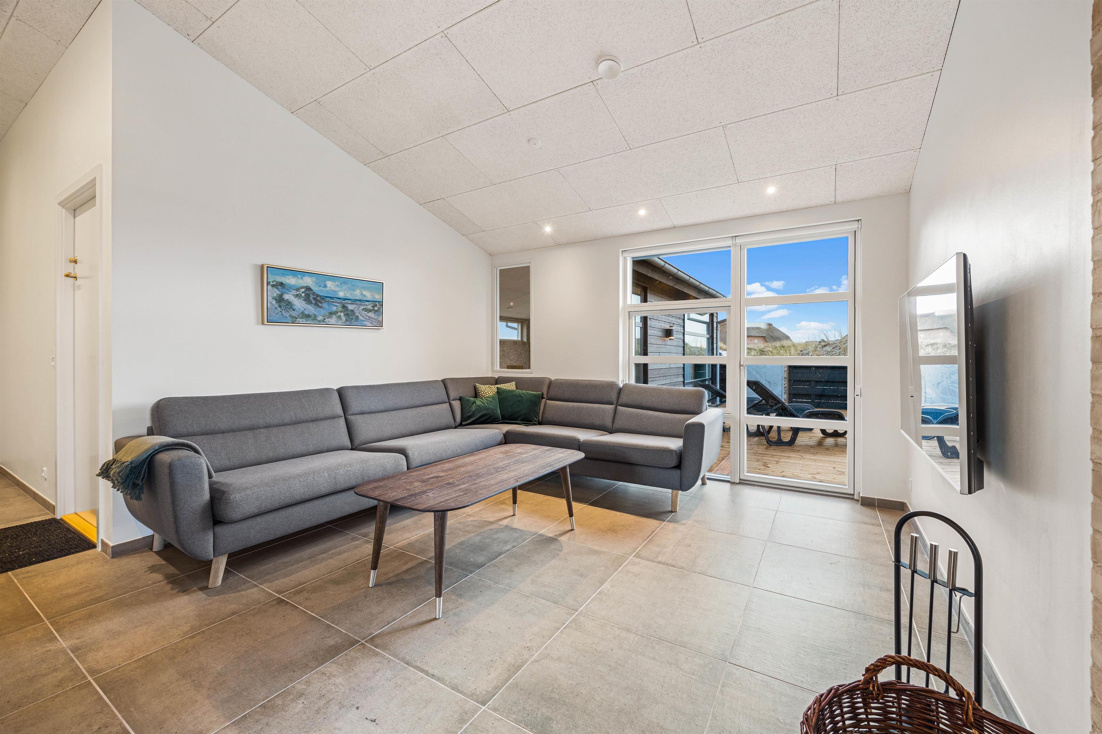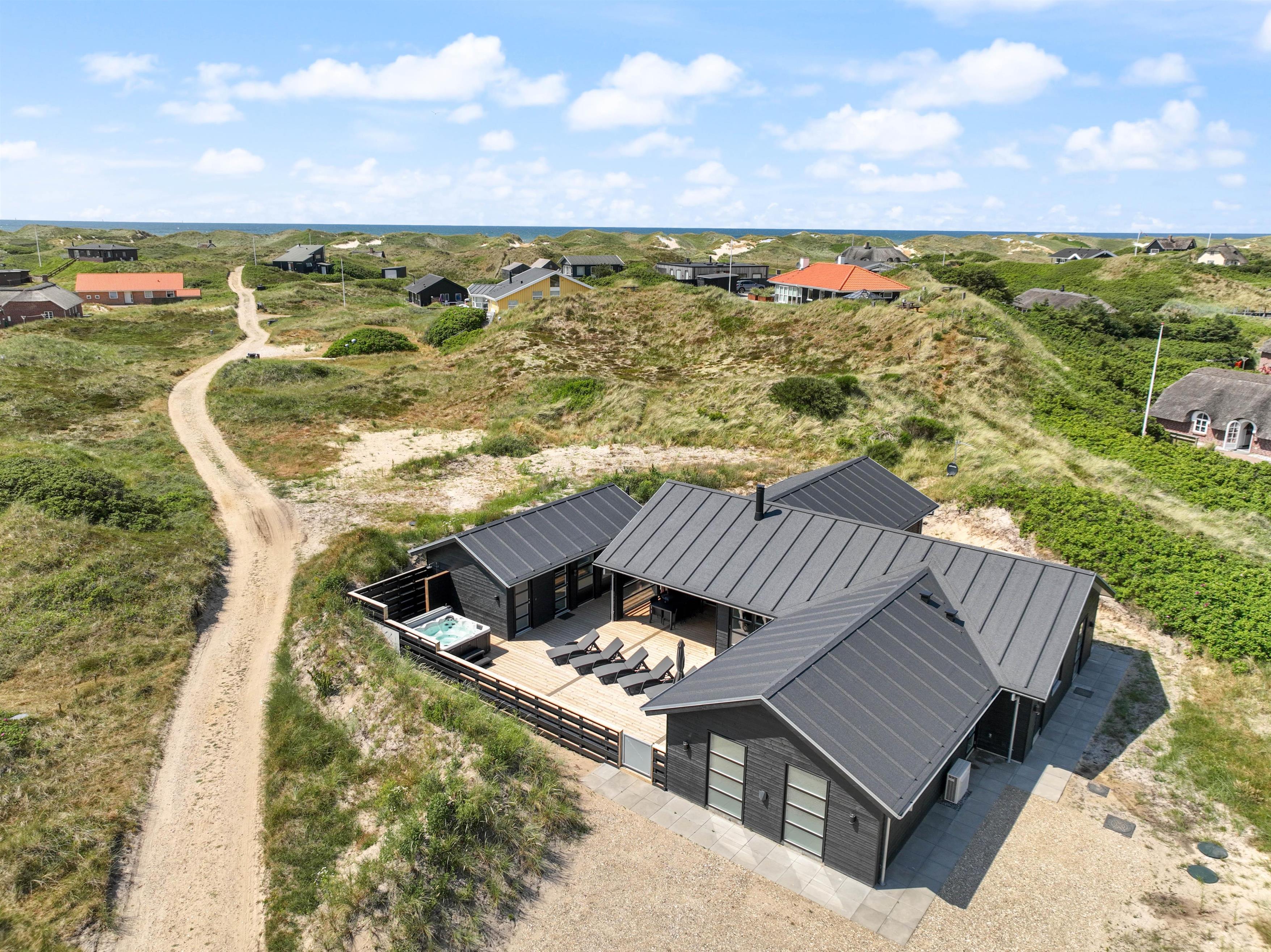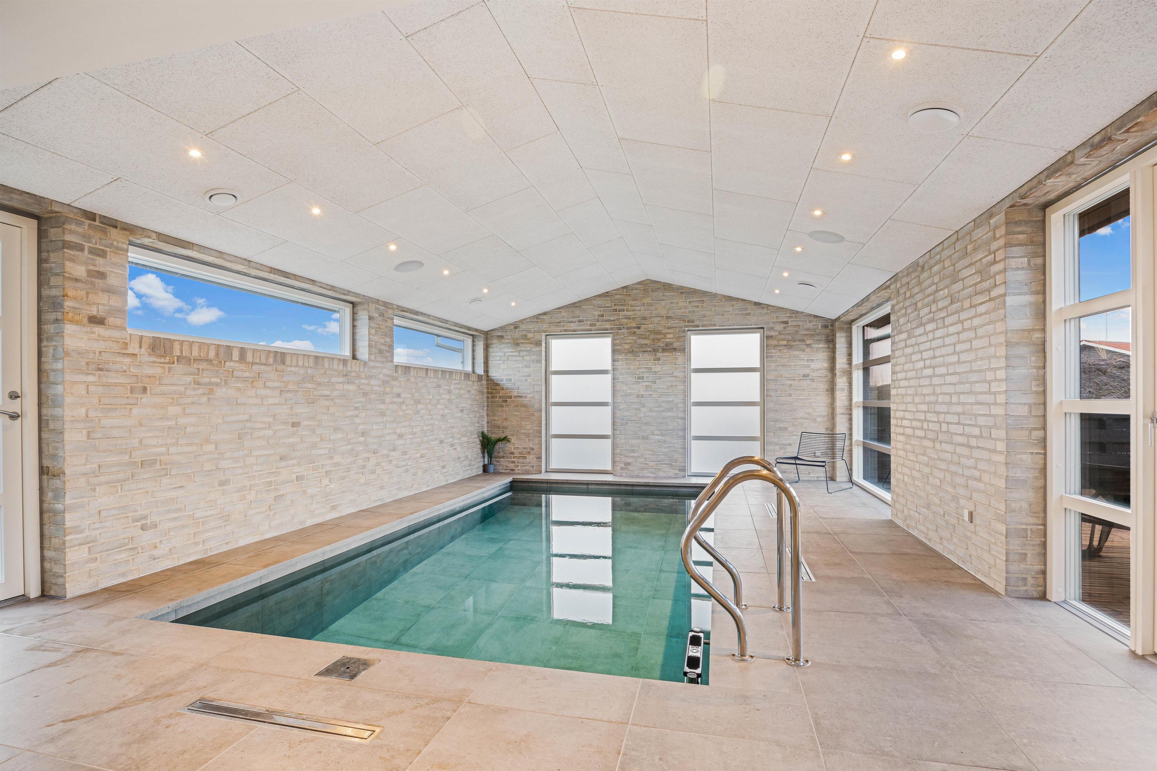 This newly built holiday home from 2022, located just 400 metres from the beach, offers a relaxing retreat for the whole family. If you're looking for a holiday home with wellness facilities, this holiday home at Holdvej 50 could be the perfect choice. The holiday home features a swimming pool with counter-current system, a large outdoor hot tub for six people, a sauna, an outbuilding with recreational facilities, and is just 400 metres from the sea. The house enjoys a particularly peaceful setting, situated on a quiet road with properties only on one side.