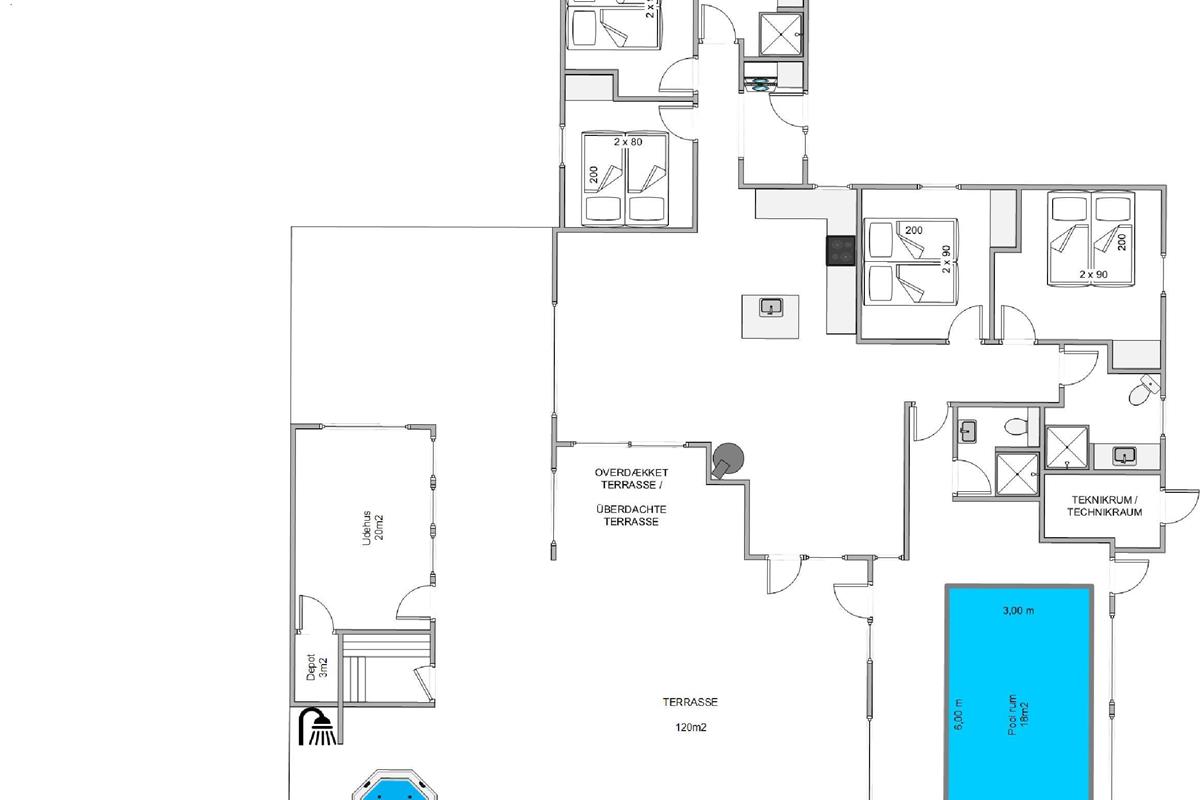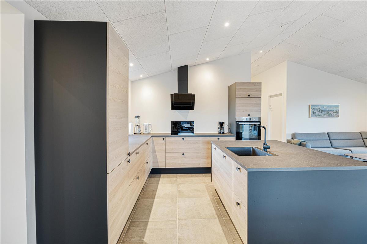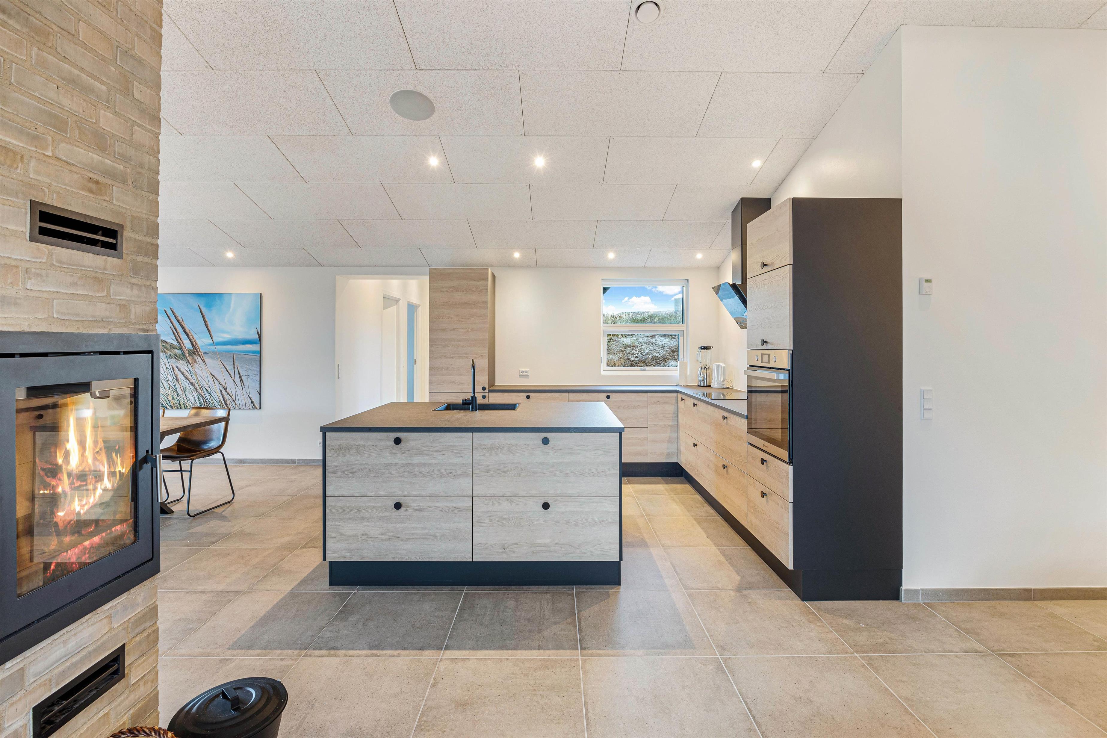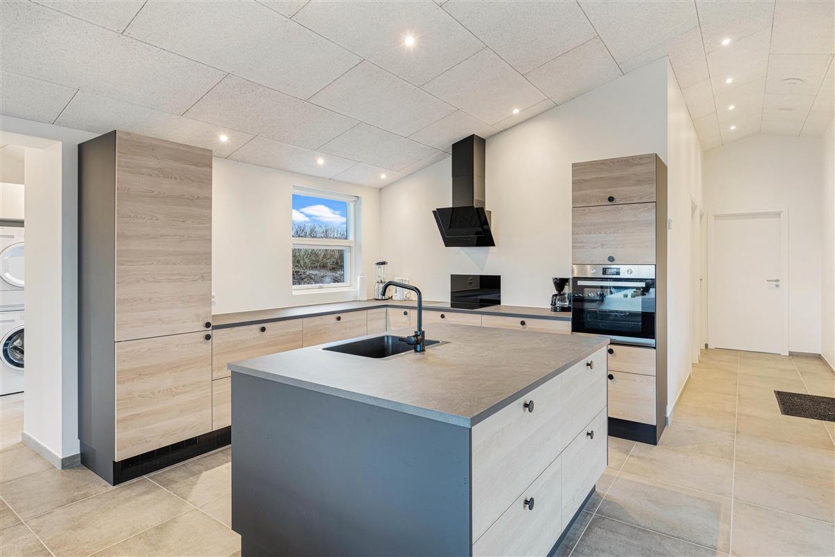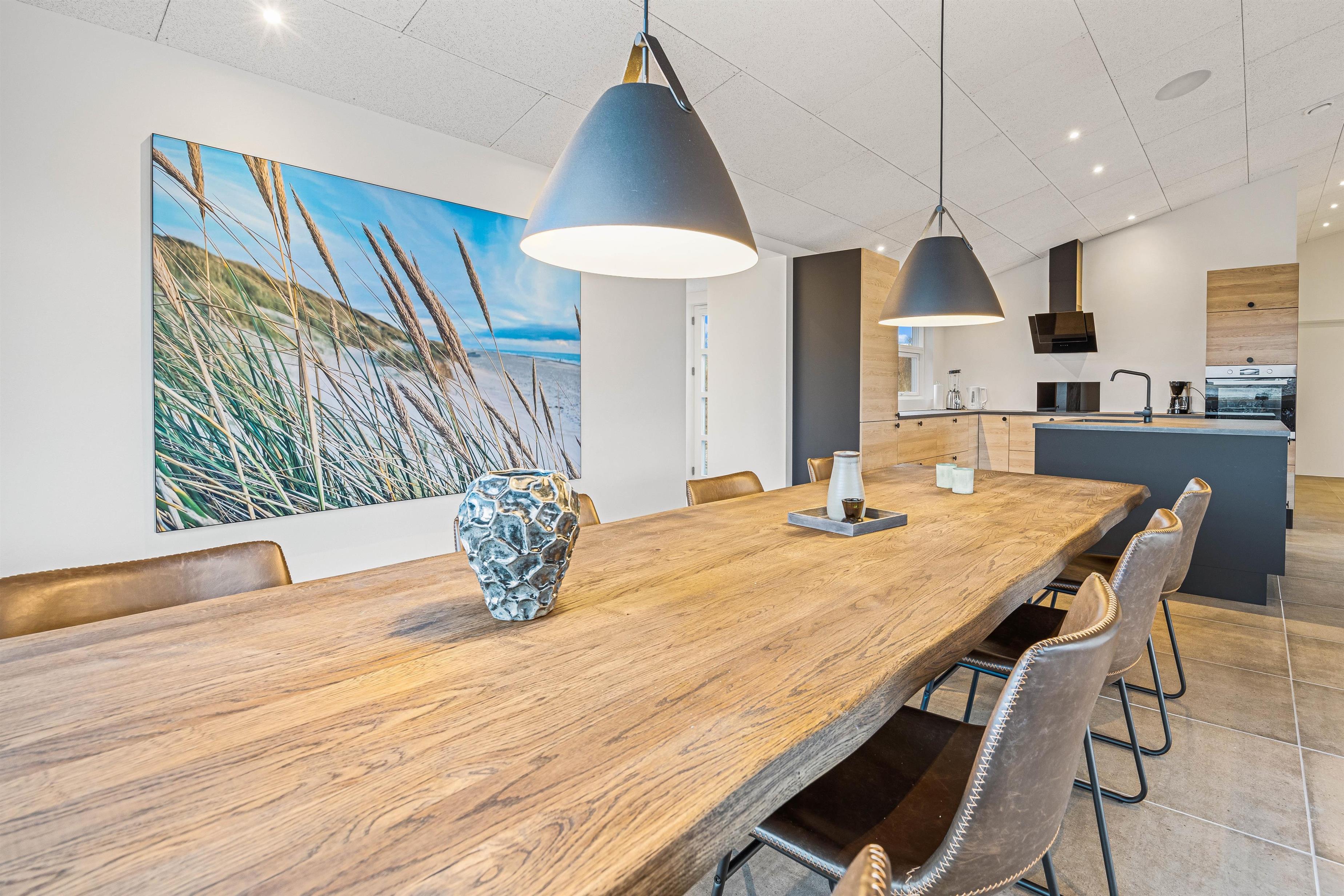 The open-plan living room with its large integrated kitchen area and wood-burning stove forms the heart of the house, perfect for spending cosy holiday moments cooking together and planning activities. Fancy a game of table tennis in the outbuilding? Start your day with an invigorating swim in the salt-water pool with counter-current system before enjoying a well-deserved breakfast. The holiday home is equipped with two Genvex ventilation systems, ensuring excellent air quality throughout the pool area and living spaces. Two separate wireless ceiling-mounted music systems allow you to enjoy your favourite music in the comfortable living room while those using the pool can listen to their own choices.