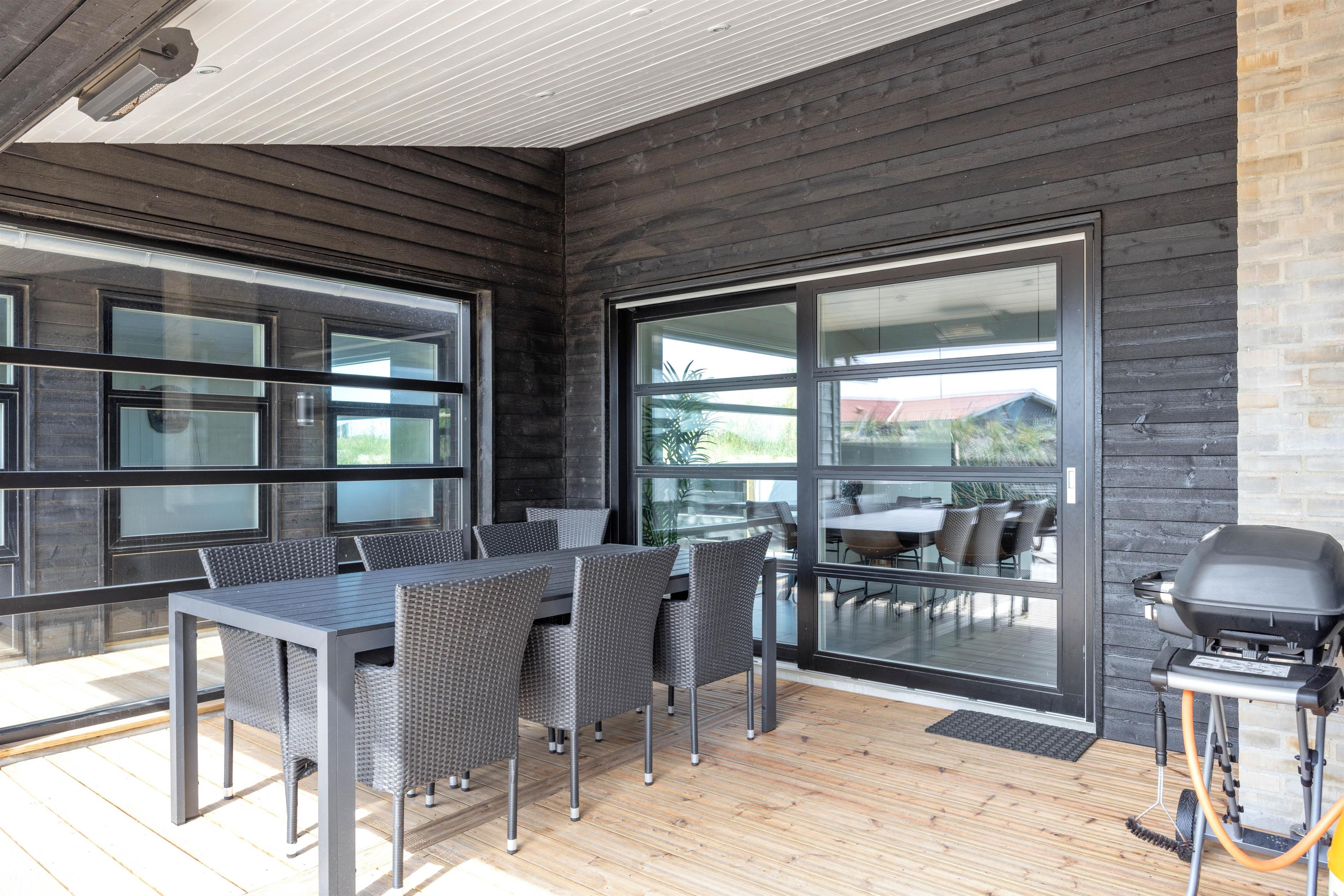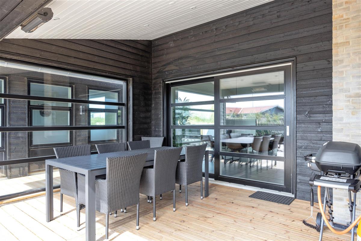 One of the absolute highlights is the large and beautiful south and west-facing terrace with the outdoor hot tub. Here you can unwind in the evening while enjoying the clear, starlit sky. Meanwhile, children can play in the sandbox or on the swing. The well-equipped terrace features garden furniture, a gas barbecue, parasol and sun loungers. There's also a lovely covered terrace area with energy-efficient infrared patio heaters.