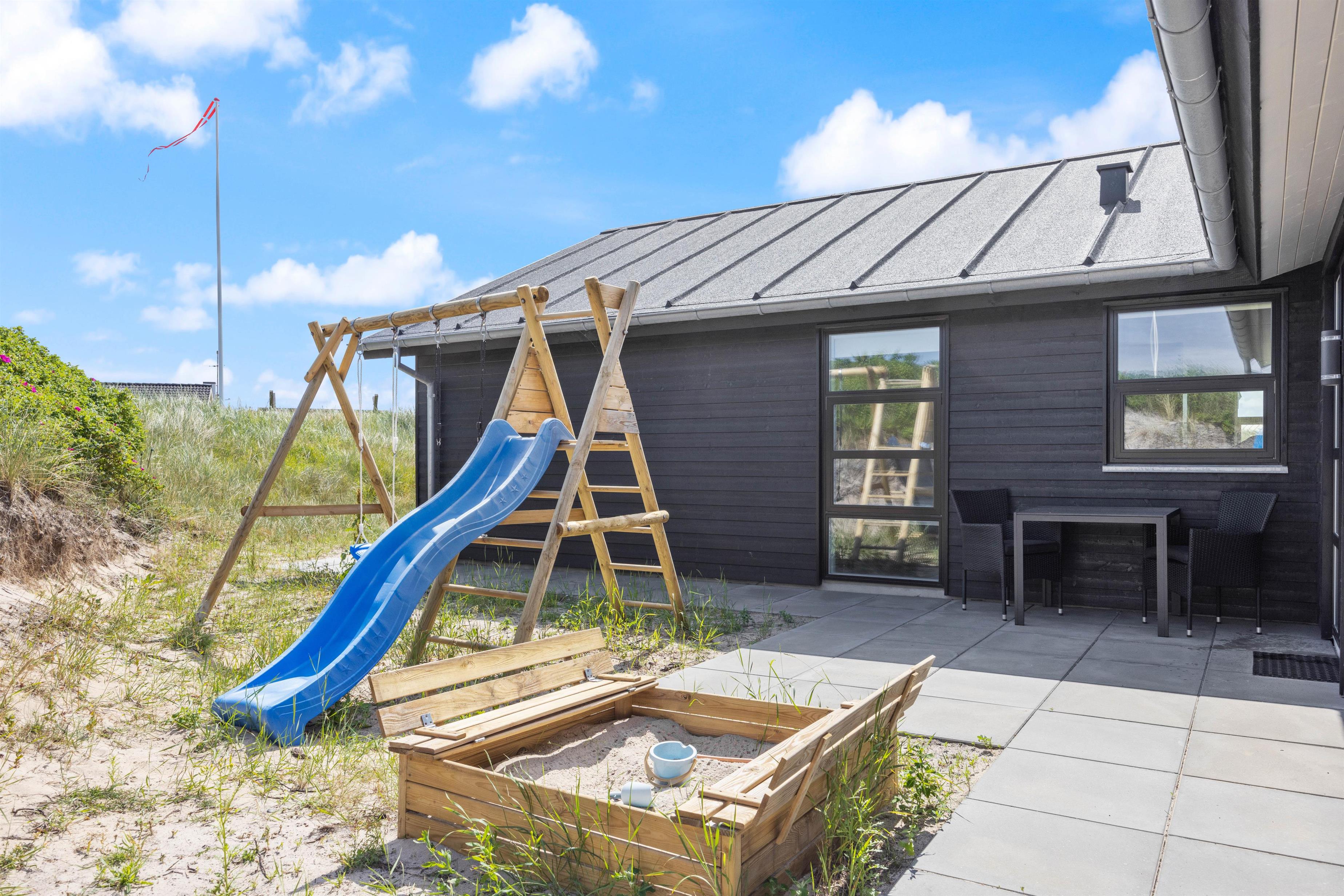Young holidaymakers haven't been forgotten either - while children enjoy the sandbox or swing, you can relax on the large terrace or prepare a delicious evening meal on the barbecue. Well-equipped with garden furniture and sun loungers, Holdvej 50 is perfect for spending days at home enjoying your own little wellness oasis. After a day at the beach, you can quickly rinse sandy feet under the outdoor shower (available April-November).