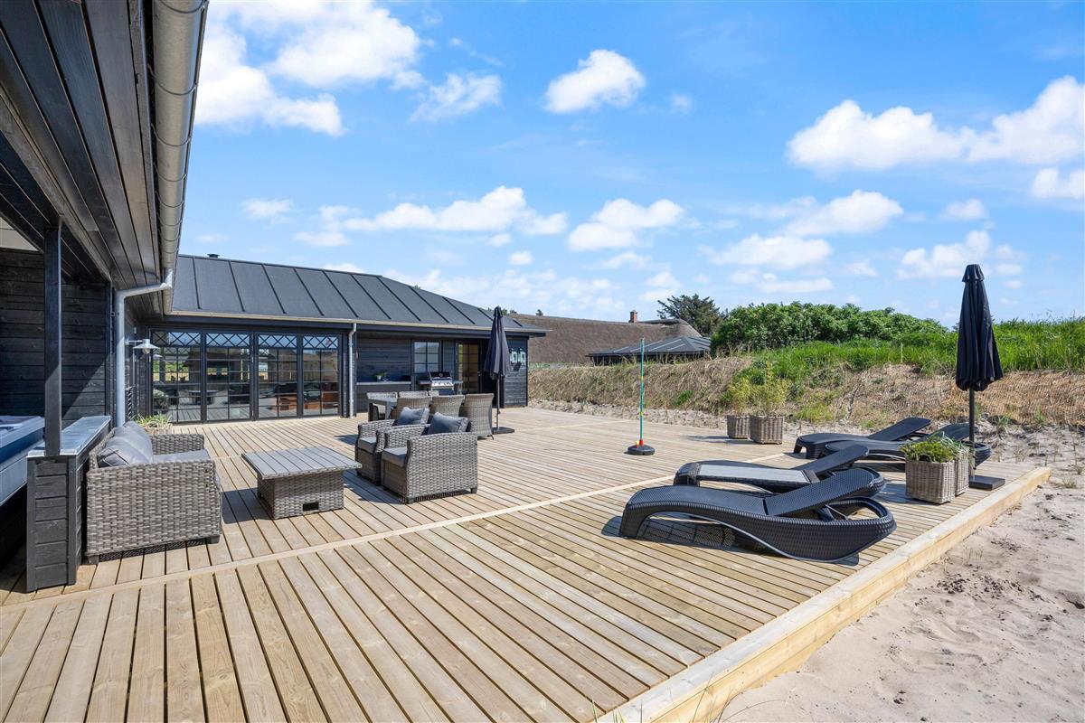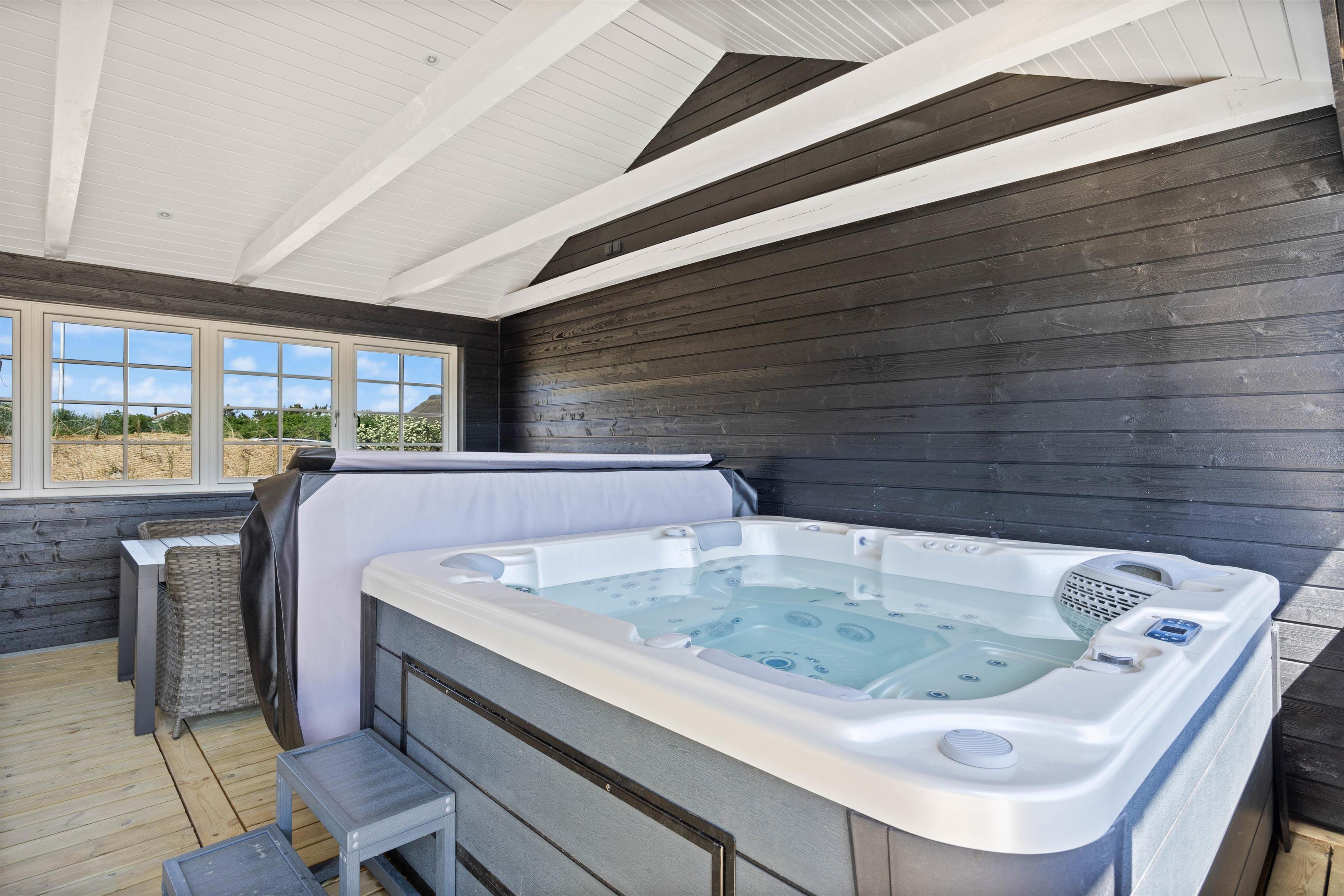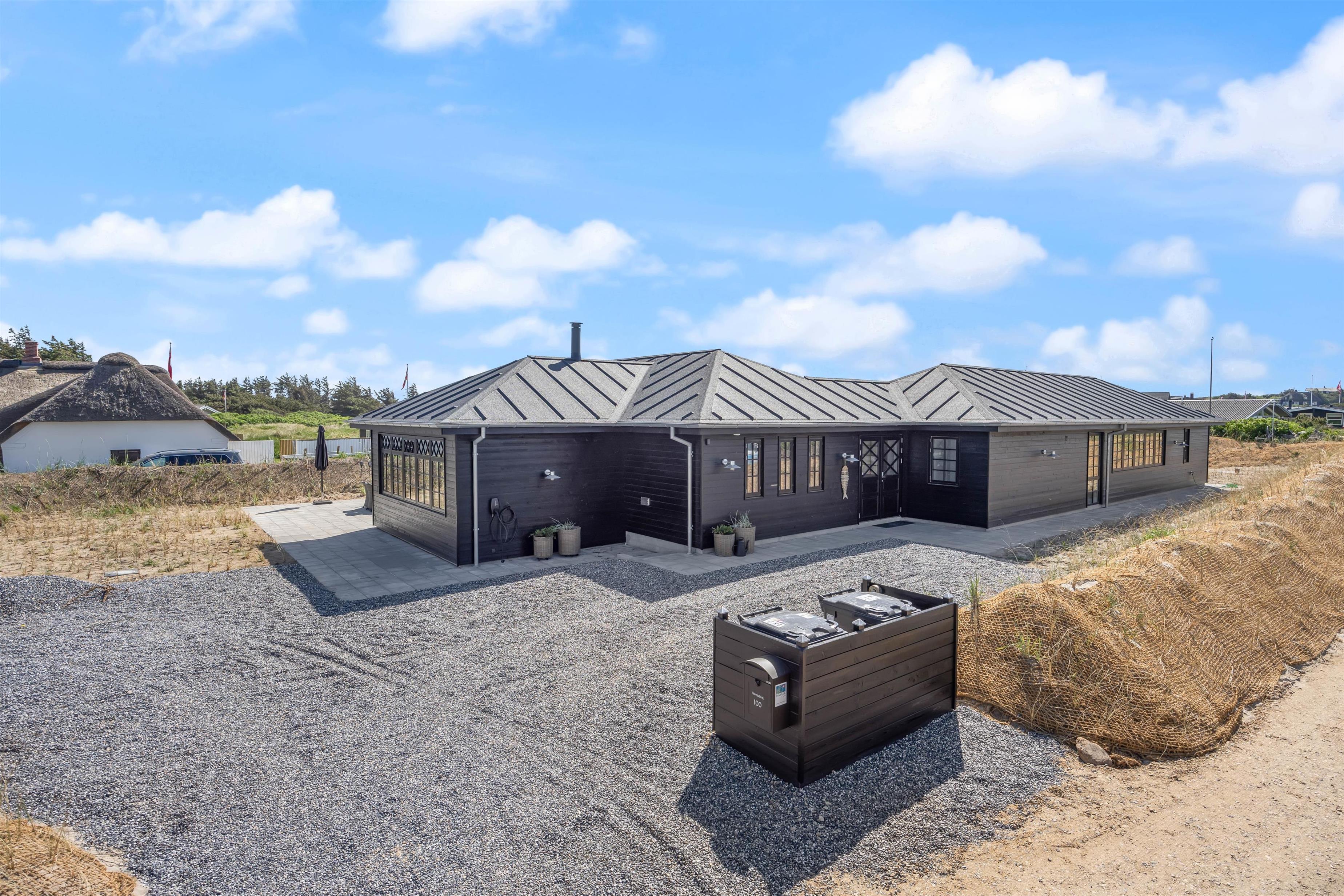 Looking for a family holiday home with extra relaxation features? This newly built holiday home for 2024, located at Nordsøvej 100 in Søndervig, is perfect for you. The holiday home combines entertainment and relaxation, offering something for everyone. Inside, you'll find a pool table for entertainment, while outdoors you can unwind from everyday stress in the sauna and hot tub. One of the highlights is its proximity to the rolling North Sea, just 500 metres away, and when the weather gets warm, you can cool off under the outdoor shower. An electric car charging point is available for guests arriving by electric vehicle.