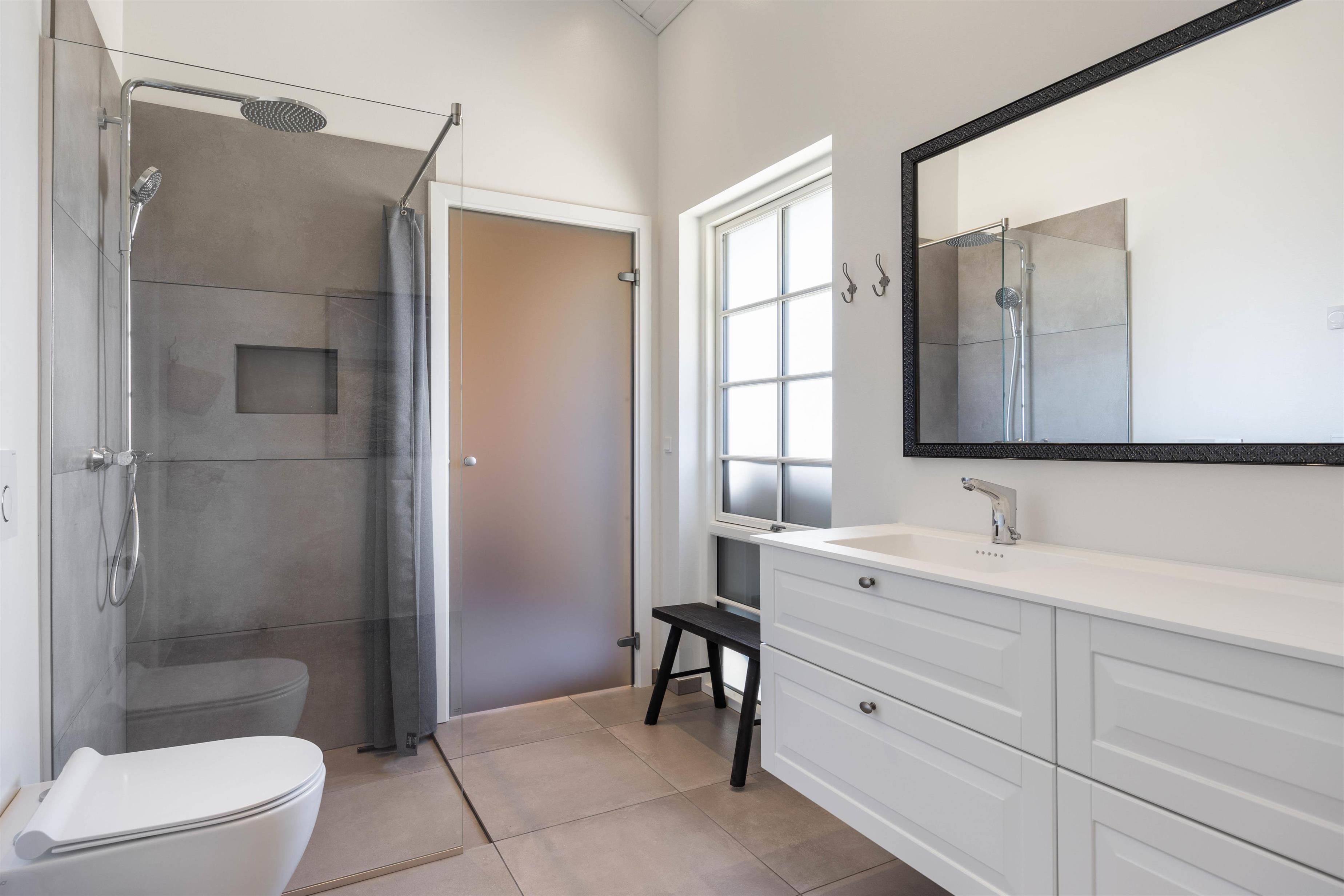 Built in 2024, this holiday home comfortably accommodates up to six people. The heart of the holiday home is its open-plan living area, combining the kitchen, dining area and living room. Here you can cook together, spend time with family, or relax watching your favourite film via the holiday home's Chromecast. The wood-burning stove creates a cosy atmosphere in the evenings. The living area leads to three bedrooms, each with a double bed, perfect for recharging your batteries. For groups travelling together, there's no morning queue for the bathroom - the holiday home has two bathrooms inside, plus a third in the annexe.