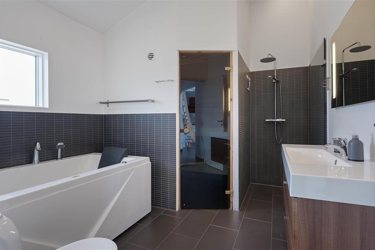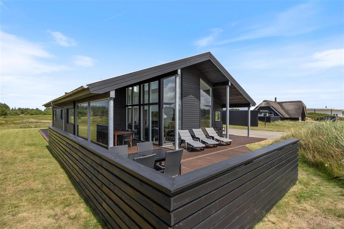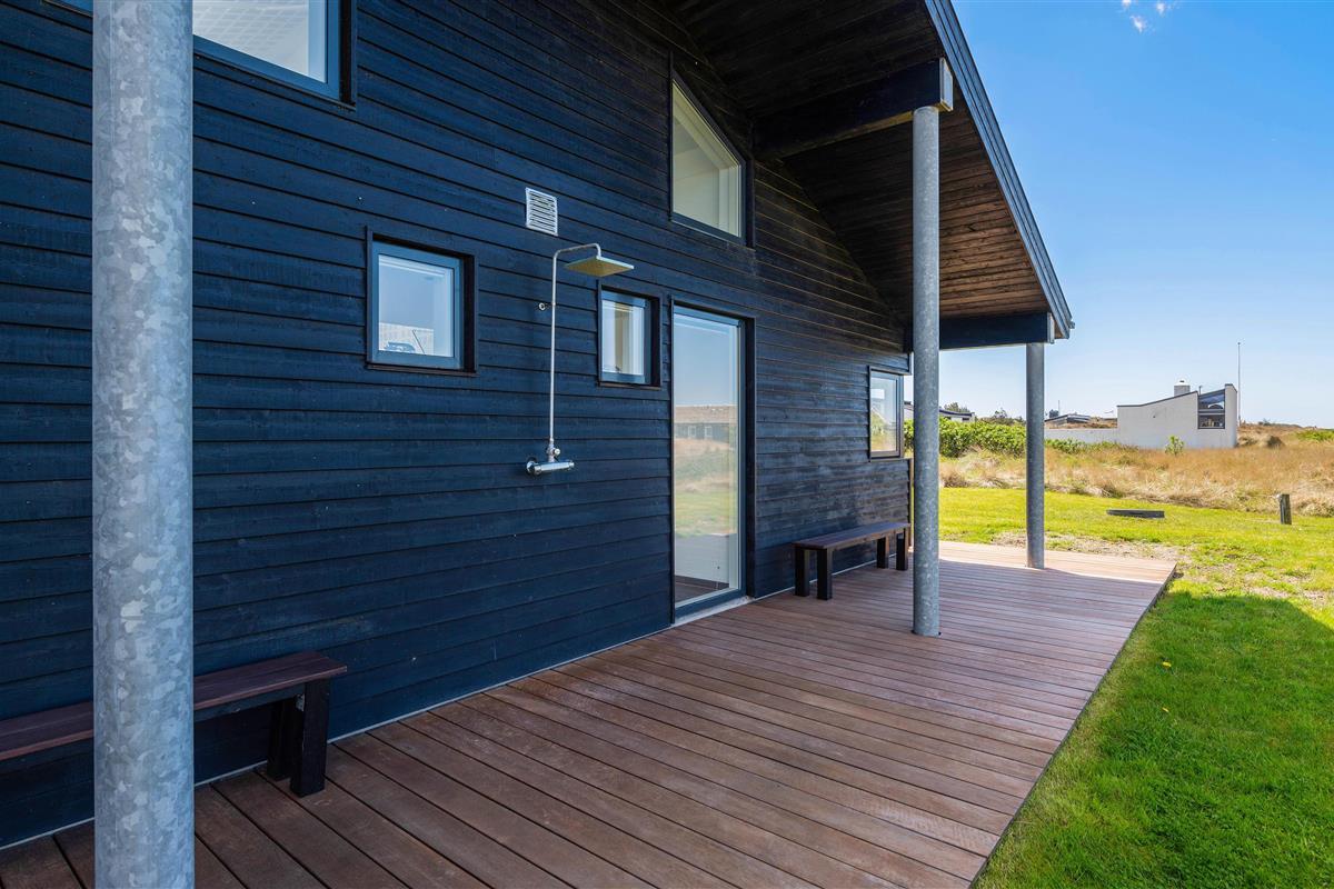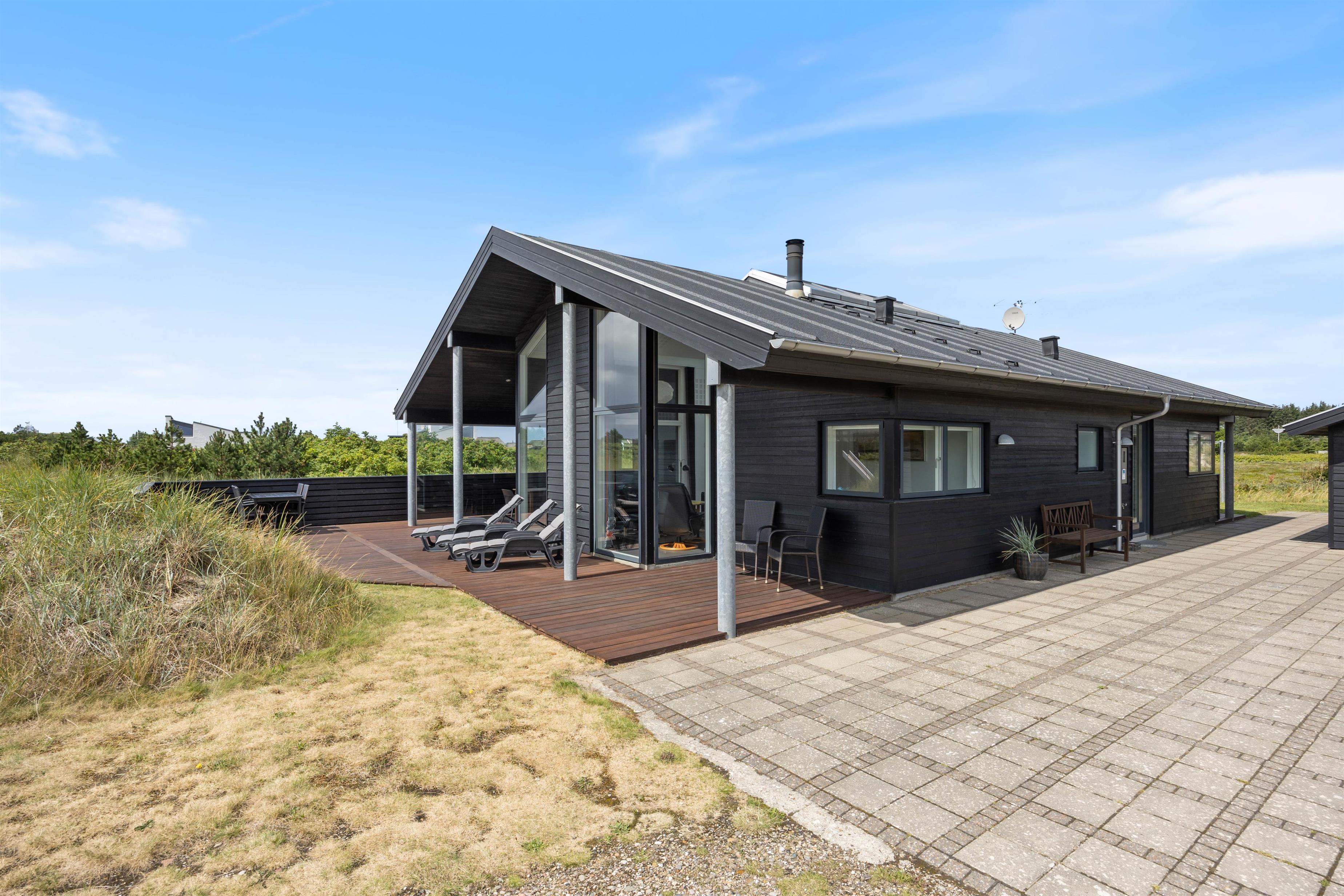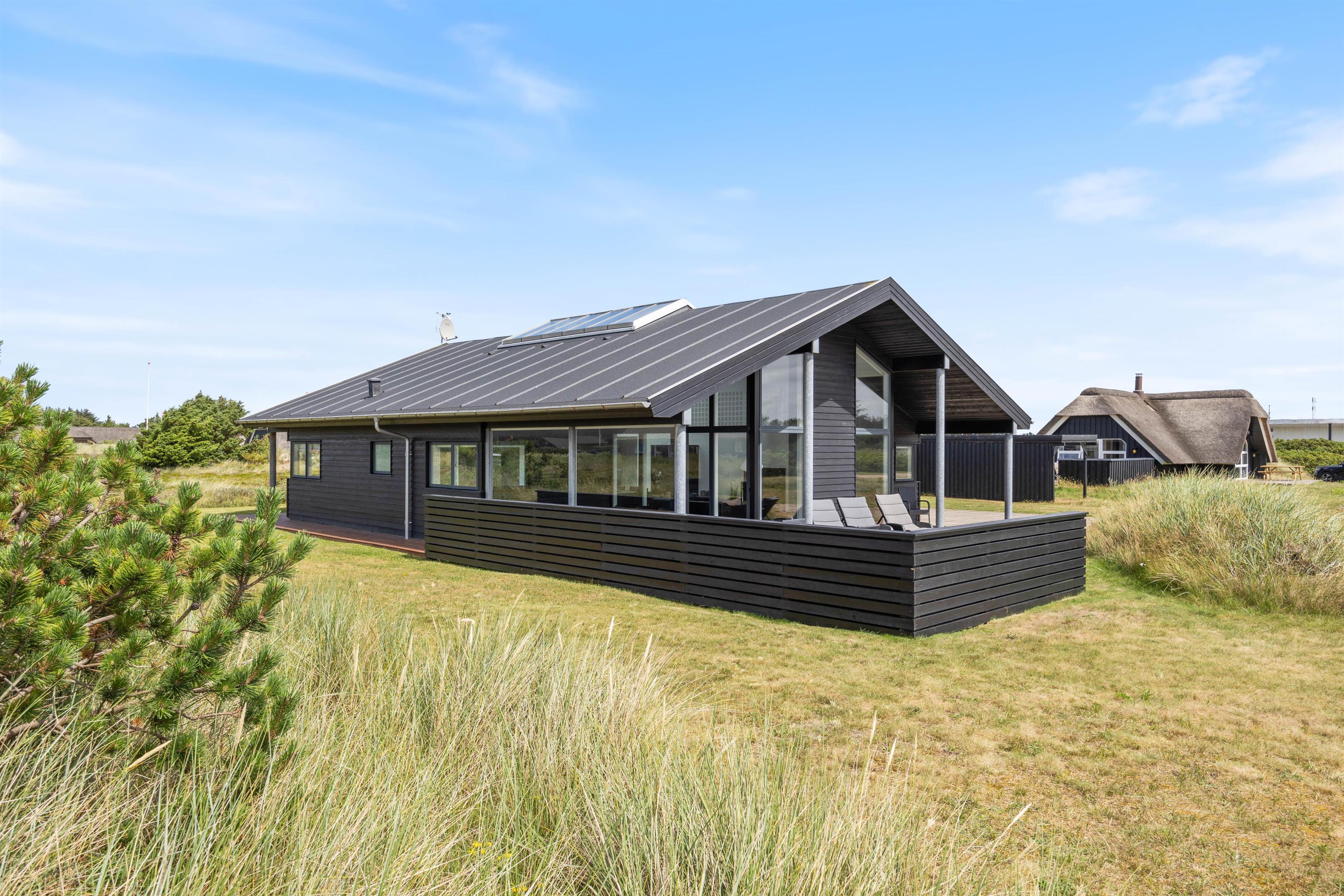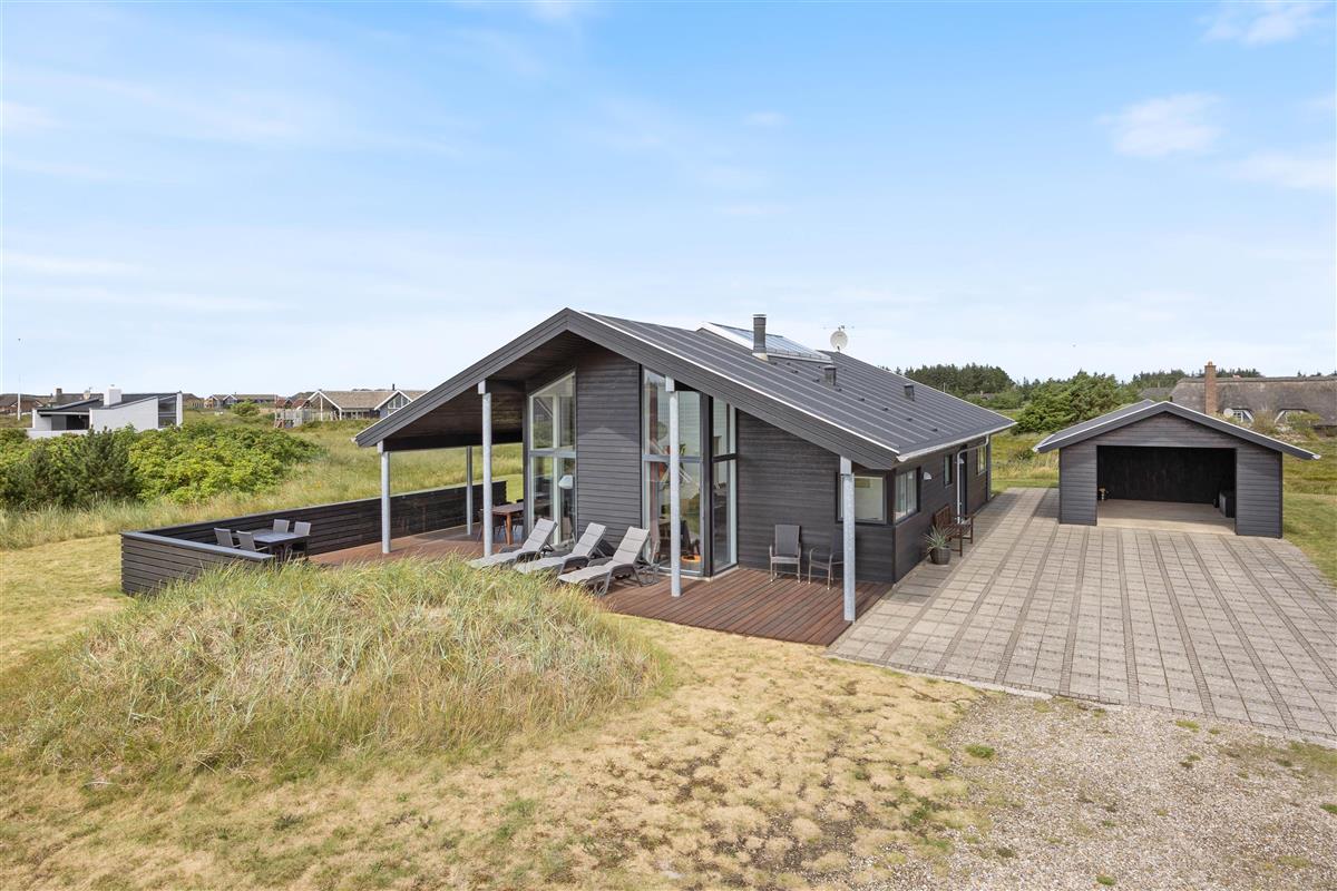 This stylish holiday home close to the beach features a hot tub, sauna and outdoor shower for a spa experience - plus a carport for your car and bicycles - every detail has been considered. Located at Jakob Bondes Vej 22, this well-appointed holiday home offers spacious, bright rooms - including a living area with fantastic skylights - providing plenty of space for up to 8 people to enjoy quality time together. It's surrounded by terraces - the south-western terrace is partially covered and screened, perfect for outdoor living. The holiday home features an electric car charging point.