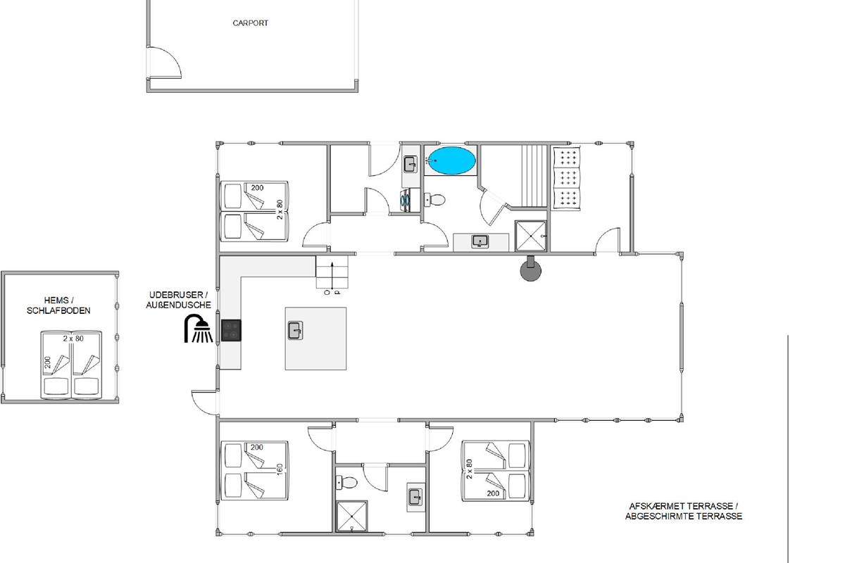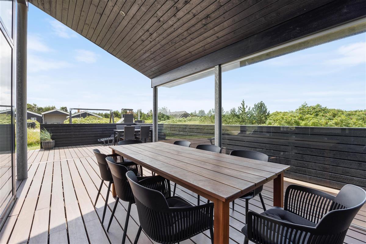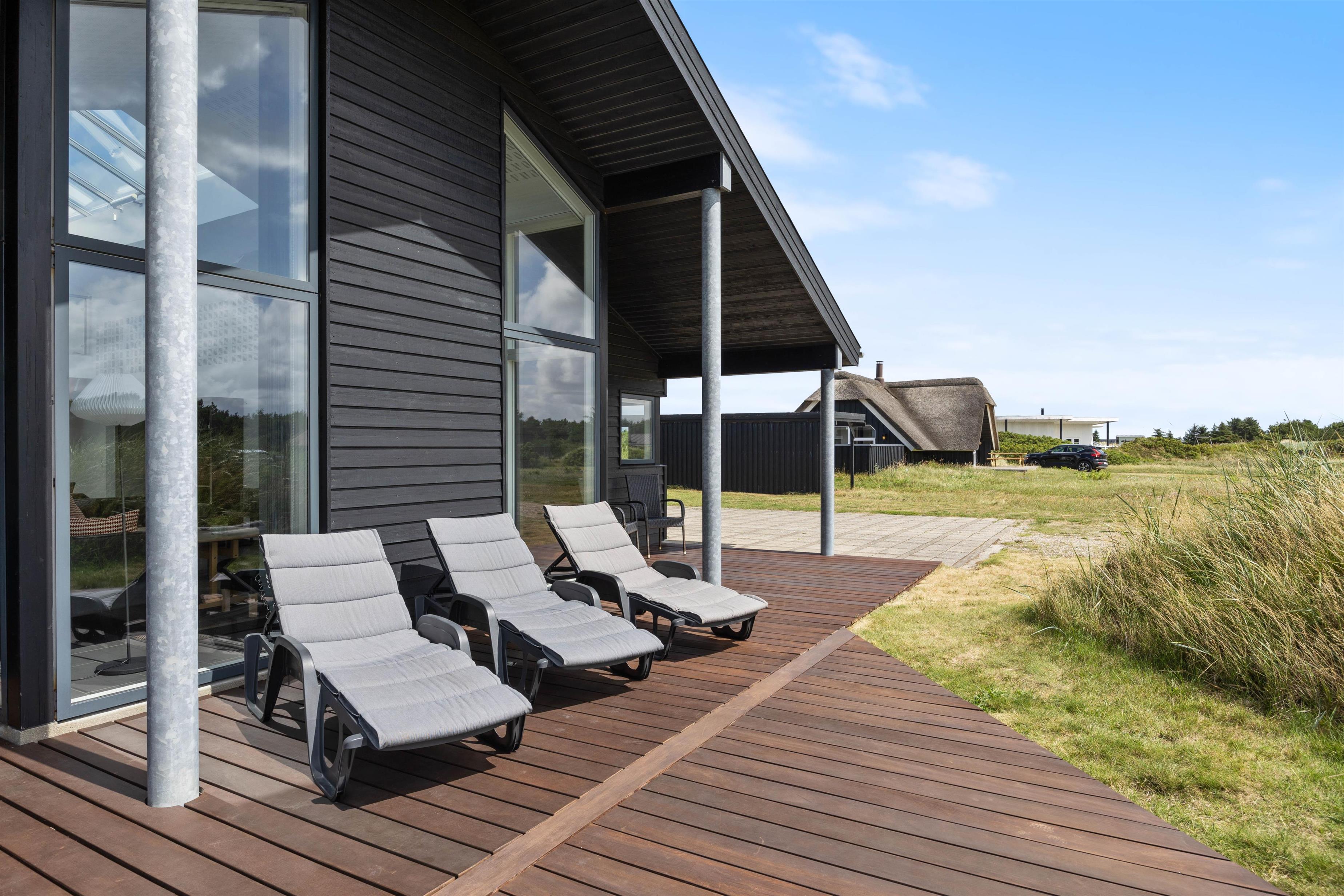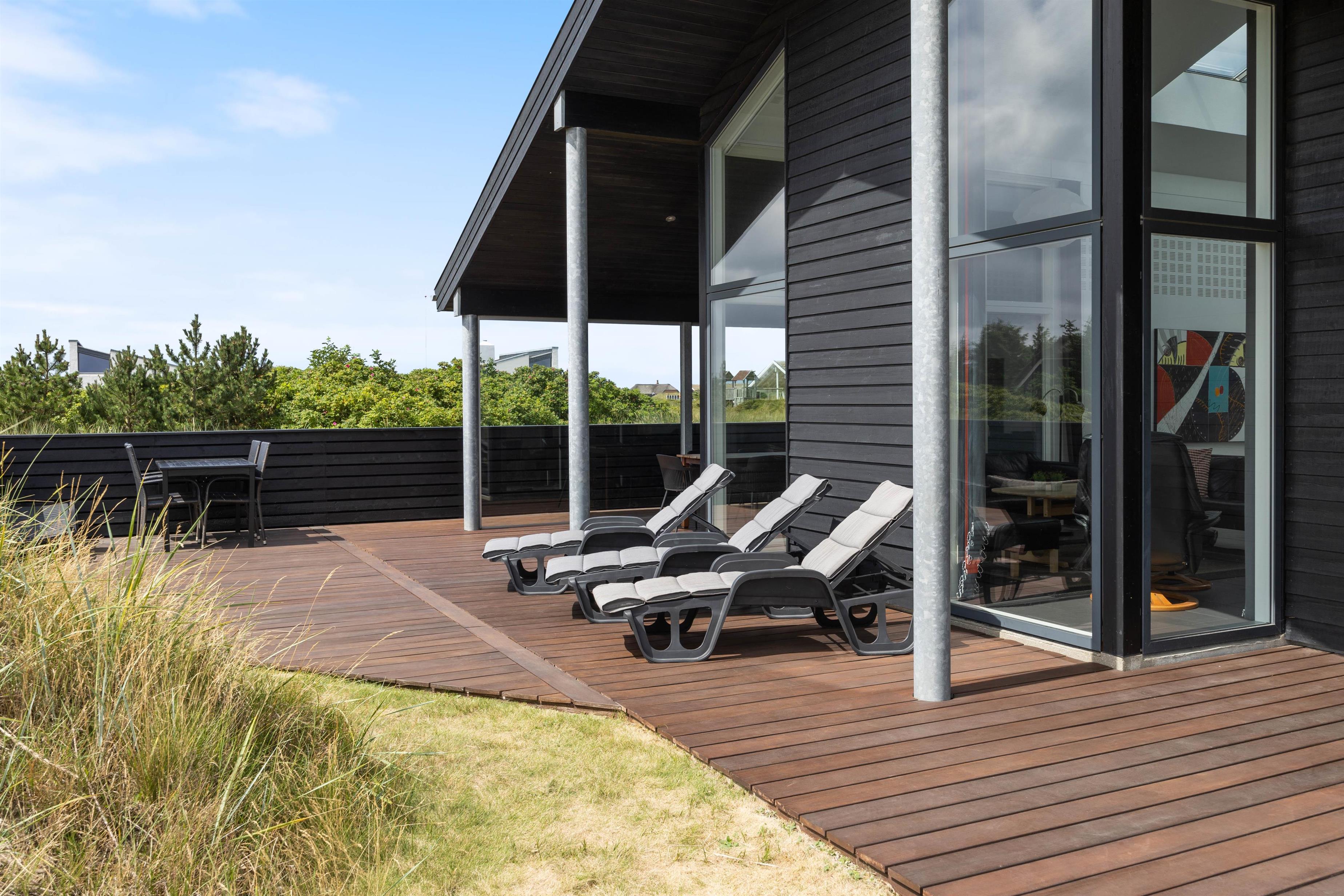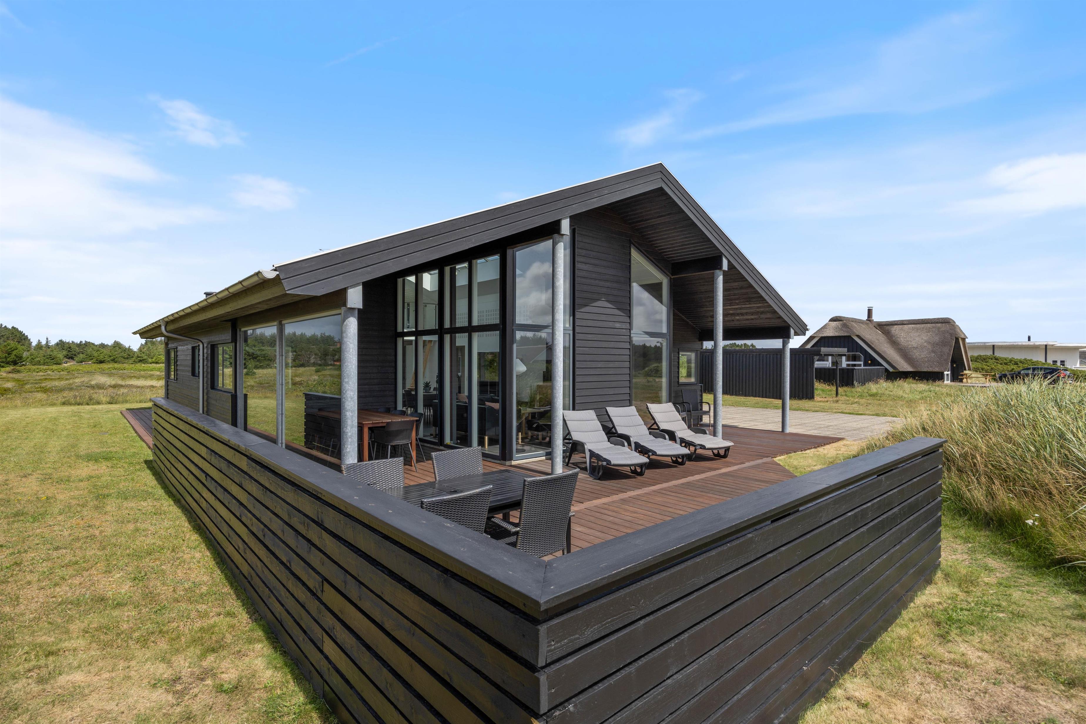 This stylish holiday home close to the beach features a hot tub, sauna and outdoor shower for a spa experience - plus a carport for your car and bicycles - every detail has been considered. Located at Jakob Bondes Vej 22, this well-appointed holiday home offers spacious, bright rooms - including a living area with fantastic skylights - providing plenty of space for up to 8 people to enjoy quality time together. It's surrounded by terraces - the south-western terrace is partially covered and screened, perfect for outdoor living. The holiday home features an electric car charging point.