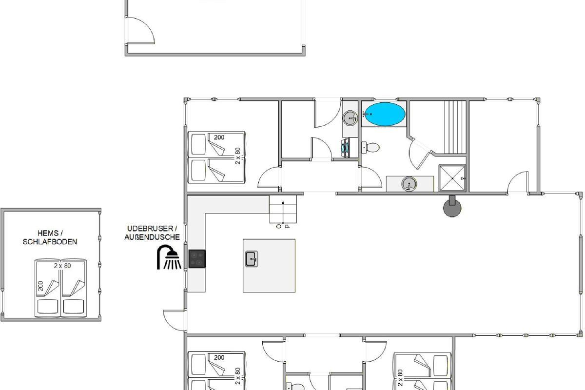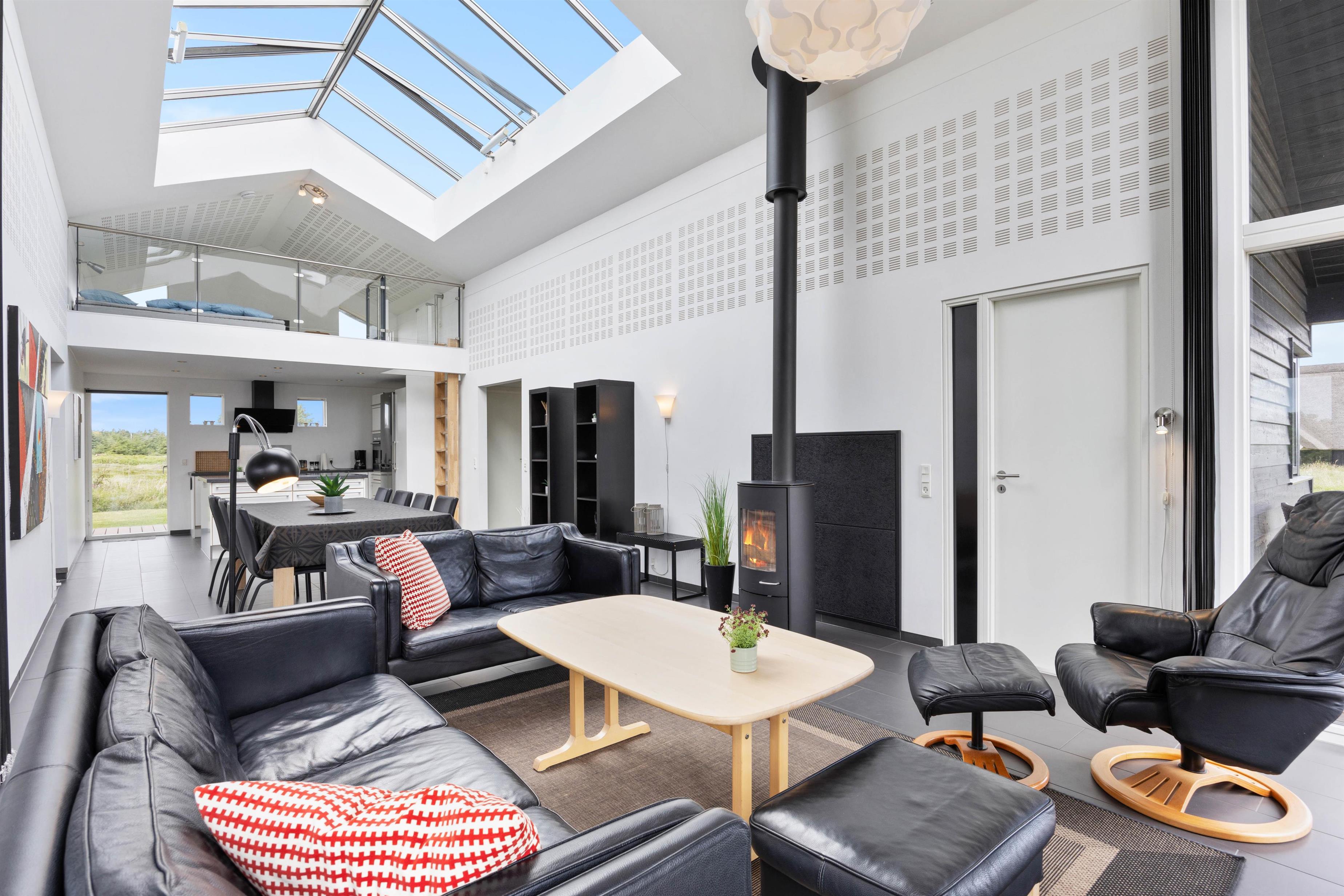 Relax and enjoy your holiday in this charming holiday home, where attention has been paid to creating something special. Every detail has been considered with high-quality materials throughout. The heart of this holiday home is the living area with integrated kitchen, perfect for spending time together. There's plenty of space and breathing room for a large family. The large skylight and high ceilings create a unique atmosphere.