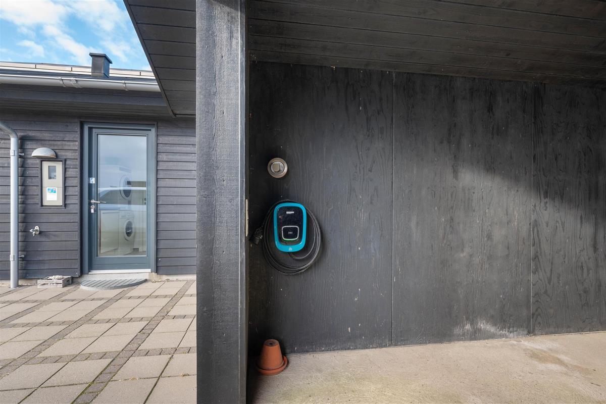 The holiday home is heated by a modern ground source heat pump system for energy efficiency. Additional insulation has been installed to improve heating efficiency. A large carport provides protection for your car and storage for bicycles. If you're arriving by electric car, you can use the holiday home's dedicated charging point.