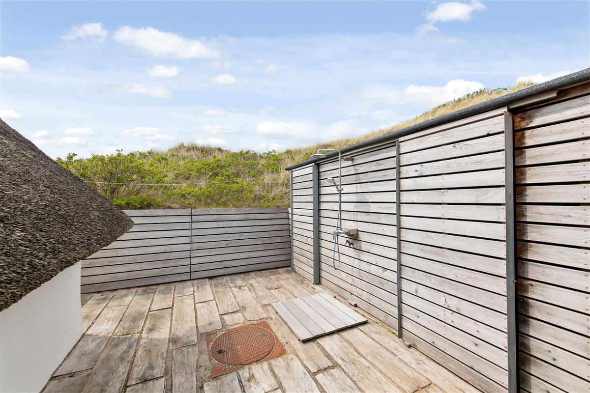 Genießt den wunderschönen Außenbereich, der das Ferienhaus einrahmt. Die abgeschirmte Terrasse mit Gartenmöbeln lädt dazu ein, herrliche Stunden im Freien zu verbringen. Auf dem einzigartigen Natur- und Dünengrundstück werdet ihr von einem schönen Panoramablick verwöhnt, der die Seele baumeln lässt. Eine besondere Attraktion ist die Außensauna, die euch ein unvergessliches Wellnesserlebnis beschert, während ihr inmitten der Natur entspannt. Ergänzt wird dieser Bereich durch eine Außendusche die, von April – September dafür sorgt, dass der Sand draußen bleibt, wenn ihr vom Strand kommt.