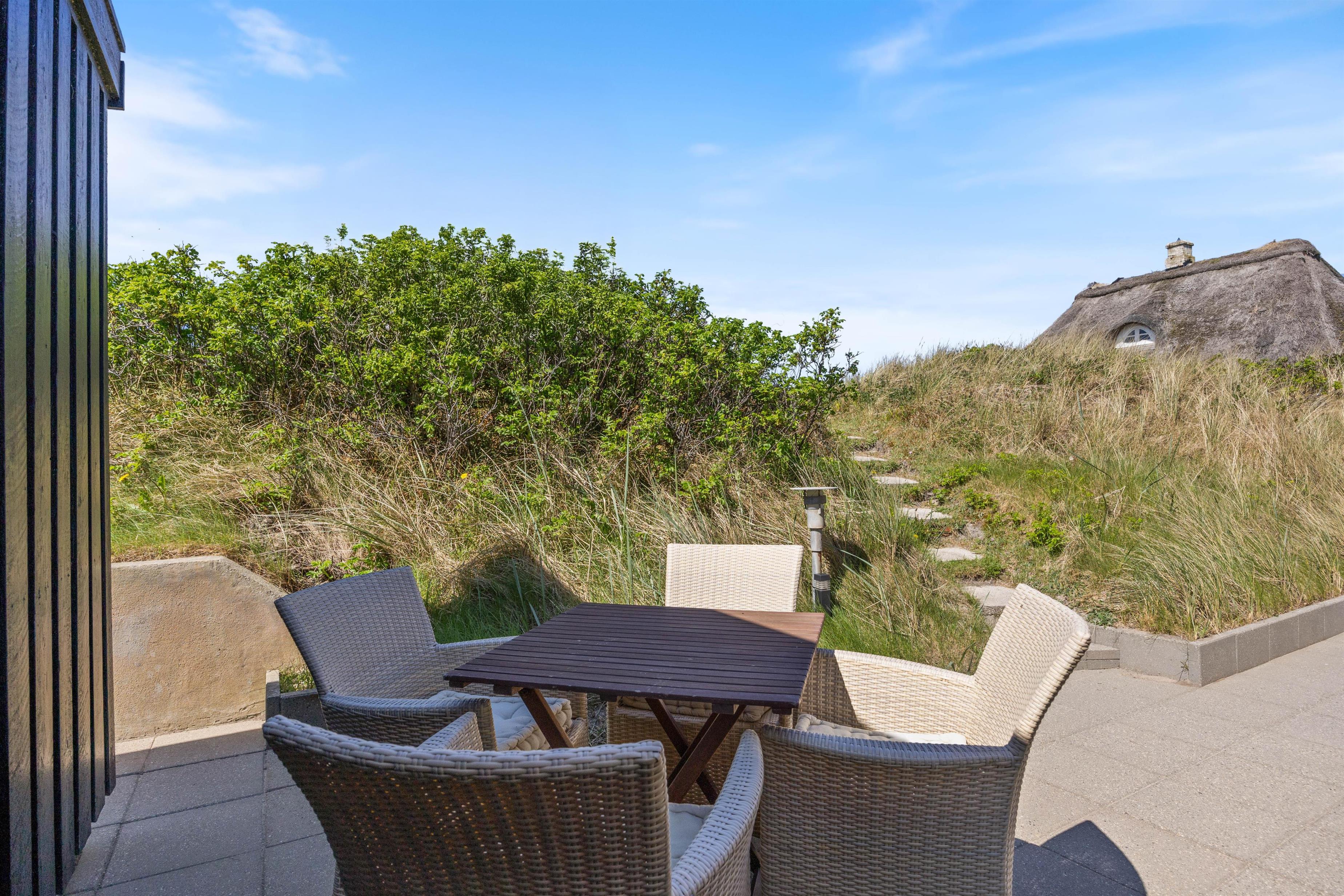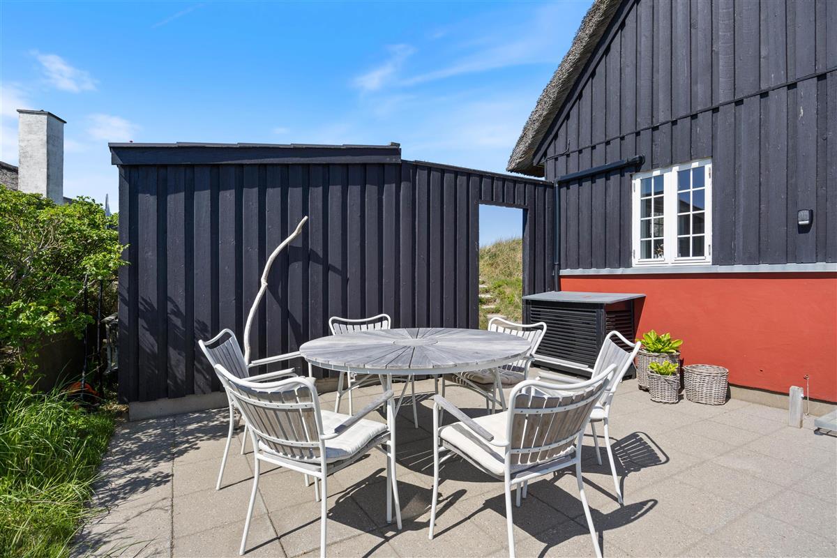 Dieses Ferienhaus beeindruckt nicht nur drinnen. Draußen findet ihr mehrere gemütliche Terrassen, auf denen ihr euch entspannen und die Natur Westjütlands genießen könnt. Die Südwestterrasse ist ideal für die Morgen- und Nachmittagssonne, während die Westterrasse zum Genießen schöner Sonnenuntergänge und zum Essen im Freien einlädt. Mit dem vorhandenen Grill könnt ihr das Kochen auch nach draußen verlegen. Von beiden Terrassen aus hört ihr das Rauschen der Nordsee - eine unvergessliche und entspannende Geräuschkulisse.