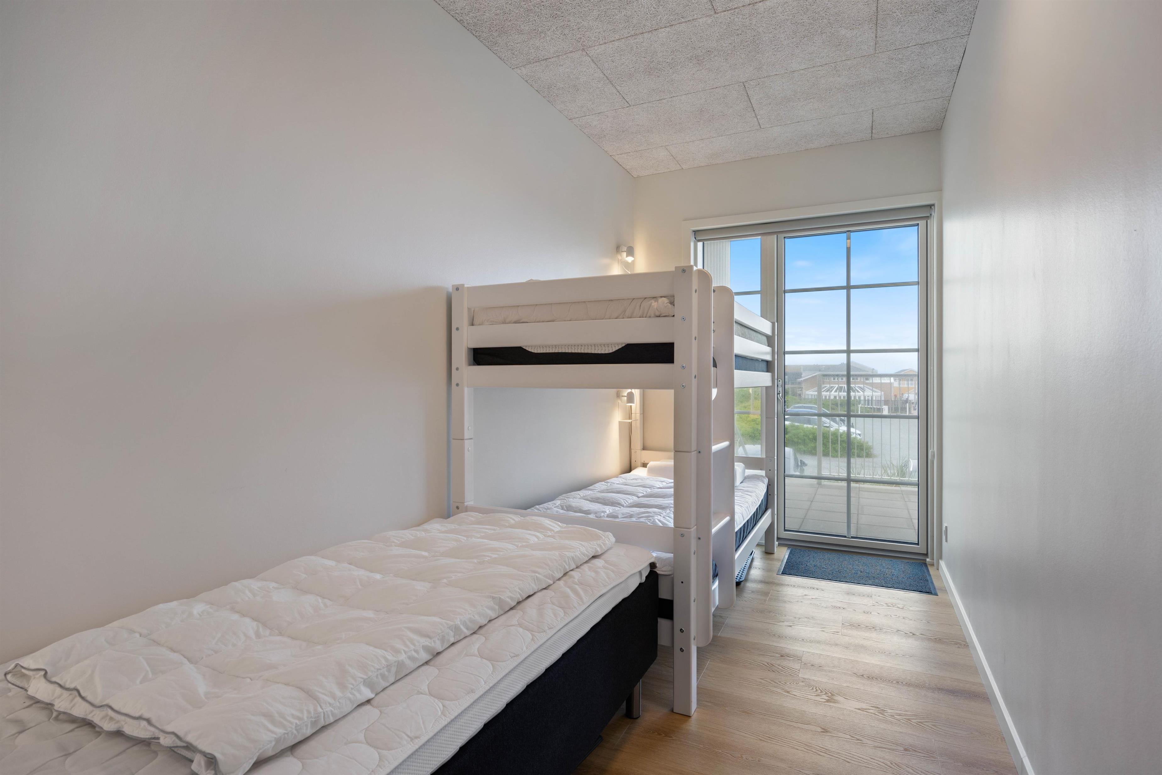 Die Ferienwohnung erstreckt sich über 2 Etagen und bietet Platz für insgesamt fünf Personen. Im 1. Stock findet ihr zwei Schlafzimmer mit Fußbodenheizung, wovon ein Schlafzimmer mit einem Doppelbett ausgestattet ist. Das zweite Schlafzimmer ist mit einem Einzelbett und einem Etagenbett ausgestattet, ideal für Familien mit Kindern. Beide Räume sind so gestaltet, dass ihr eure Batterien wunderbar aufladen könnt.