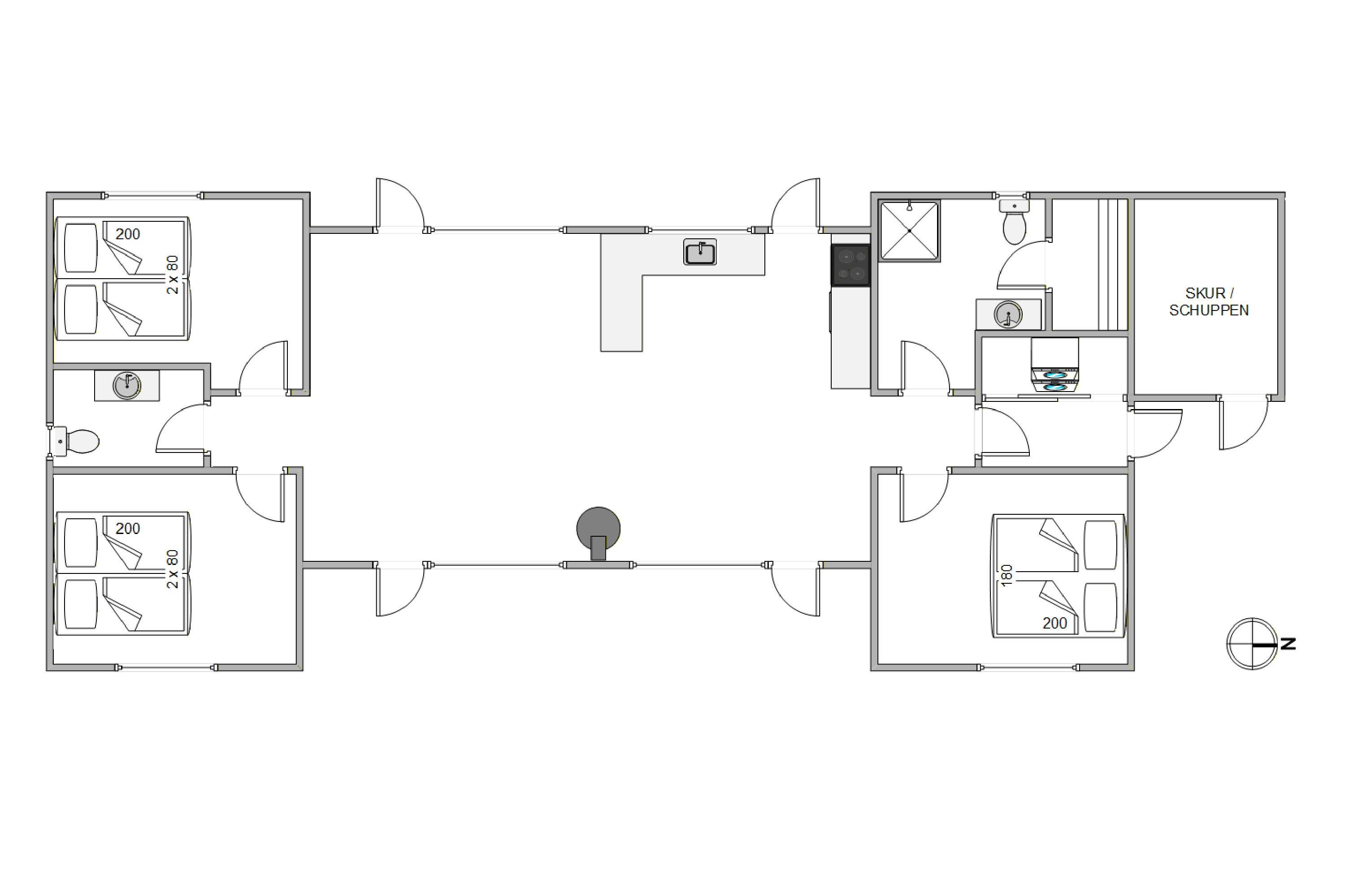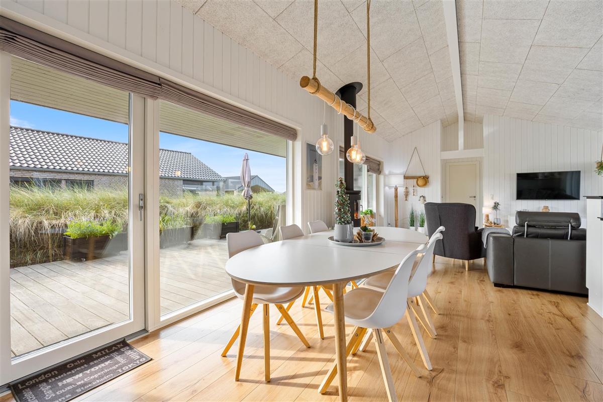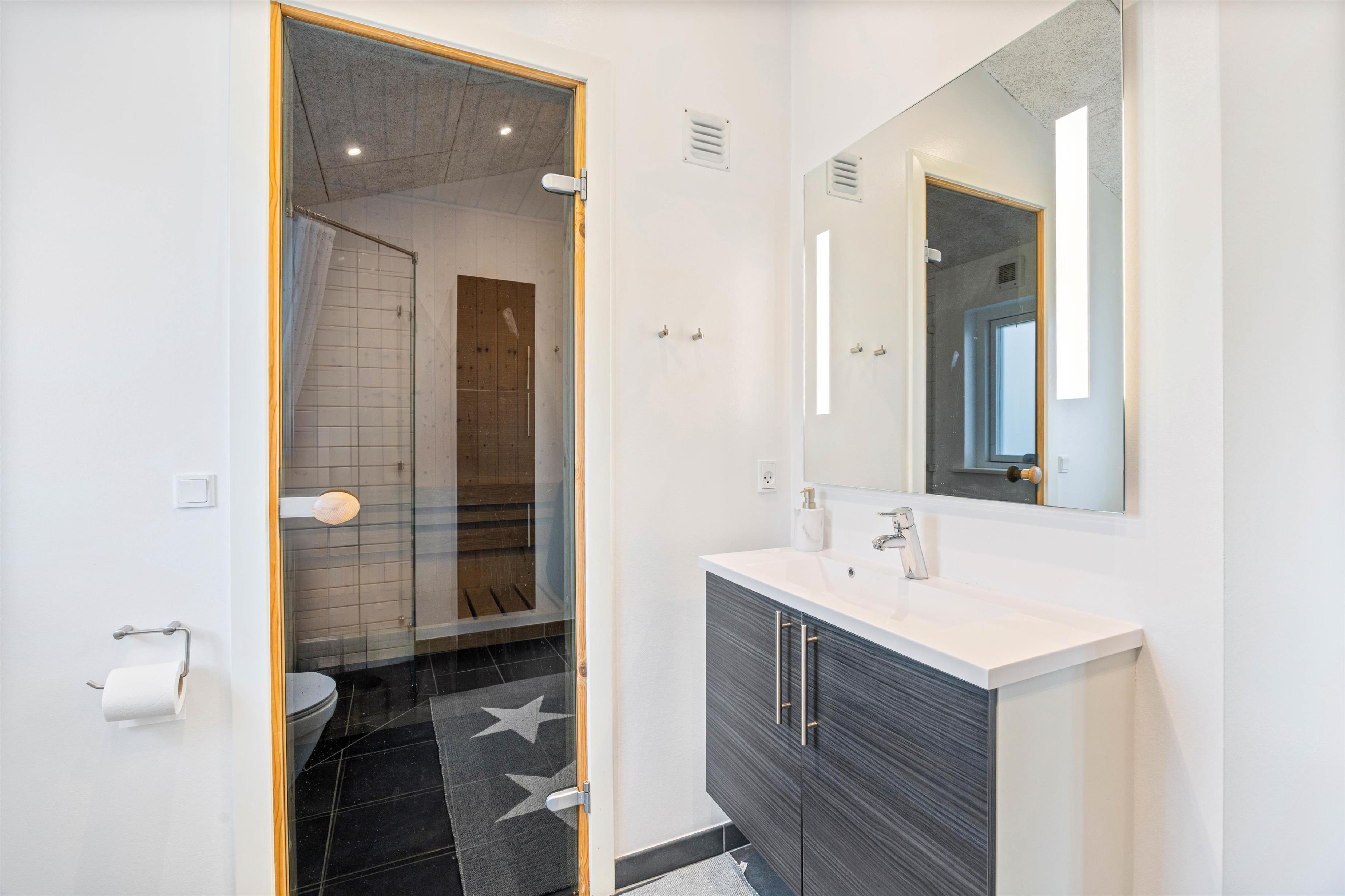The holiday home features a guest WC and a bathroom equipped with a sauna. After a long day in the fresh air, you can relax and put your feet up in the sauna. The modern kitchen has an open-plan design connecting to the living area, allowing you to remain part of family life while cooking.
