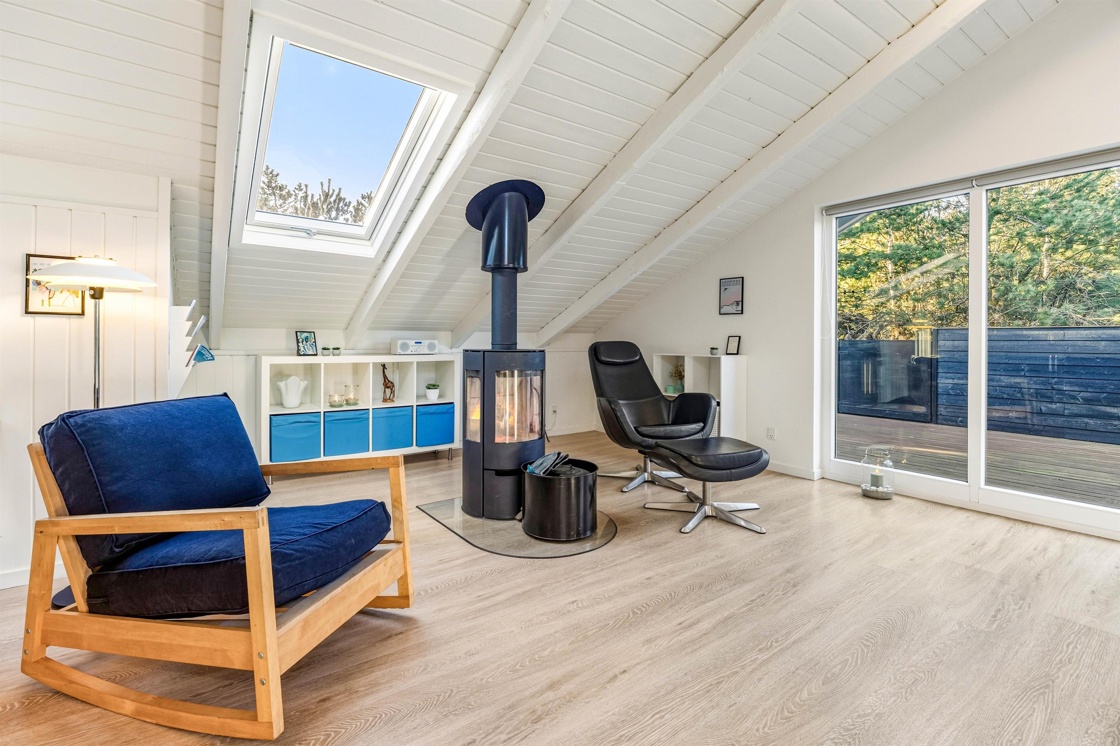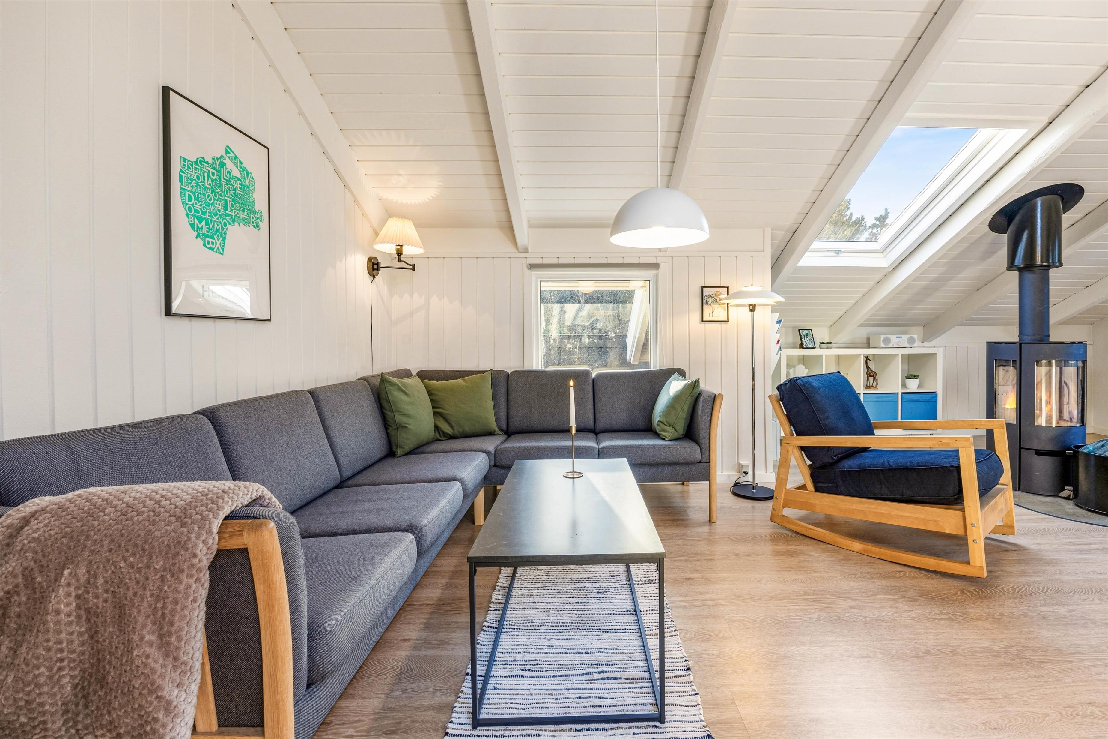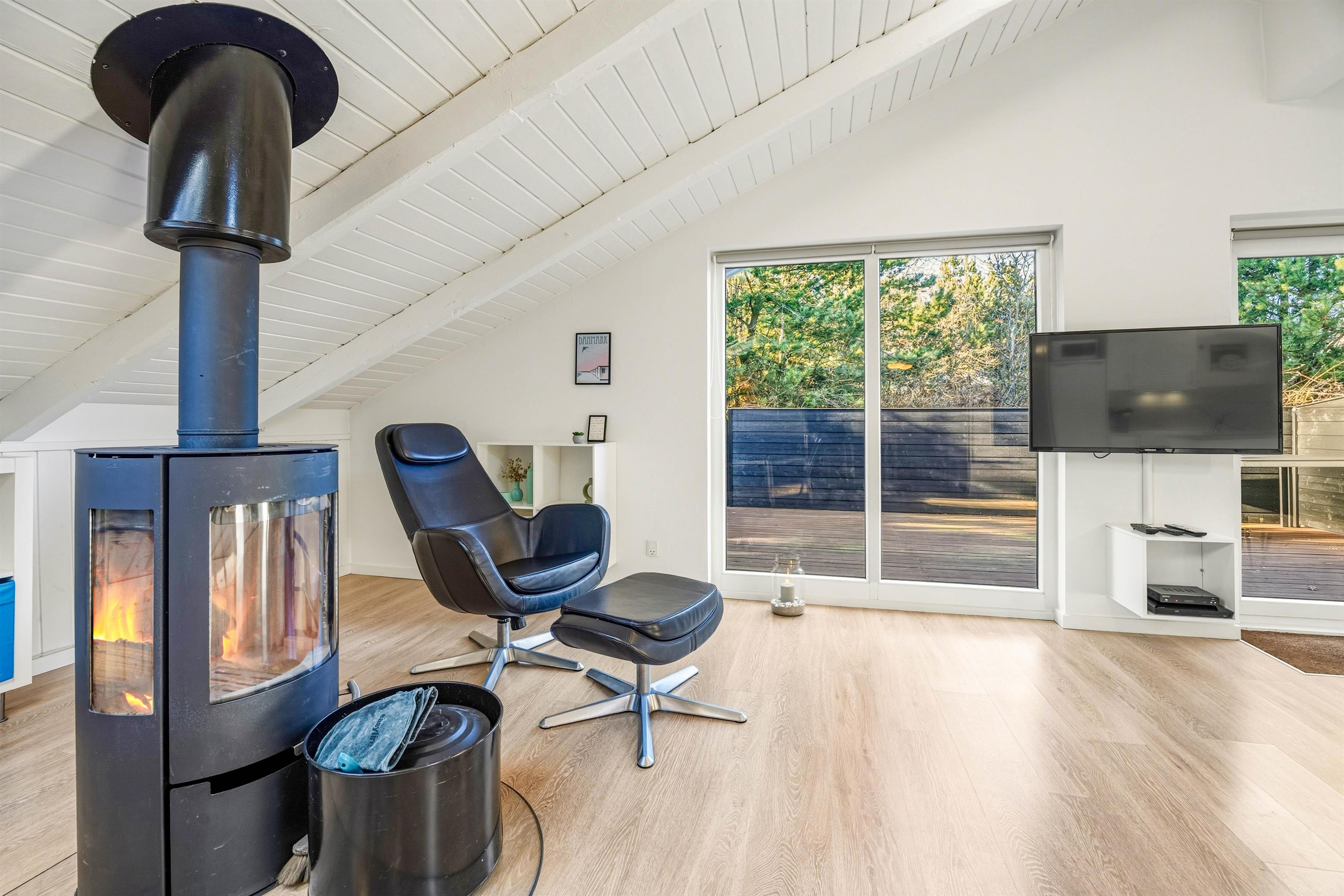 This supremely comfortable and modern holiday home sits on a natural plot sheltered by small trees and shrubs. Here you'll find the perfect setting for a wonderful summer holiday or a cosy winter break by the crackling wood-burning stove, surrounded by beautiful nature. With just 900 metres to the sea and 1,000 metres to the nearest shops (approximately 0.6 miles), everything you need is within easy reach. The holiday home in Søndervig is perfectly situated for those wanting to enjoy proximity to the sea and nature in a quiet and scenic area while remaining close to a town with numerous activities and shopping facilities.