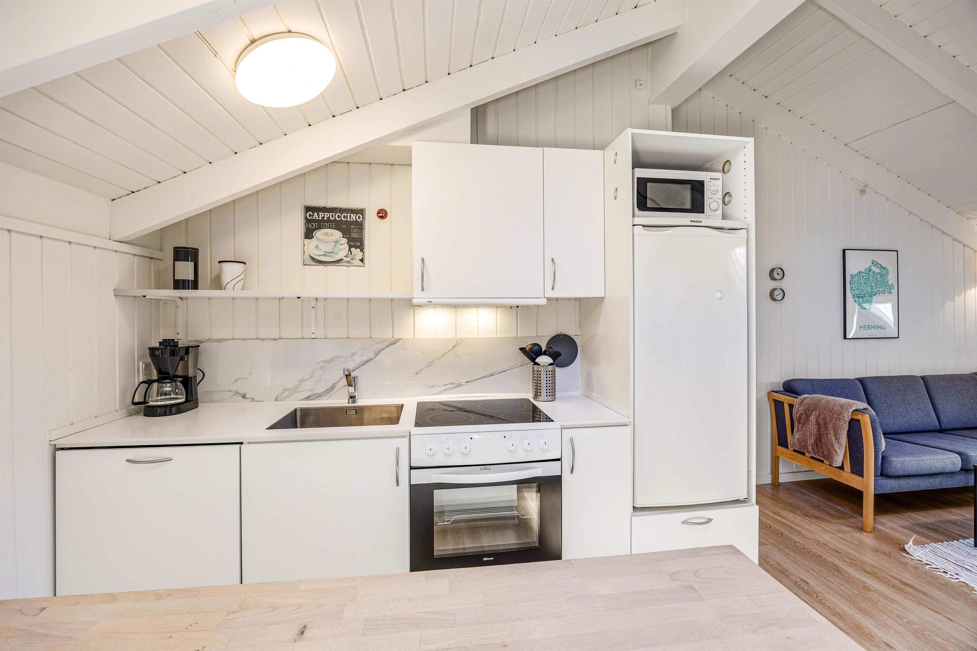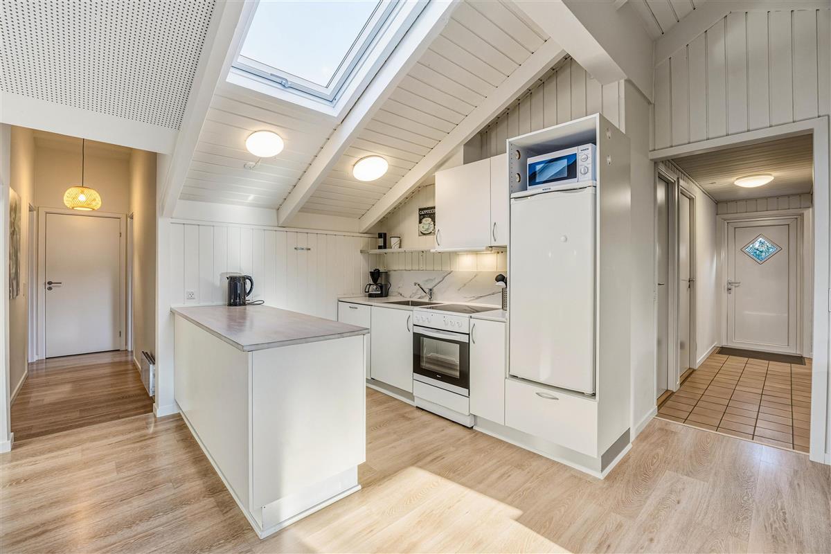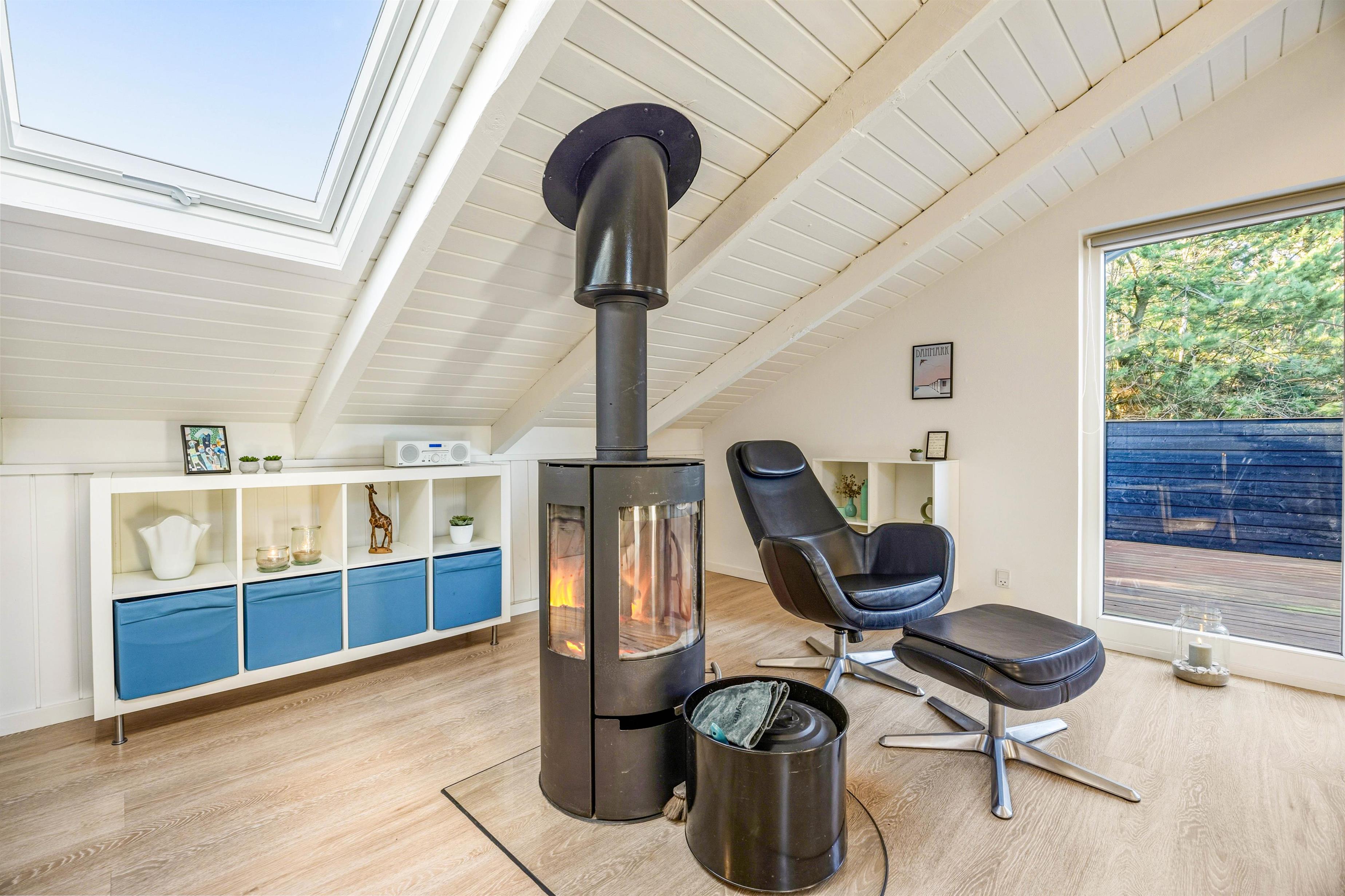 This supremely comfortable and modern holiday home sits on a natural plot sheltered by small trees and shrubs. Here you'll find the perfect setting for a wonderful summer holiday or a cosy winter break by the crackling wood-burning stove, surrounded by beautiful nature. With just 900 metres to the sea and 1,000 metres to the nearest shops (approximately 0.6 miles), everything you need is within easy reach. The holiday home in Søndervig is perfectly situated for those wanting to enjoy proximity to the sea and nature in a quiet and scenic area while remaining close to a town with numerous activities and shopping facilities.