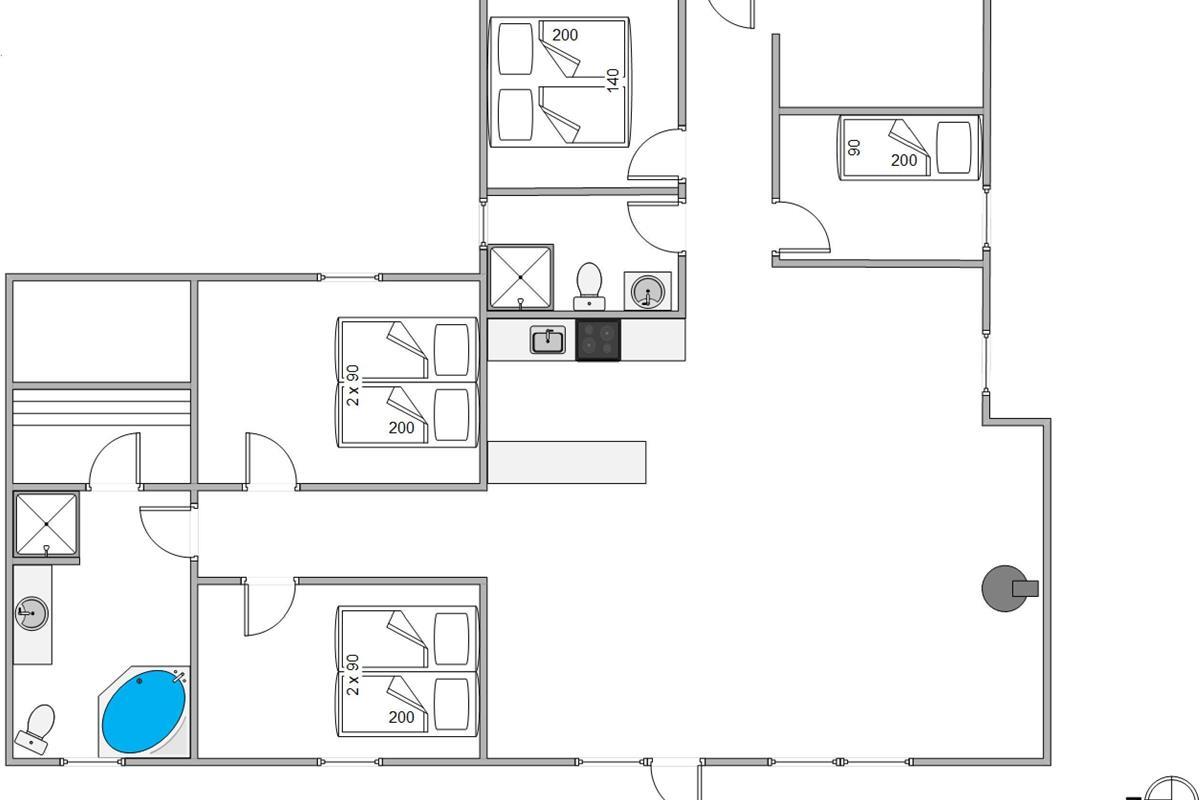 Beautiful holiday home in a peaceful location on a natural plot, within walking distance of Søndervig. The holiday home features 4 bedrooms with beds and laminate flooring, wellness facilities including a sauna and whirlpool, a cosy wood-burning stove, and accommodates up to 7 people. Your pets are also welcome.