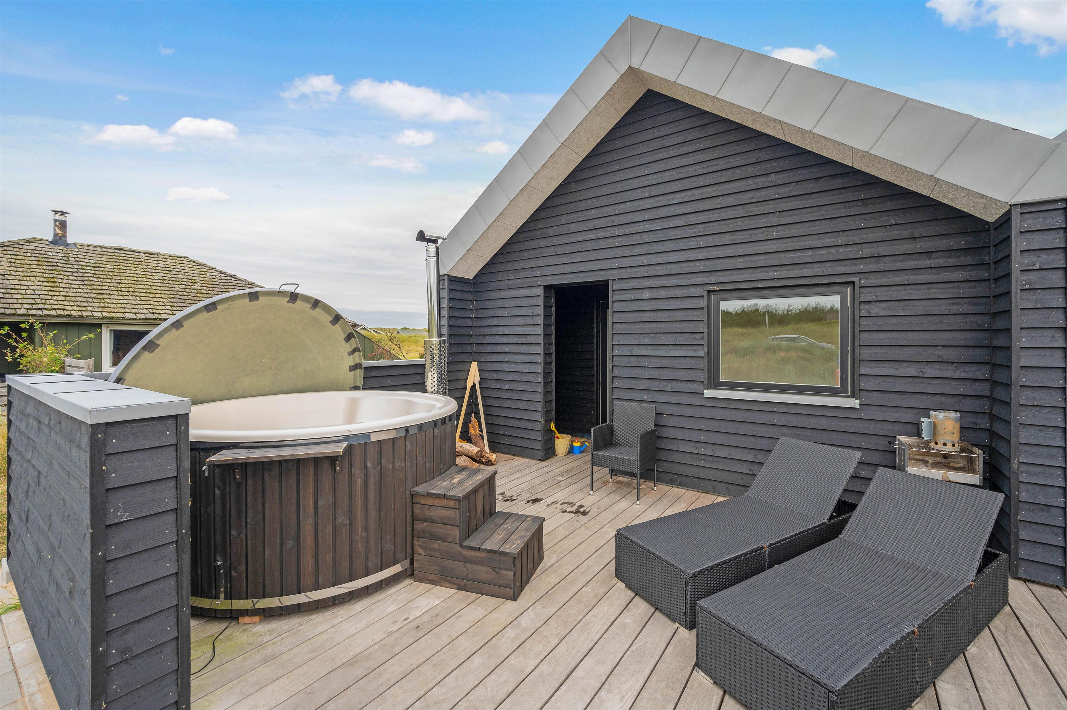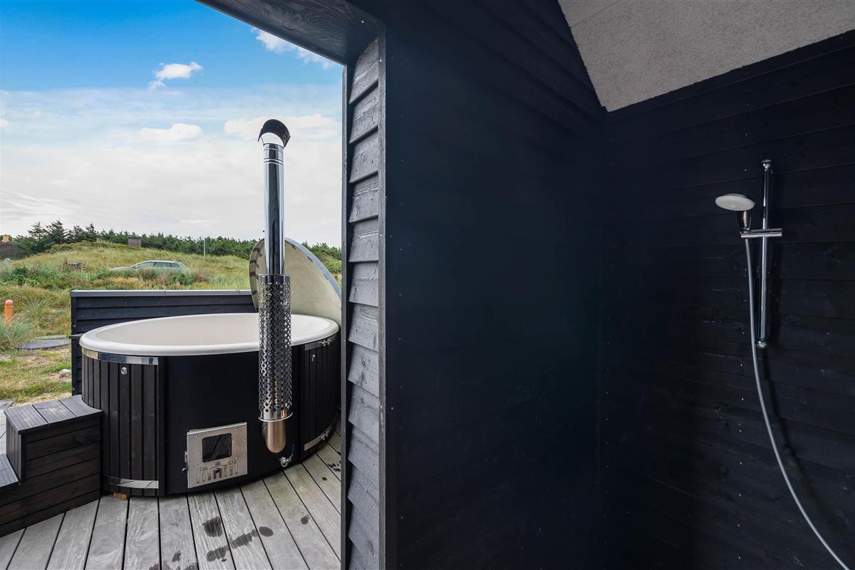 The roaring North Sea is always worth a visit, and during the hot summer months, you can enjoy a refreshing dip in the blue waves, followed by a session in the holiday home's sauna. The outdoor shower on the terrace makes quick work of sandy feet.