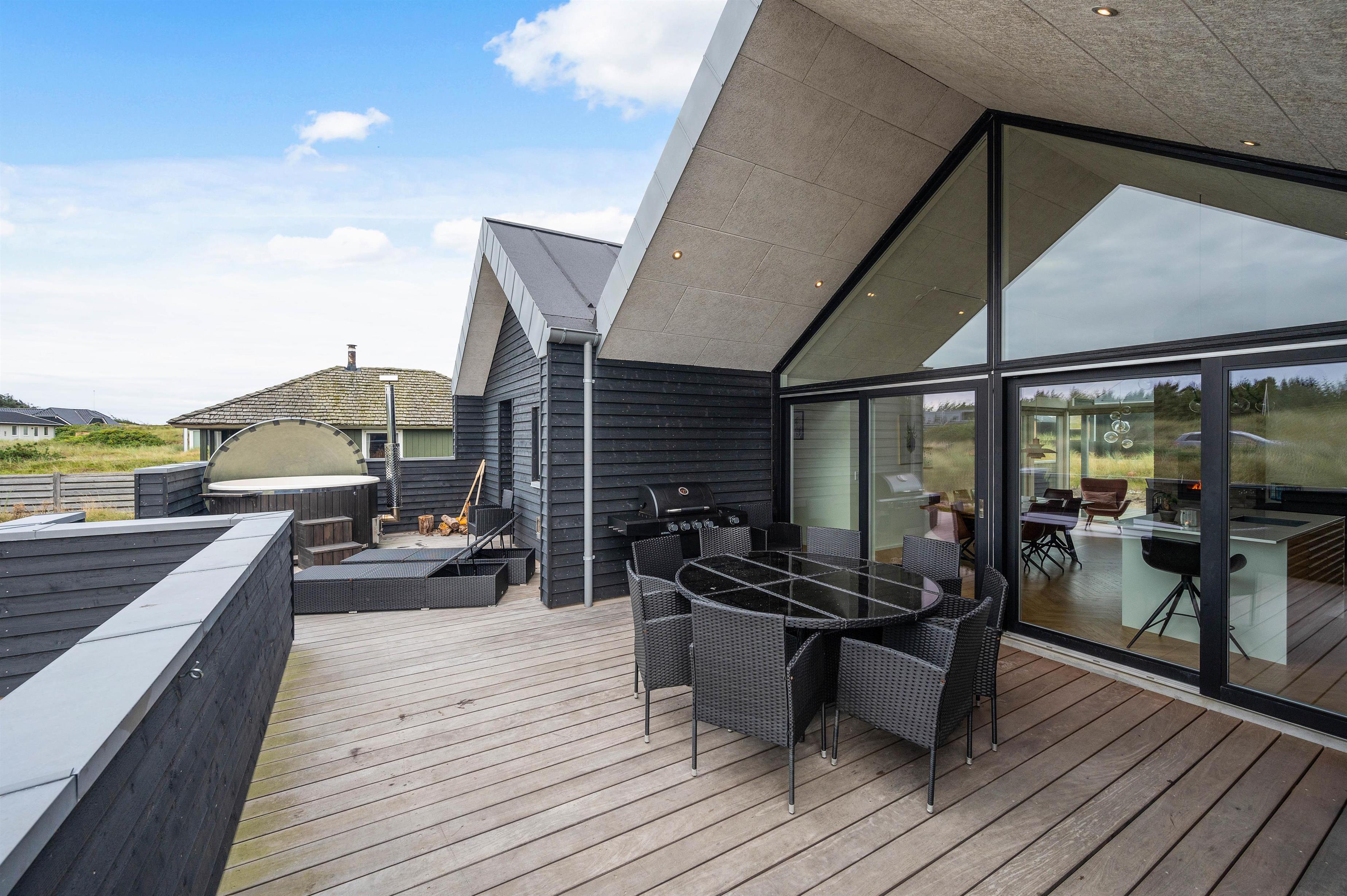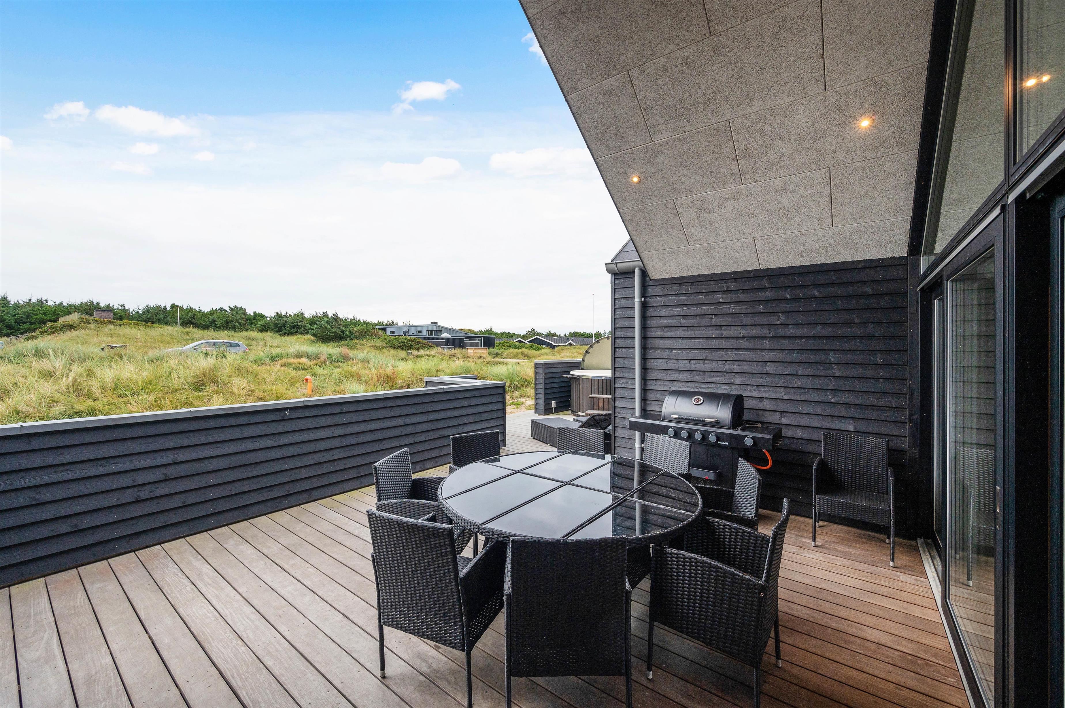 On sunny days, you can unwind on one of the holiday home's beautiful terraces. Thanks to partial screening and covering, you'll always find a sheltered spot in the sun - or shade. With terraces on both sides of the house, you can follow the sun's movement throughout the day and end your holiday evening with a relaxed barbecue using the gas grill.