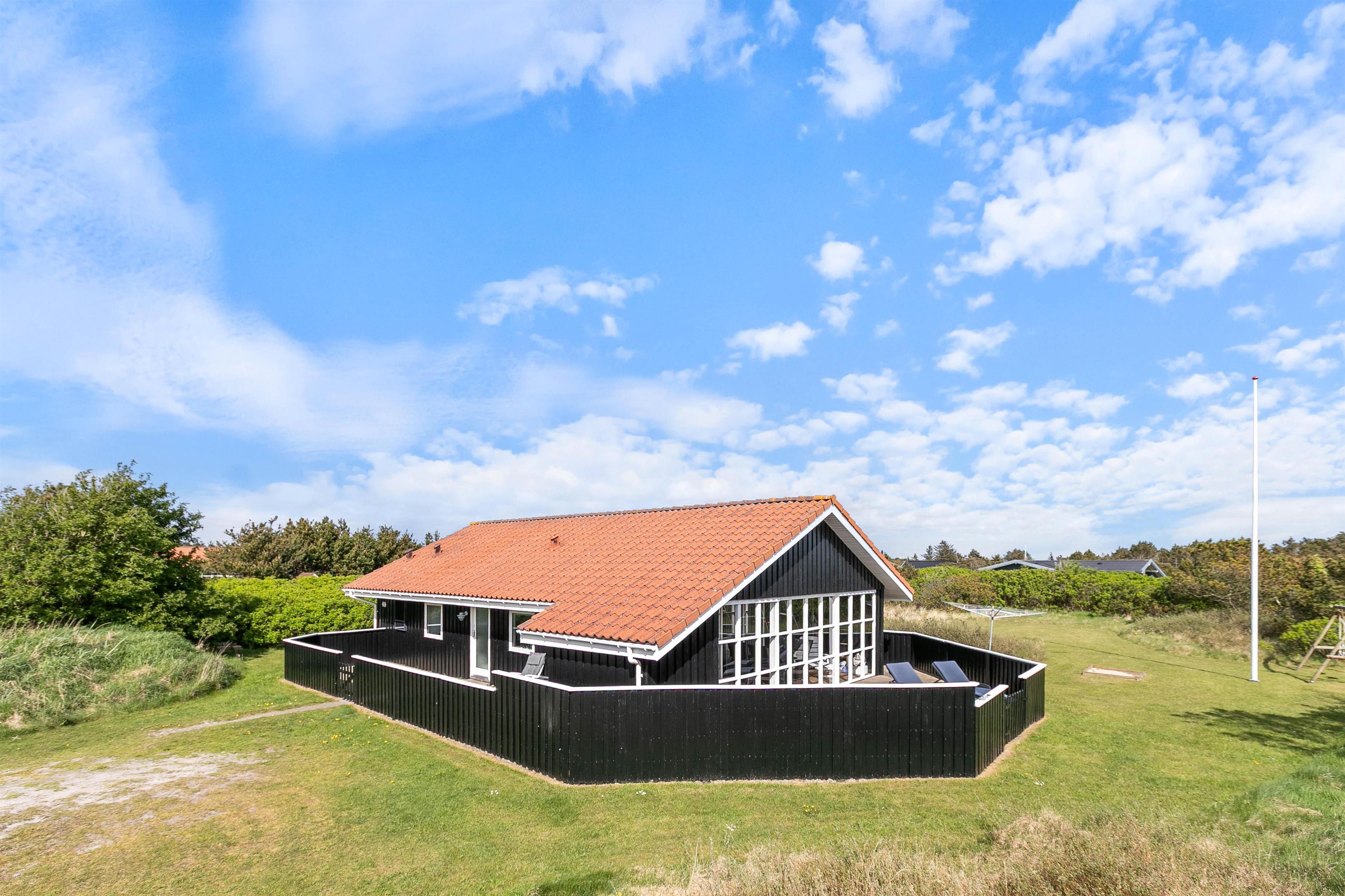 This beautiful holiday home is located at P. Snejkers Vej 49, south of Søndervig, near the roaring North Sea and Ringkøbing Fjord. It's perfect for a holiday on the Danish west coast in a well-equipped holiday home.