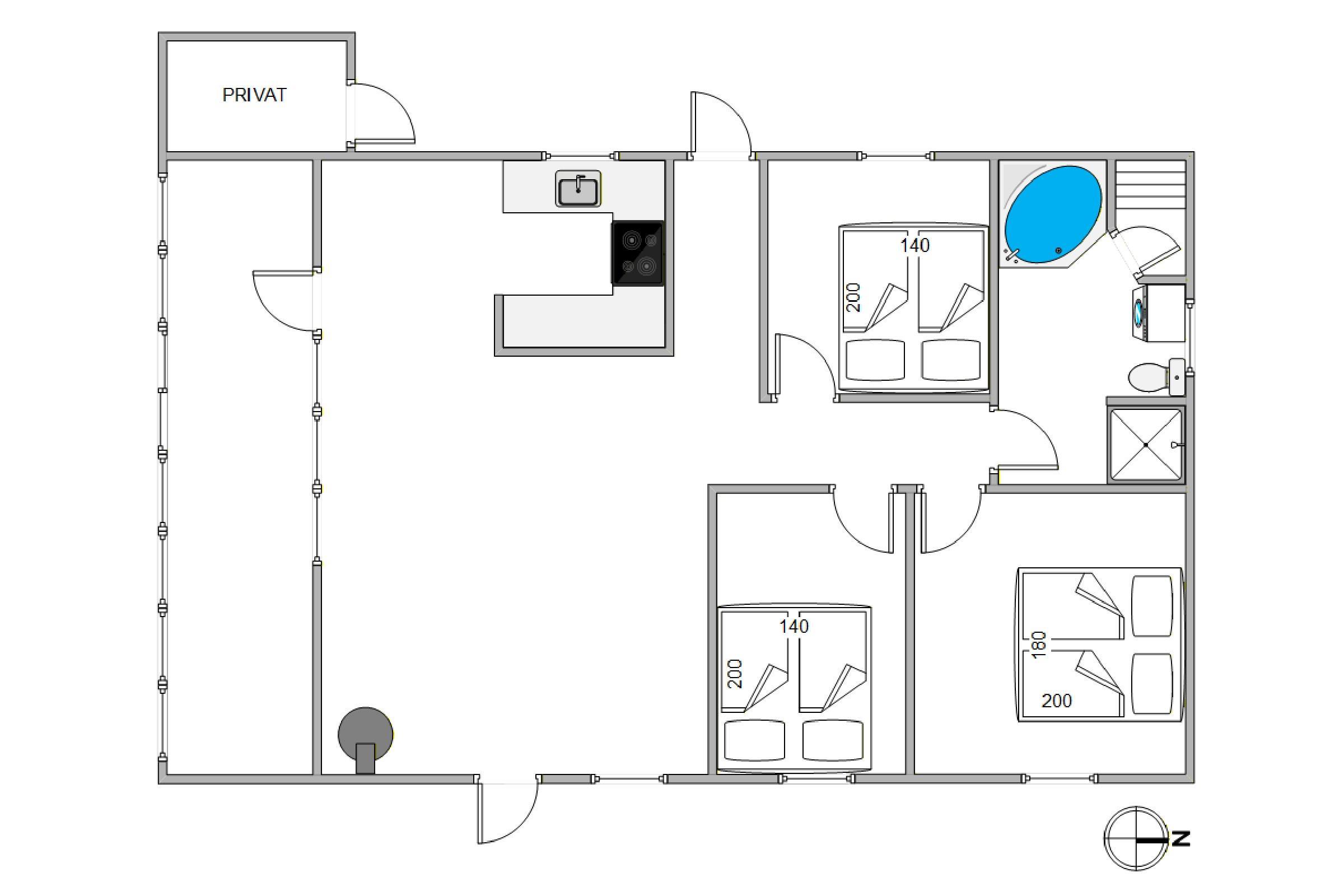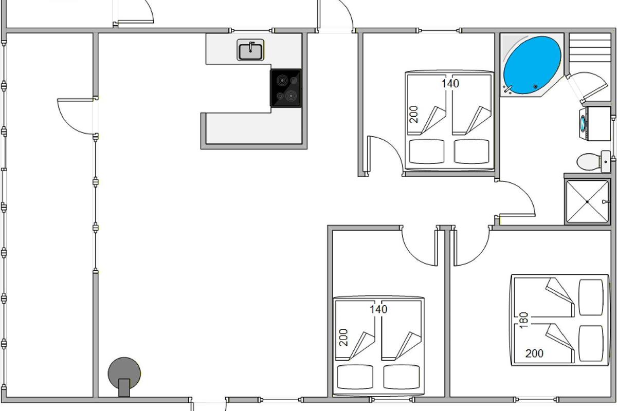 The kitchen opens onto the dining area and living room, allowing you to remain part of the conversation even while cooking. On cooler days, the living room invites you to gather around the wood-burning stove - perhaps with a good book - or enjoy family game nights. This holiday home accommodates up to 6 people across three bedrooms, each with a double bed.