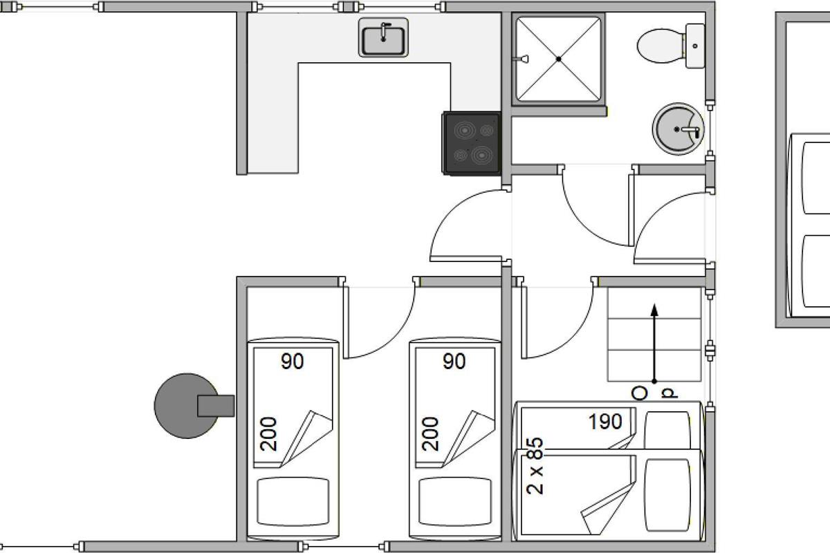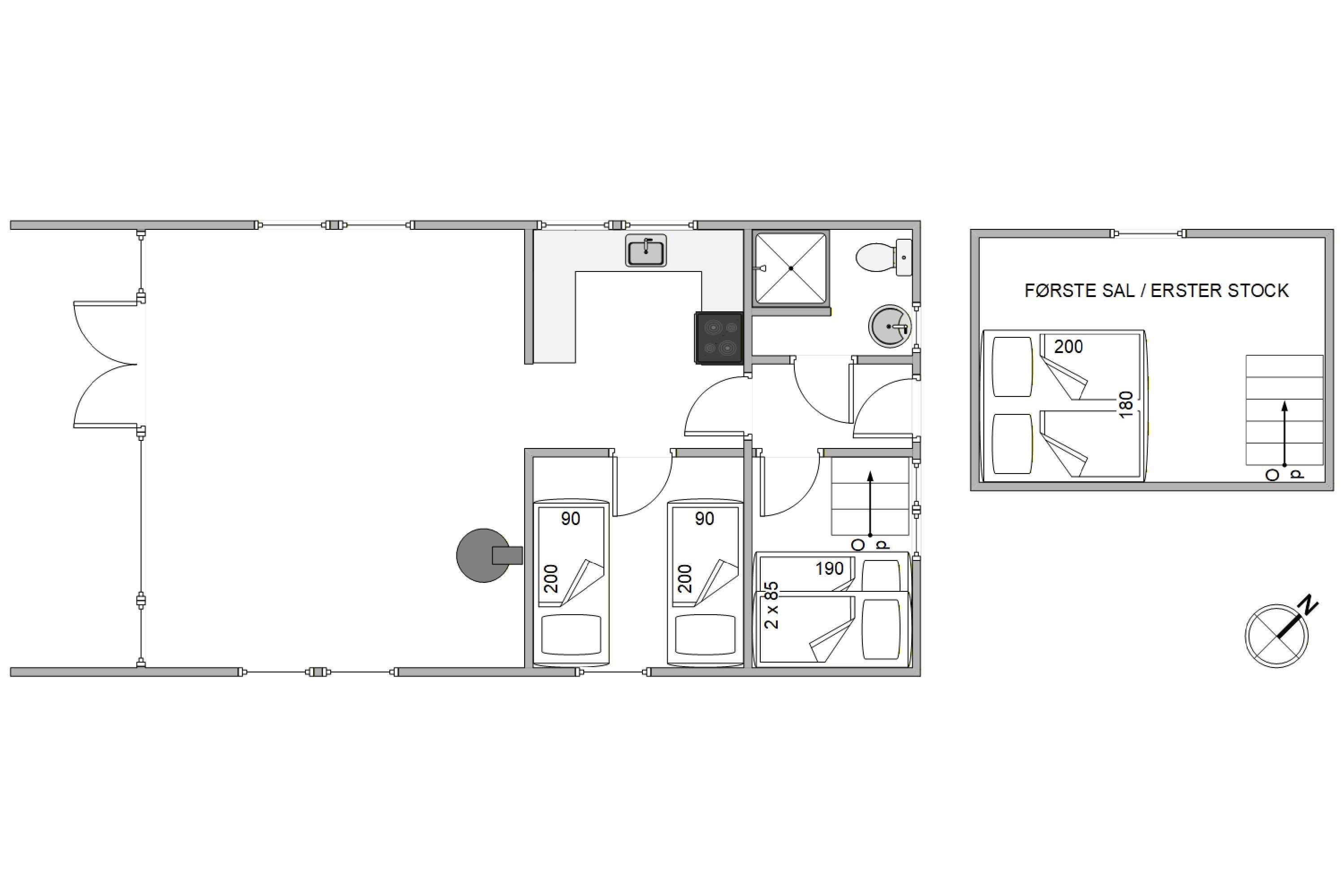 In diesem Ferienhaus finden bis zu 6 Personen Platz, sodass ihr einen Urlaub mit Familie oder Freunden in vollen Zügen genießen könnt. Zwei Schlafzimmer stehen zur Verfügung, wovon eines ist mit zwei Einzelbetten ausgestattet, das andere Schlafzimmer hat ein Etagenbett, ideal für Kinder. Darüber hinaus gibt es zwei weitere Schlafplätze im heimeligen Dachgeschoss. Alle Schlafräume versprechen eine erholsame Nacht und sorgen dafür, dass jeder genügend Platz für sich hat.