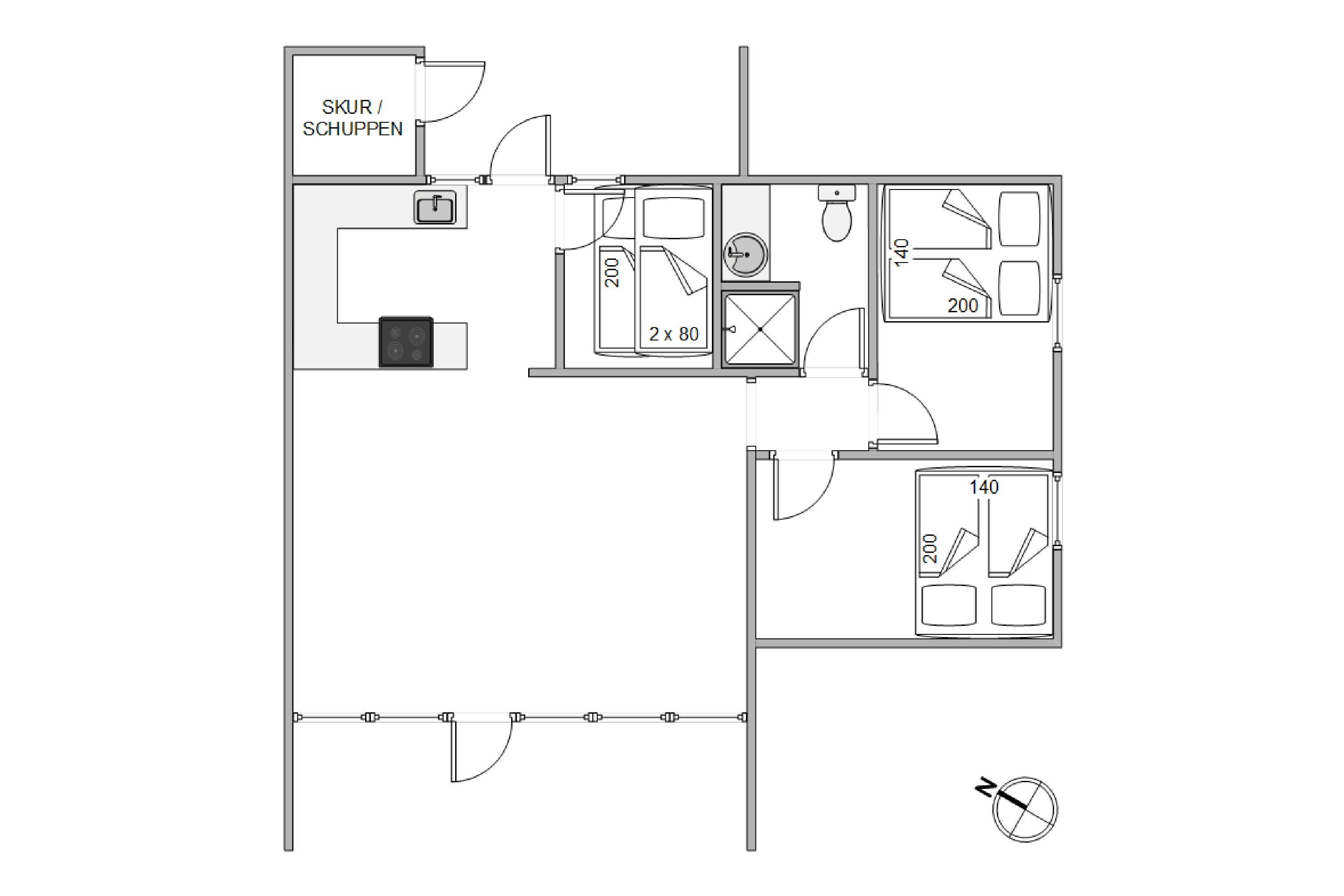 Das Ferienhaus verfügt über drei gemütliche Schlafzimmer, die jedem Reisenden erholsame Nächte versprechen. Zwei Doppelbetten und ein Etagenbett sorgen für flexible Schlaflösungen, ideal für Familien oder kleine Reisegruppen. Das Badezimmer ist mit einer Fußbodenheizung ausgestattet, sodass kalte Füße am Morgen kein Thema sind.