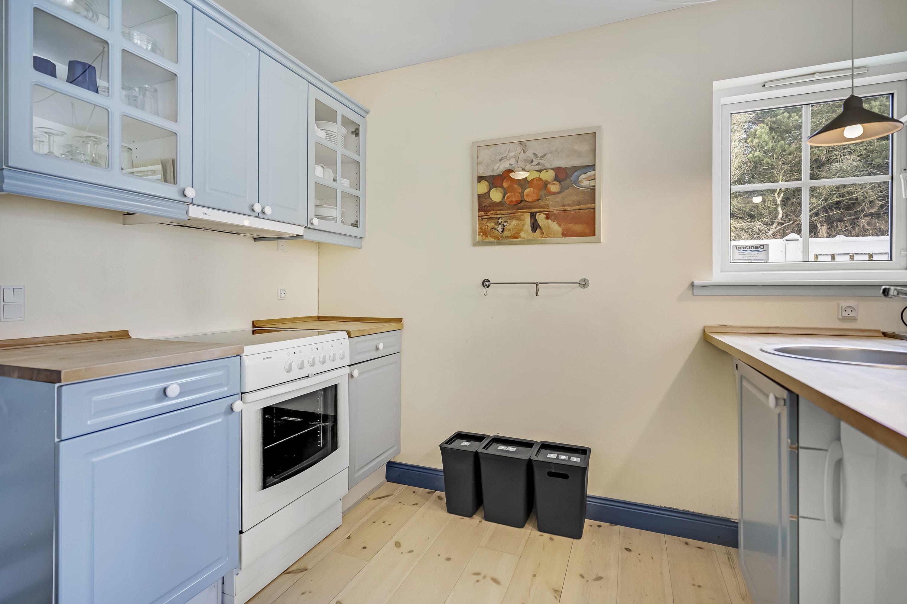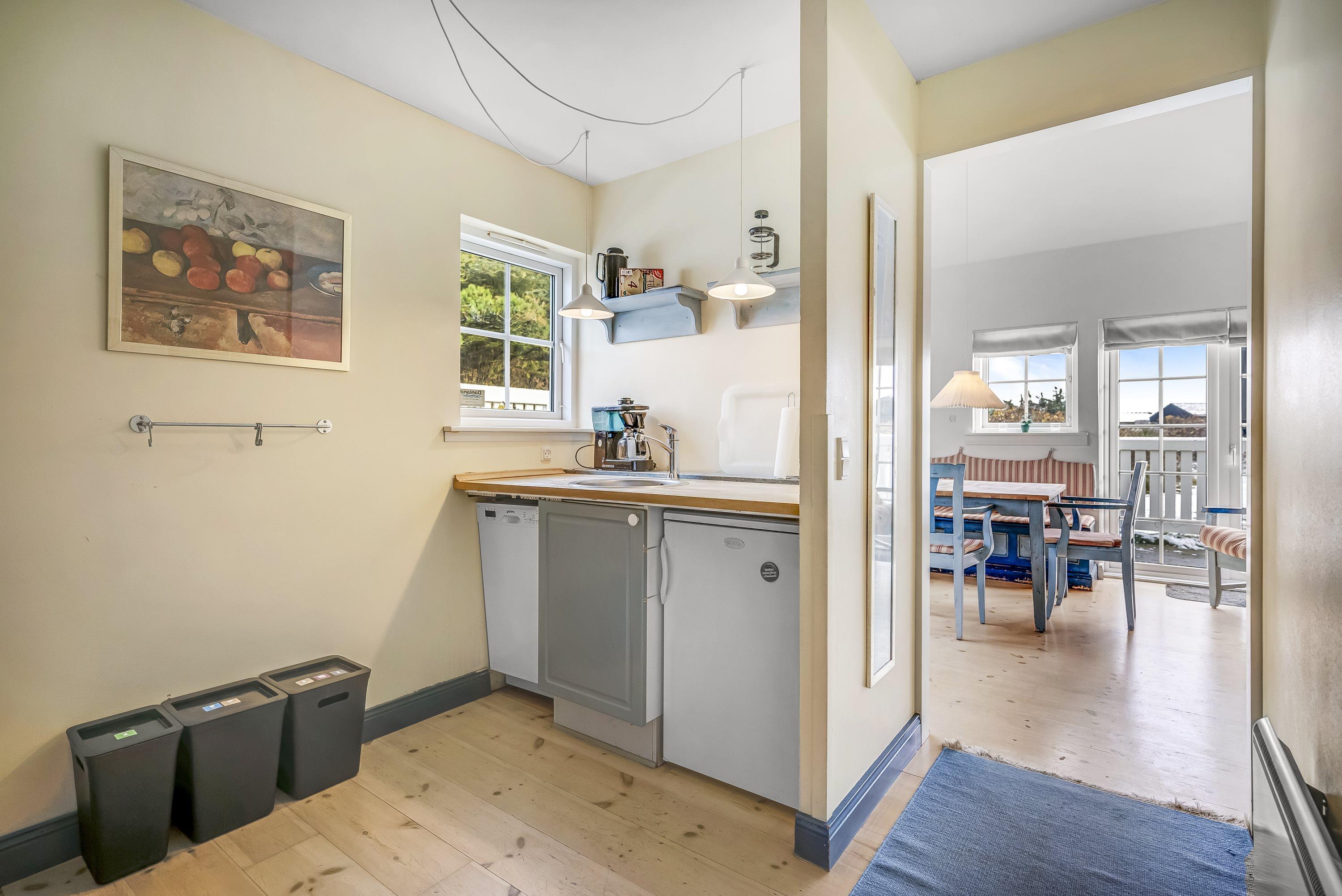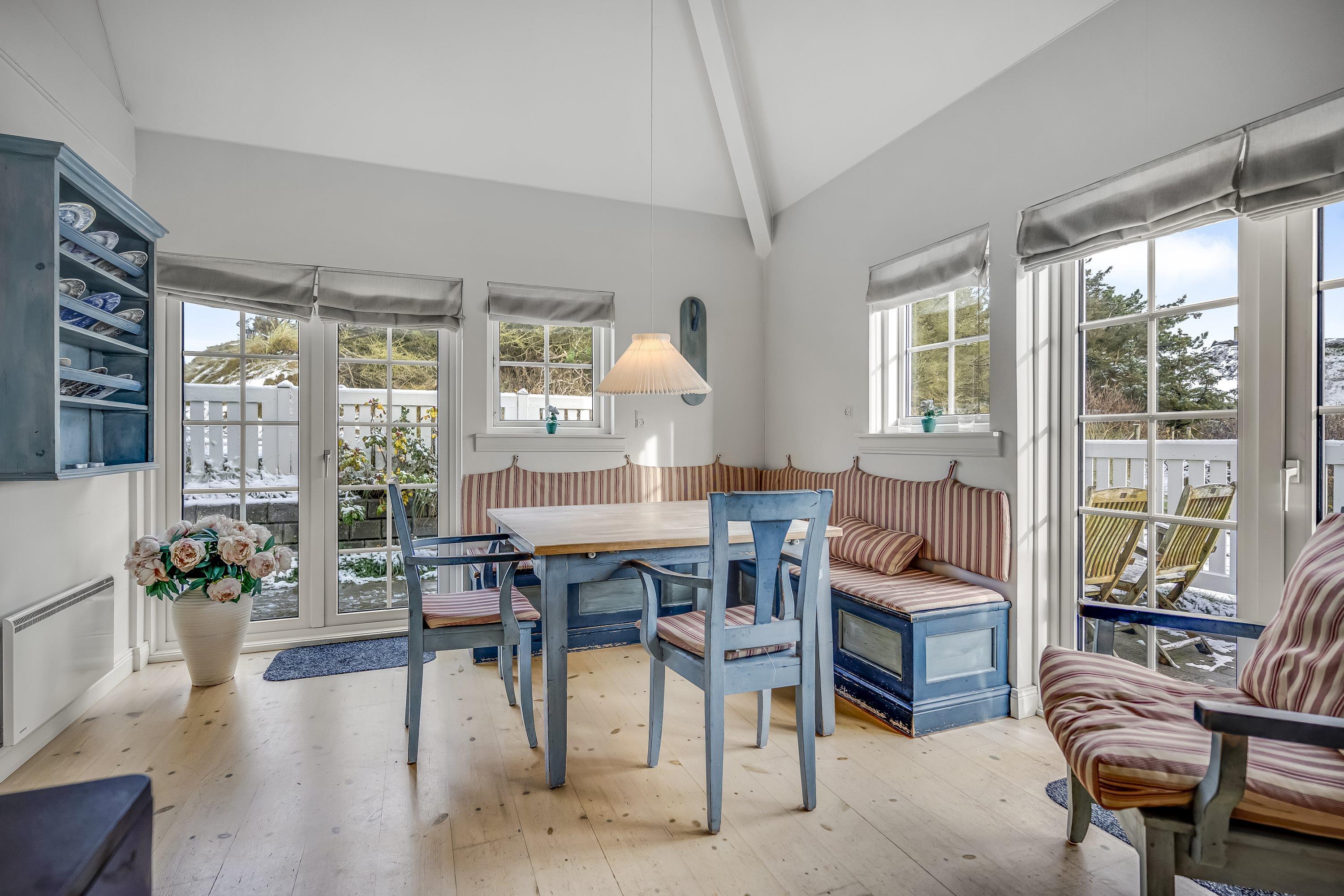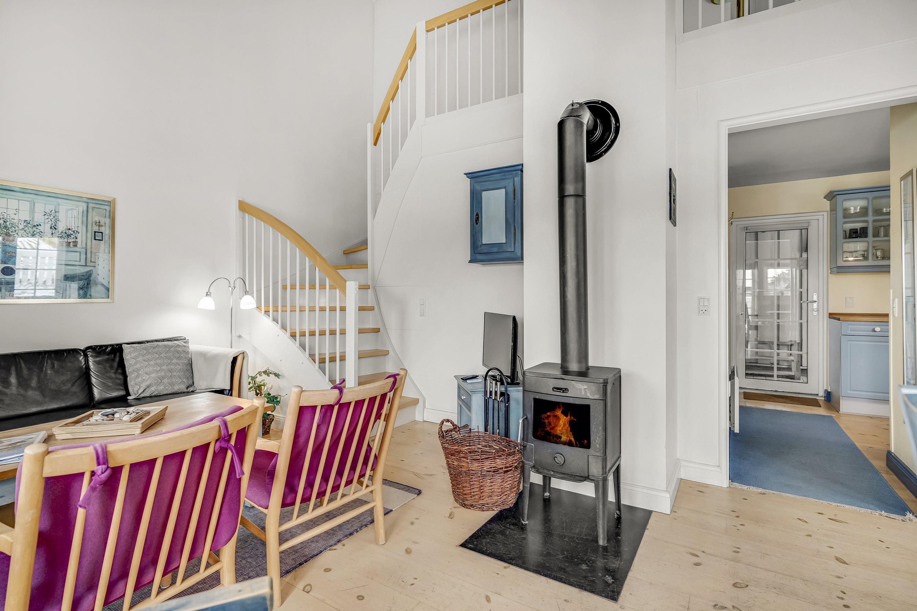 On cooler evenings, you can gather around the wood-burning stove and enjoy a cozy atmosphere after a day at the sea. The living area is bright and inviting, perfect for morning coffee, planning the day’s beach trips, or simply relaxing together. Here you can read a book, watch a movie, or stream your favorite films and series using the built-in Chromecast, provided you have your own streaming services.