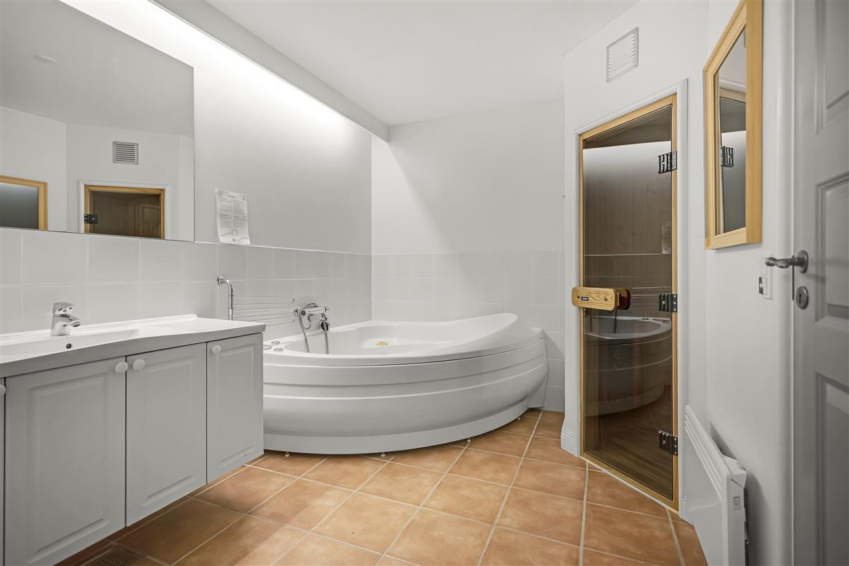 Upstairs, there are 2 bedrooms: one with a double bed and the other with 2 single beds, offering flexible sleeping arrangements for families or friends. On the ground floor, you’ll find a bathroom with underfloor heating and a guest toilet, ensuring smooth morning routines. For extra relaxation, you can enjoy the sauna and spa, helping you slow down and fully enjoy your holiday.