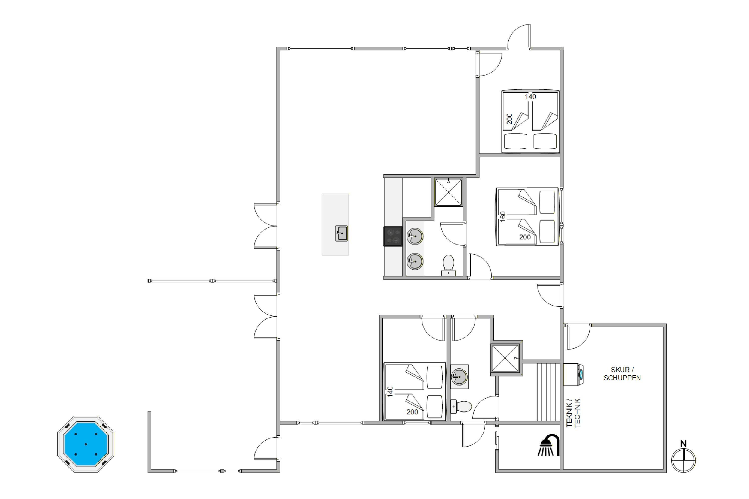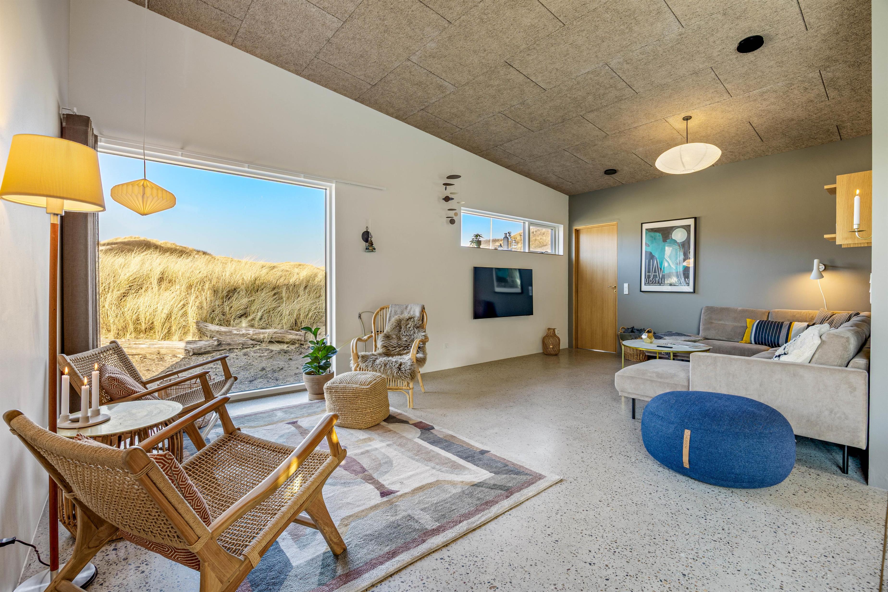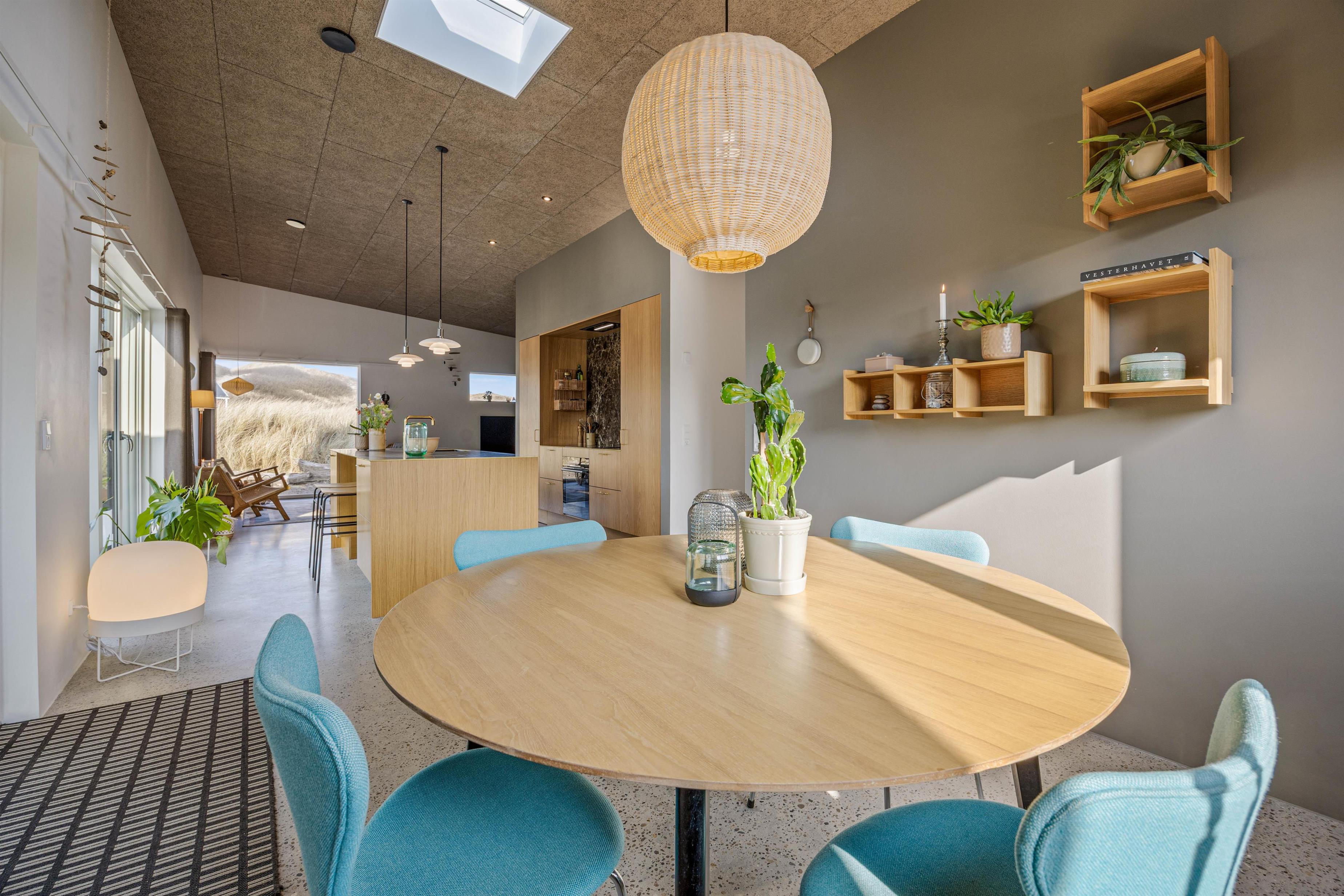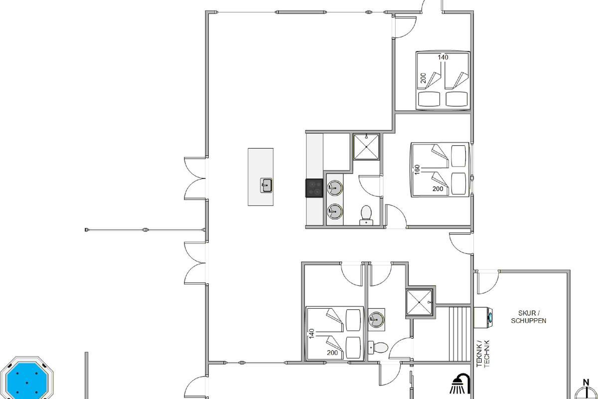 Im Außenbereich findet hier einen Außenwhirlpool, der euch unter dem Sternenhimmel Dänemarks ein besonderes Gefühl von Entspannung bietet. Die Außendusche ist eine Erfrischung für zwischendurch an warmen Sommertagen oder einfach um sich den Sand von den Füßen zu spülen. Die offene Terrasse ist abgeschirmt und zum Teil überdacht, sodass auch ein Wetterwechsel euer BBQ nicht stören kann. Auf den vorhandenen Gartenmöbeln könnt ihr euch zurücklehnen und eure zubereiteten Köstlichkeiten genießen, während das Rauschen der Nordsee die Hintergrundmusik liefert. Die praktischen Alltagshelfer wie eine zusätzliche Kühl- / Gefrierkombination und die Waschmaschine findet ihr im Schuppen.
