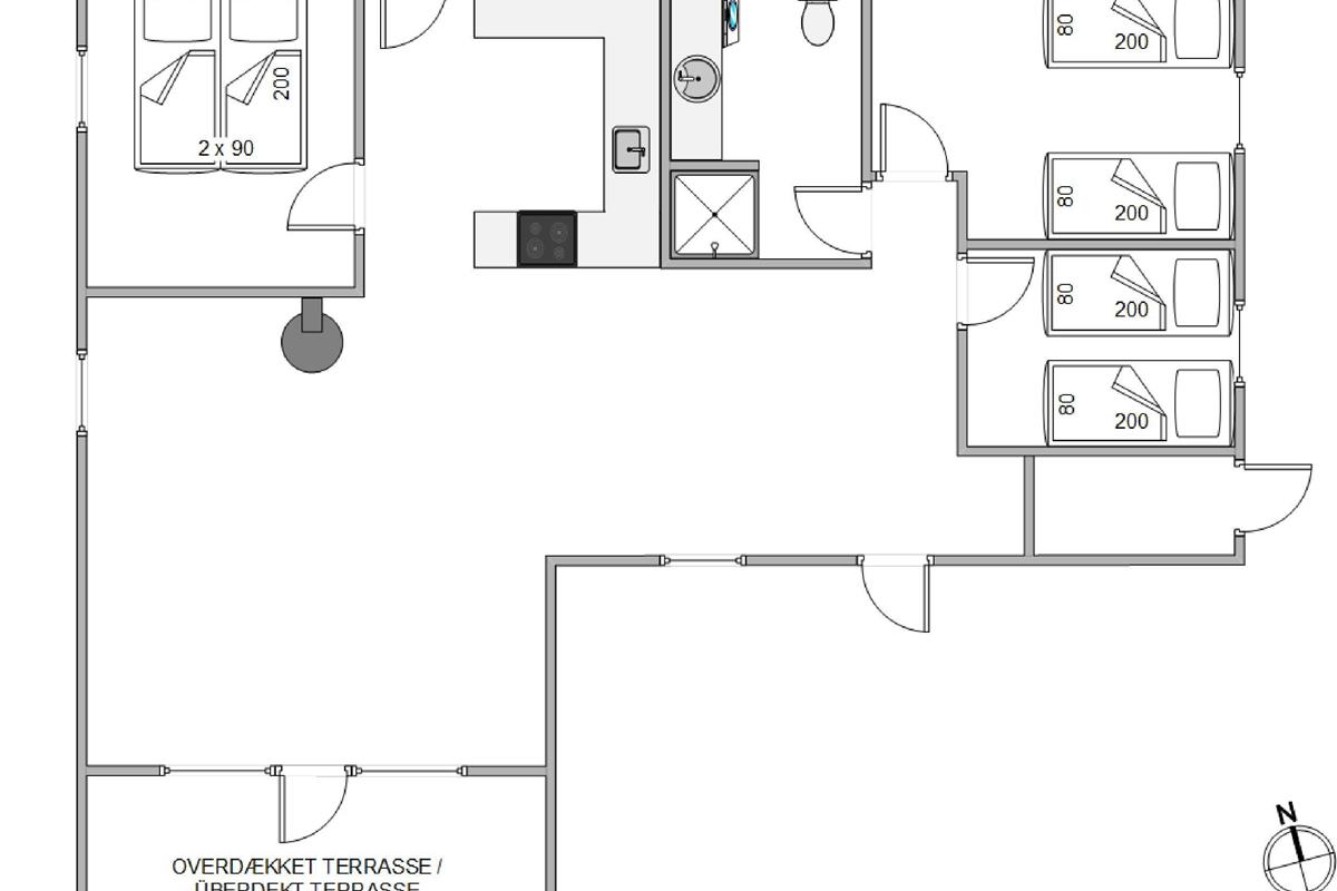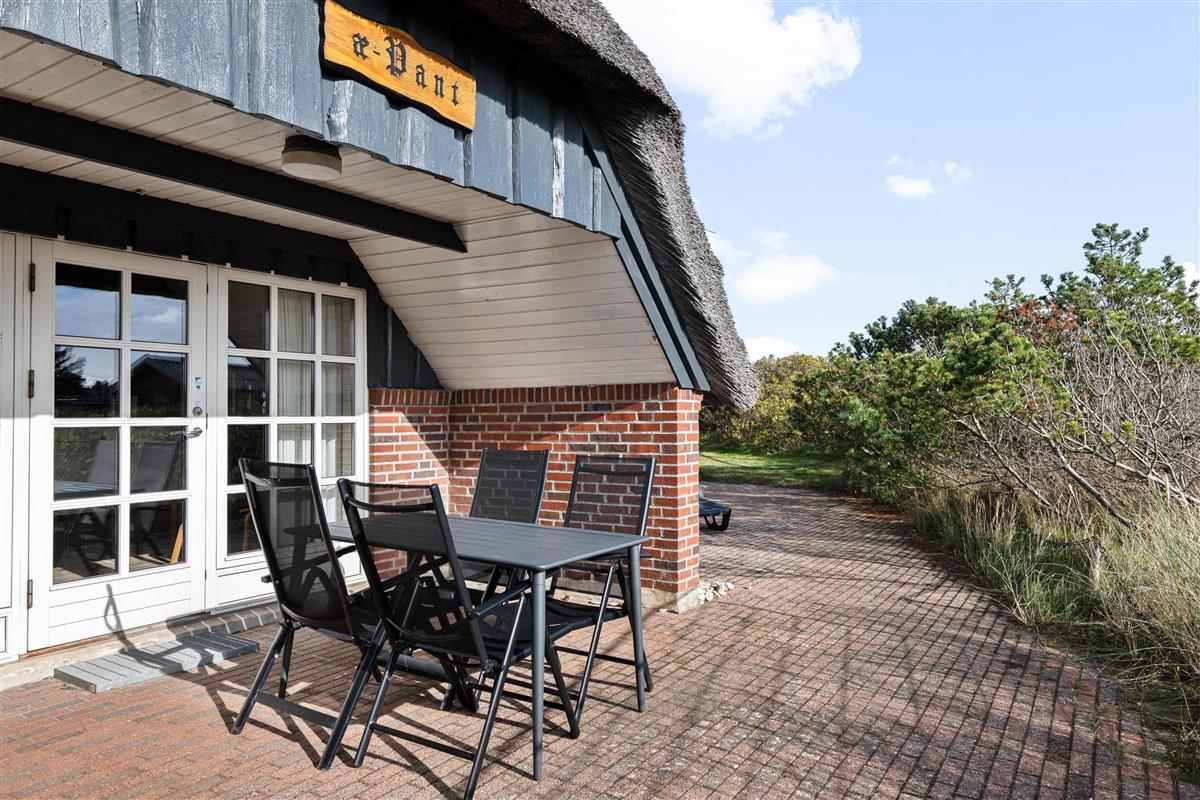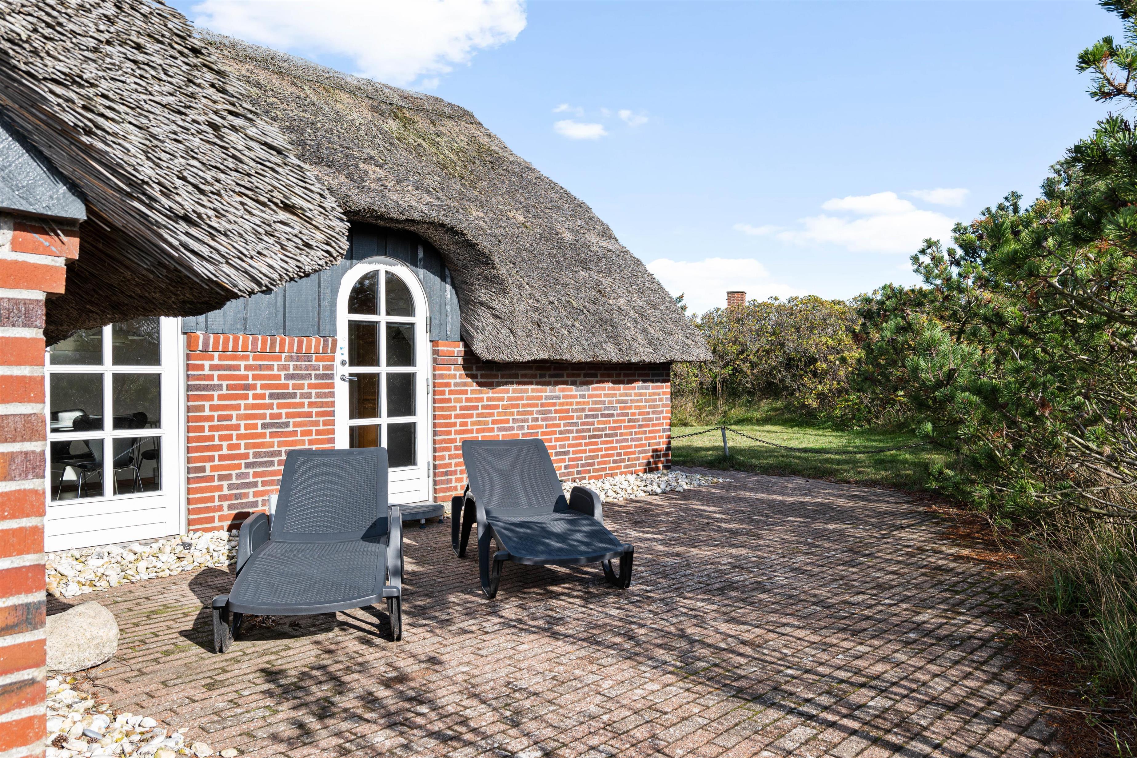 The holiday home creates an authentic Danish atmosphere both inside and out. The traditional thatched roof blends perfectly with the surroundings. The living room opens directly onto the main terrace, which is well-screened and partially covered. Thanks to the covering, you can stay outside longer in the evening and enjoy extended barbecues on warm summer nights. Your two dogs can relax at your feet while you round off the best days of the year with a refreshing drink.