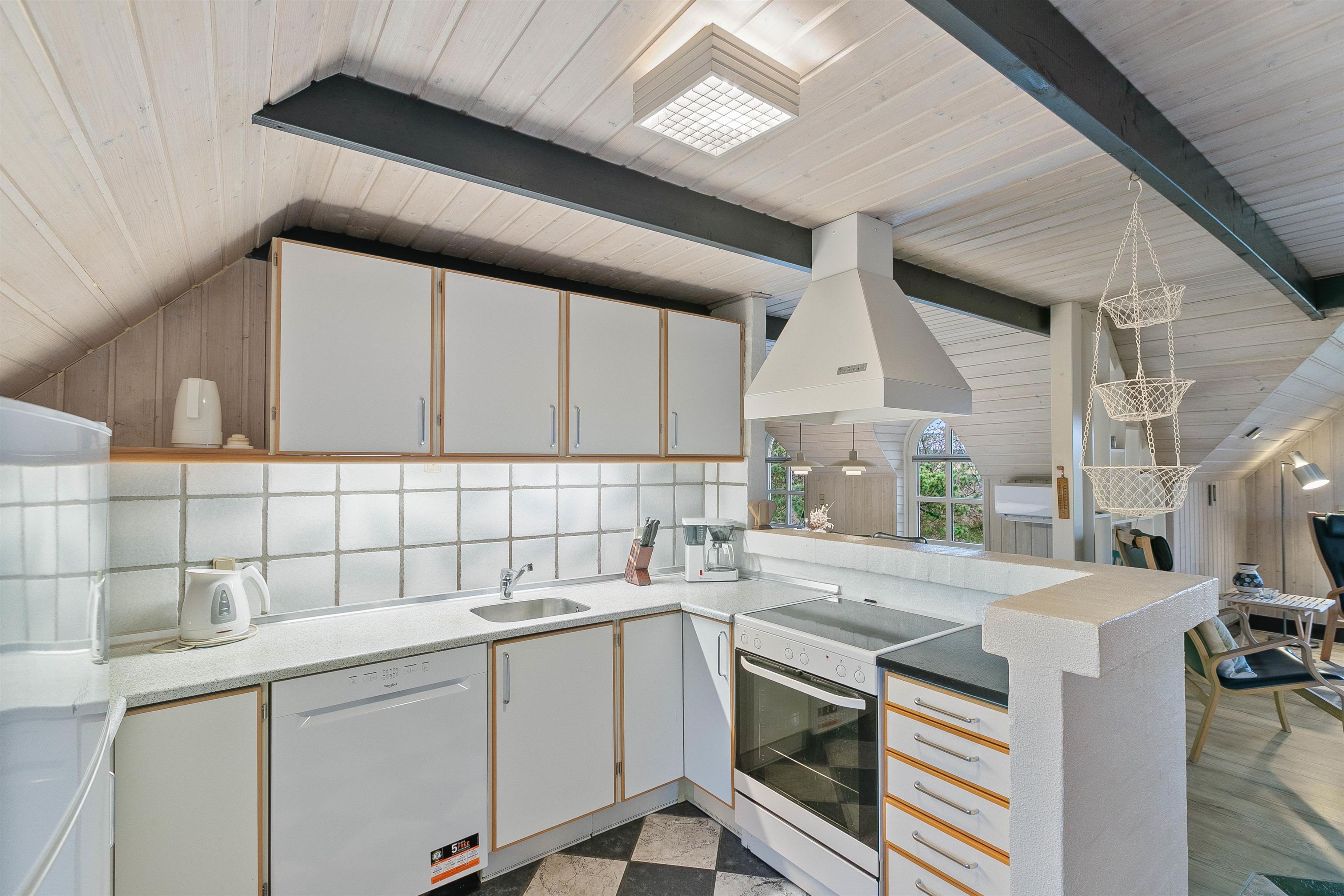 The classic holiday home atmosphere greets you as soon as you enter, inviting you to relax with your loved ones. Whether in the comfortable living room, which opens onto the kitchen, or at the dining table, up to 6 people can find space across 88 square metres, with 3 bedrooms and 1 bathroom with underfloor heating. Of course, there's also a dishwasher, washing machine and tumble dryer. A wood-burning stove completes the package, ensuring nothing stands in the way of a relaxing holiday - you just need to pack your bags and head to Denmark.