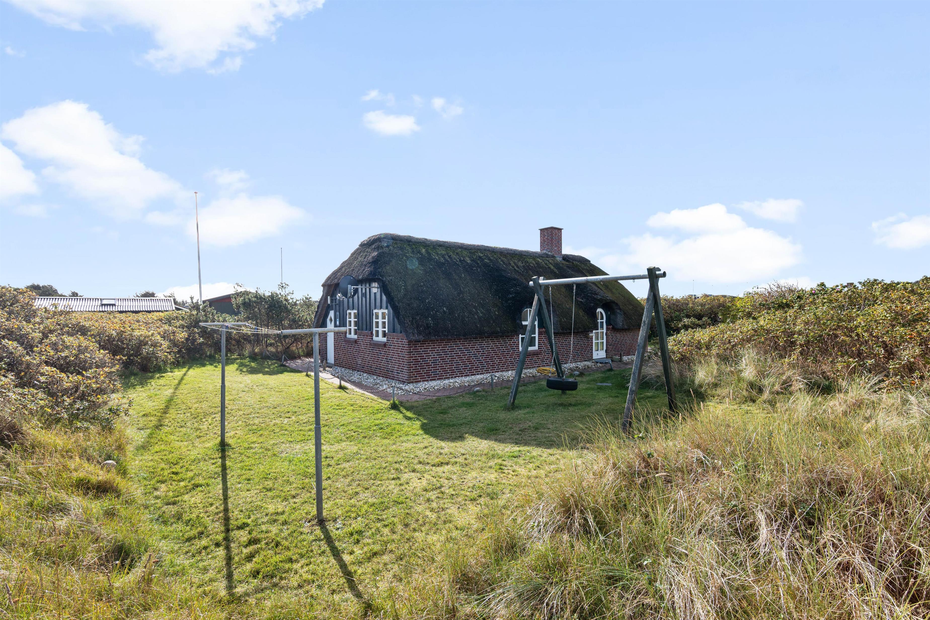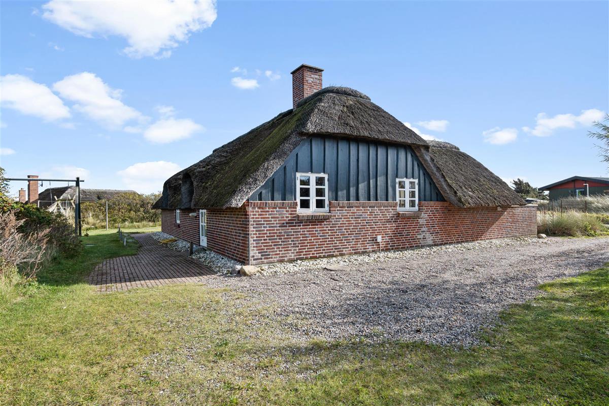 This cosy, thatched holiday home awaits you at Nordsøvej 81 in Søndervig. If you're looking for a central location near the beach in Søndervig, where you can relax on a private terrace, enjoy your holiday and bring up to two dogs, then this holiday home on Nordsøvej might be exactly what you're looking for. An energy-efficient heat pump maintains comfortable temperatures, while the wood-burning stove creates the perfect holiday atmosphere. The holiday home also features an electric car charging point (please bring your own cables/adapters).