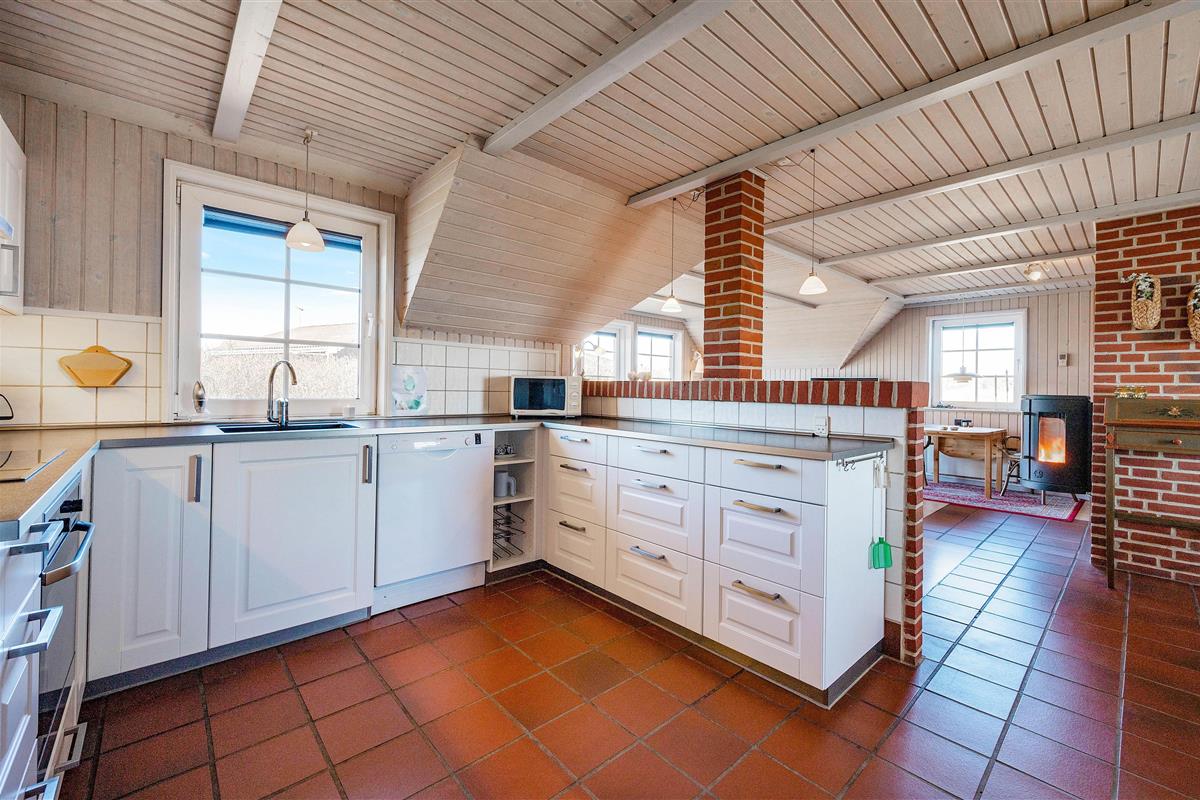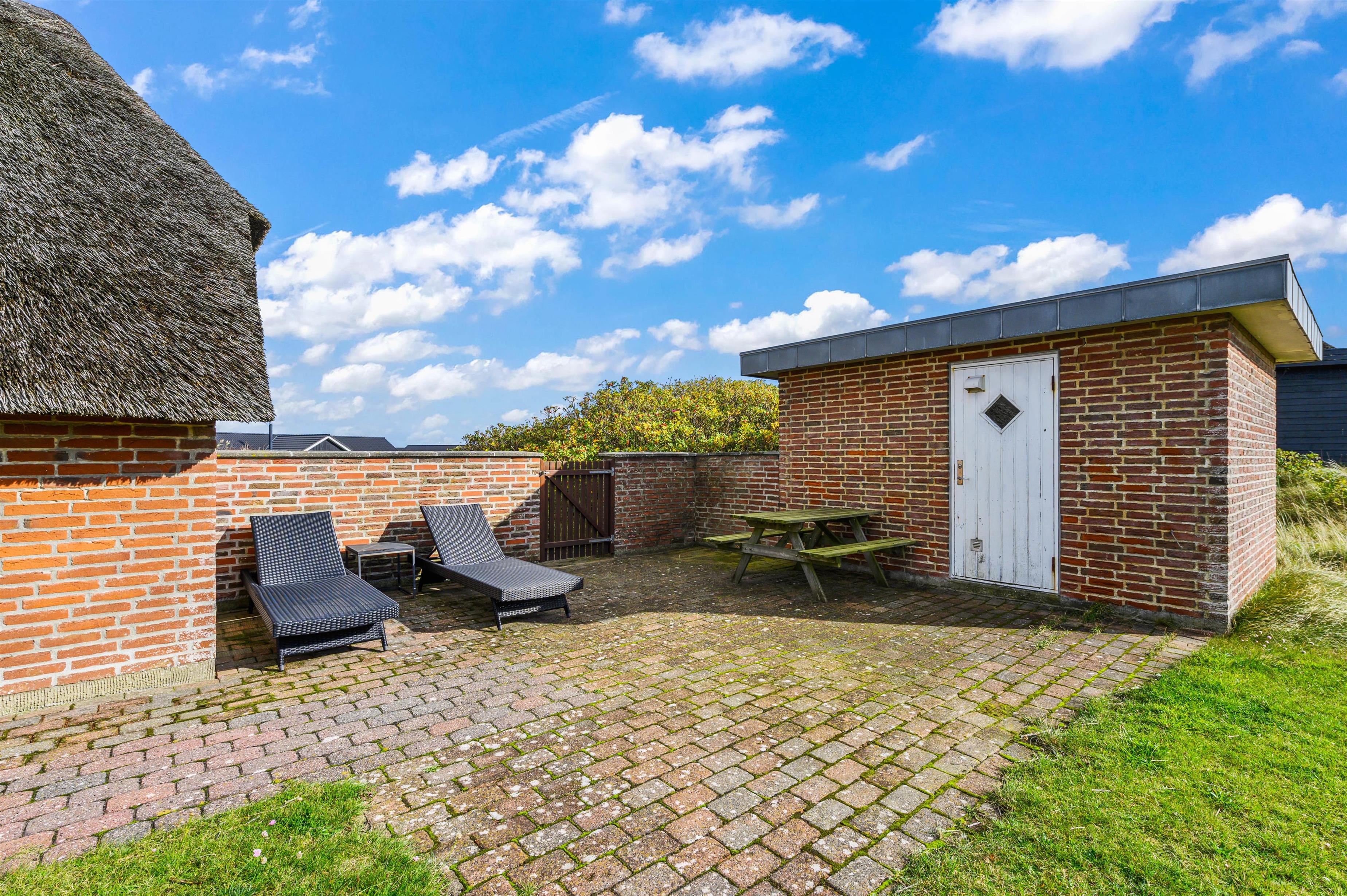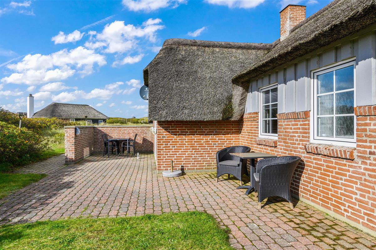 The holiday home sits on a large natural plot and features a beautiful south-facing terrace, ideal for warm summer evenings socialising and enjoying barbecues. The terrace is furnished with garden furniture and sun loungers for spending plenty of time in the fresh air. Søndervig centre, just a few minutes' drive from the house, offers exciting activities, shops, cafés and restaurants. Watch the pleasant bustle of this charming holiday destination and enjoy your break on the Danish North Sea coast.