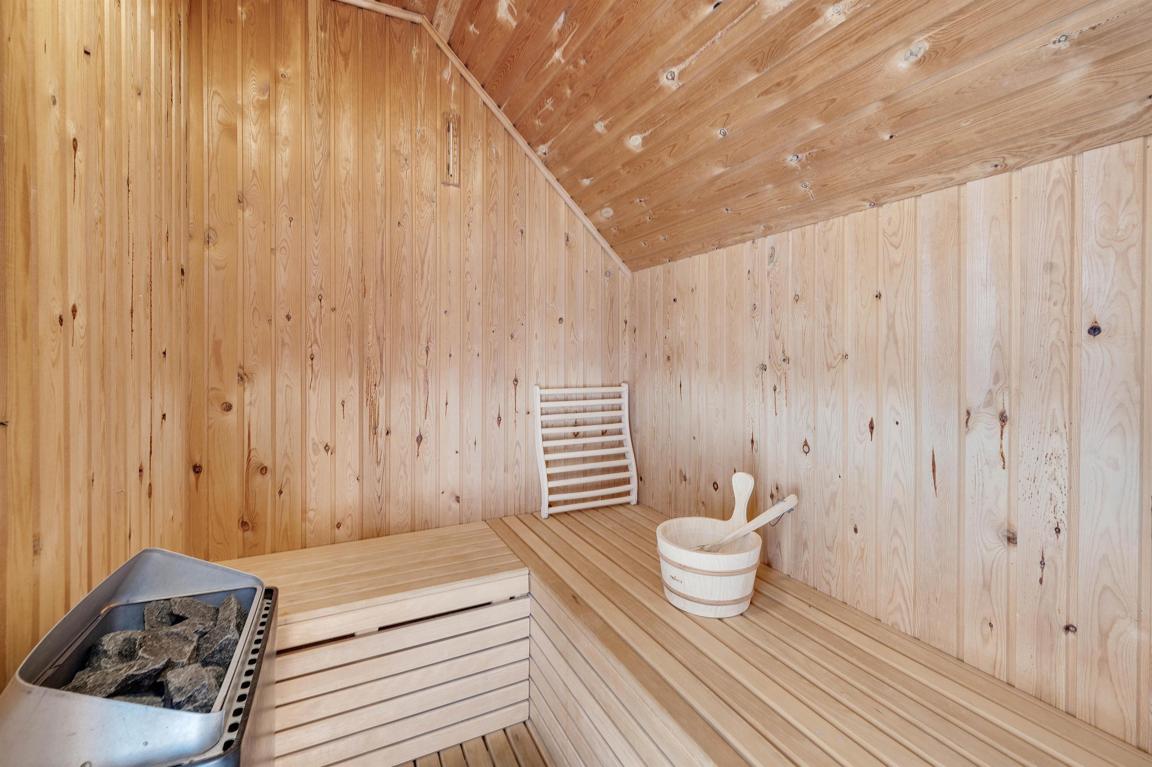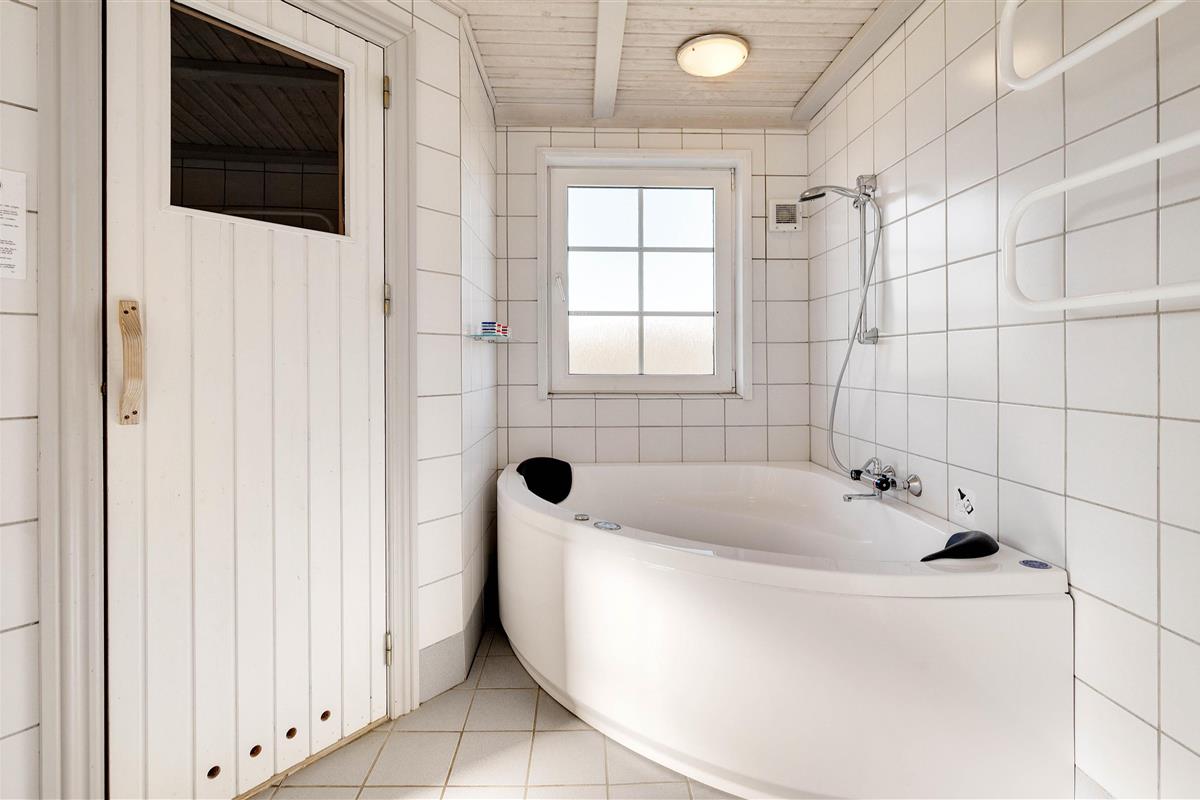 The holiday home also features a lovely bathroom with shower, whirlpool and sauna, plus a guest WC with washing machine and tumble dryer. After a long day at the beach, you can treat yourself to some relaxation time in the sauna or whirlpool. Both the bathroom and guest WC benefit from underfloor heating.