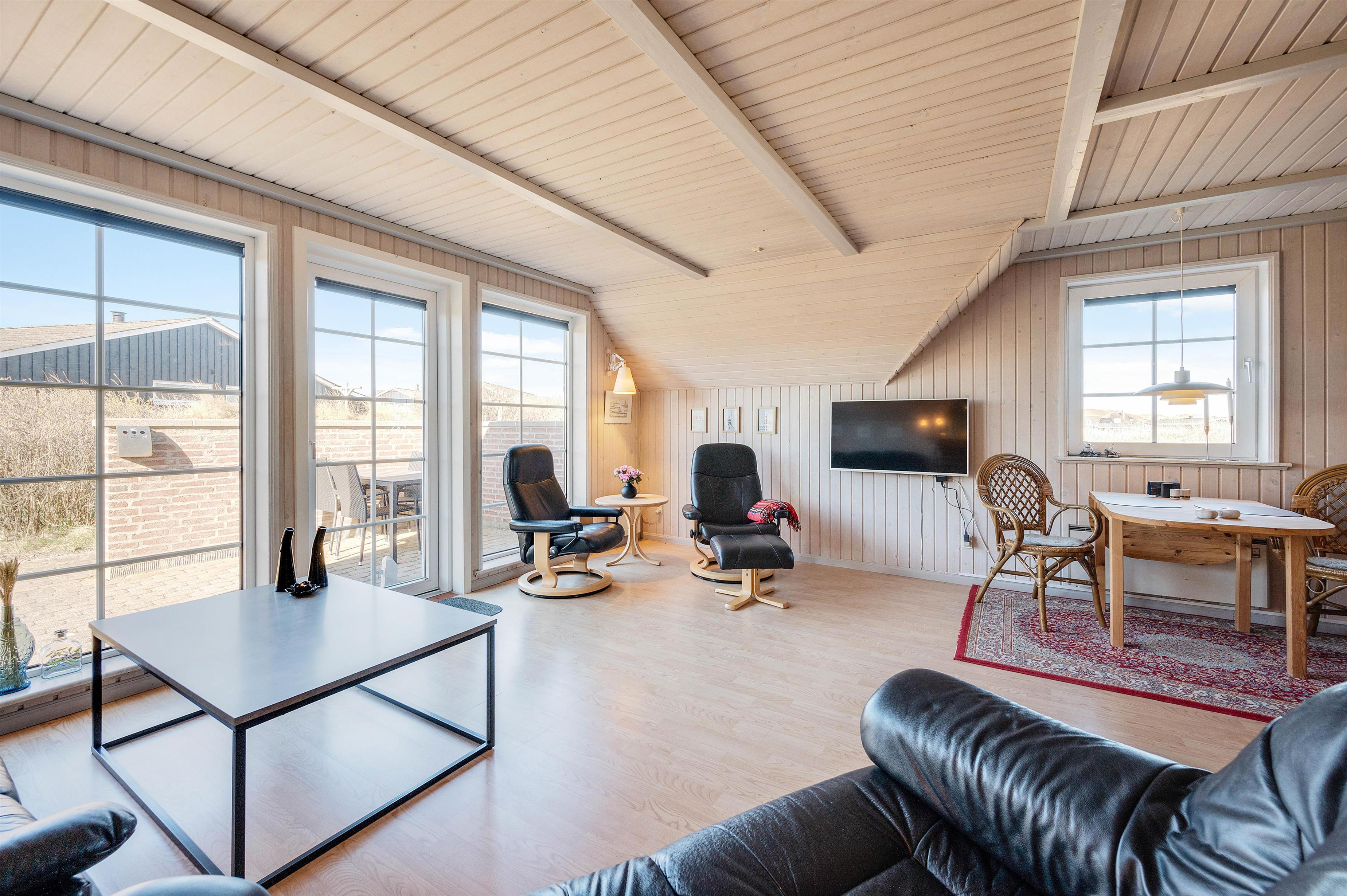 The holiday home in Søndervig is situated between the North Sea and Ringkøbing Fjord, just 275 metres from one of Denmark's finest beaches. If you fancy a spontaneous dip in the sea, the North Sea is just a short walk away. The beach offers plenty to do, from swimming and amber collecting to long walks, making this fantastic beach-close location particularly appealing.