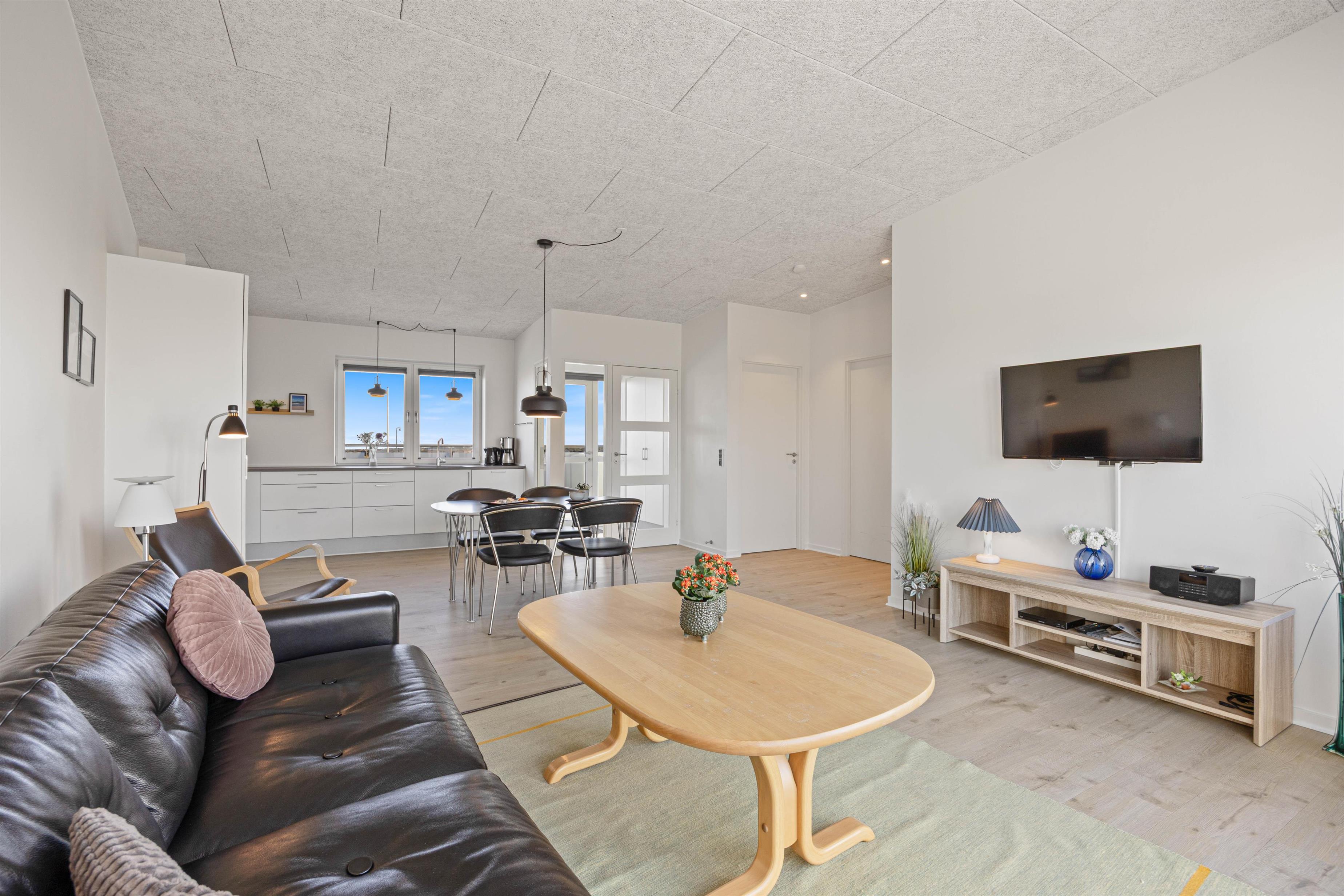 This stylish, modern and comfortable holiday apartment at Lodbergsvej 38 D1.1 was built in 2020 in a central location in Søndervig. If you prefer a central rather than remote location, and modern rather than rustic accommodation for your seaside holiday, this excellent apartment is well worth considering.