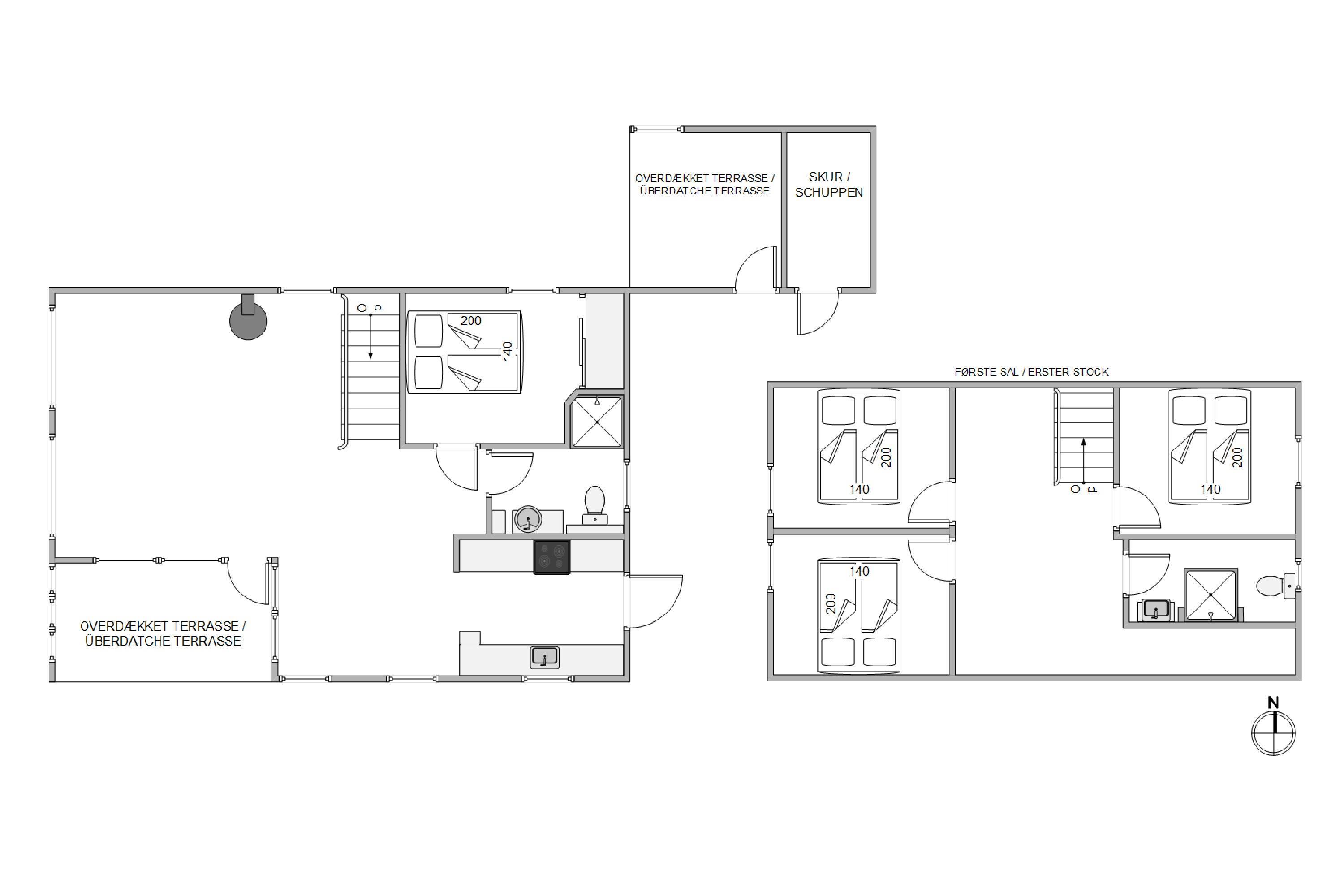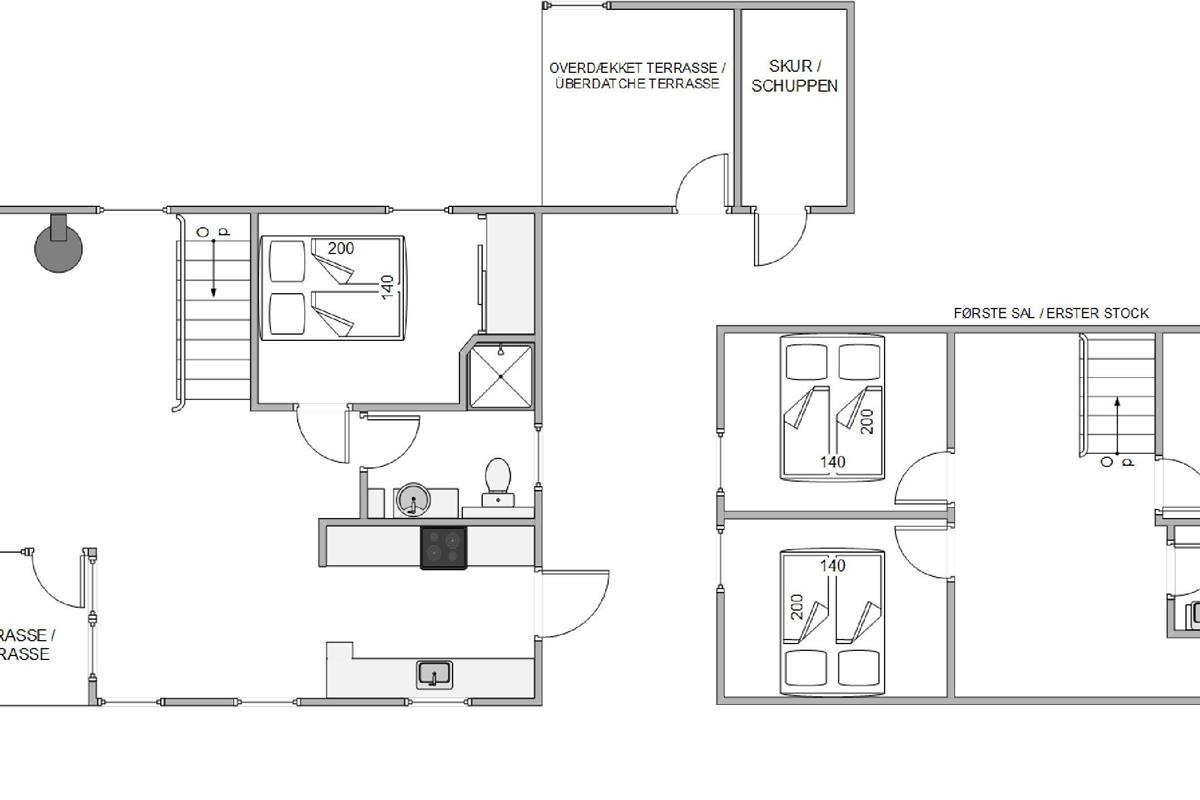 The open-plan living and dining area, including the kitchen, offers excellent opportunities for spending time together. After cooking in the kitchen, the dishwasher takes care of the cleaning while you gather around the dining table for an entertaining games evening. The crackling wood-burning stove adds to the holiday atmosphere. The energy-efficient air-to-air heat pump ensures a comfortable temperature throughout.