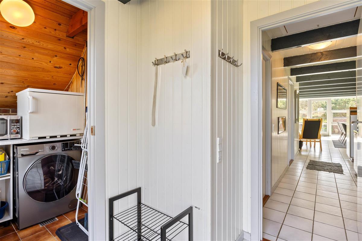 The holiday home is furnished with high-quality pieces in a bright and welcoming style, creating the perfect holiday atmosphere characteristic of Danish holiday homes. The excellent wood-burning stove ensures you can enhance the cosiness of your stay. For everyday convenience, you'll find a washing machine, tumble dryer and dishwasher, so you won't need to worry about laundry or washing up. The holiday home is also equipped with an energy-efficient air-to-air heat pump, ensuring a comfortable temperature throughout your stay.
