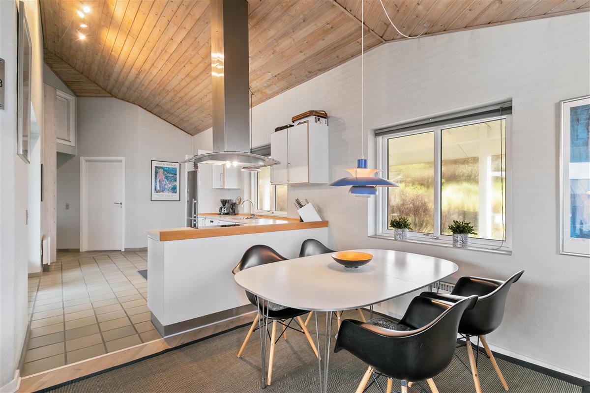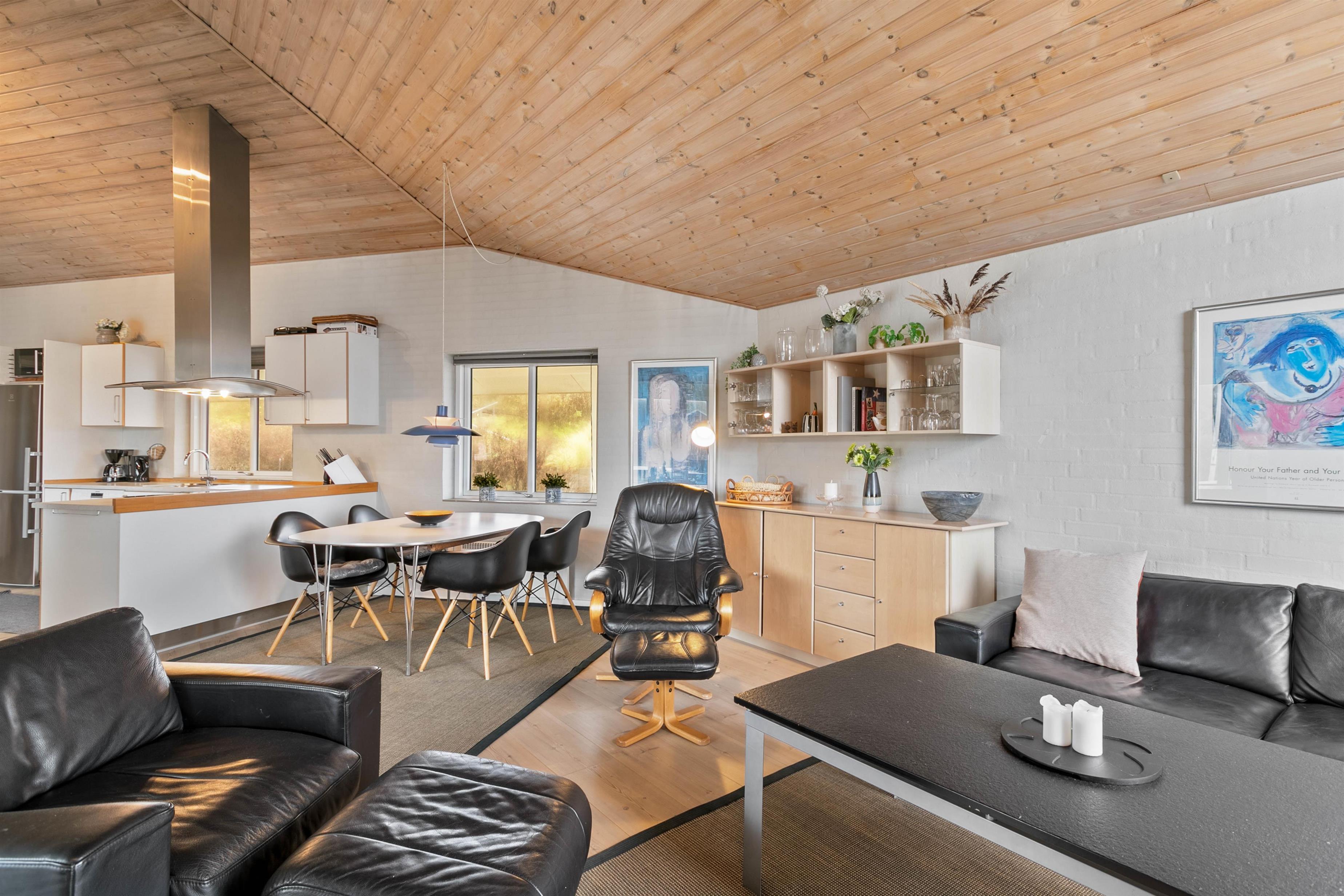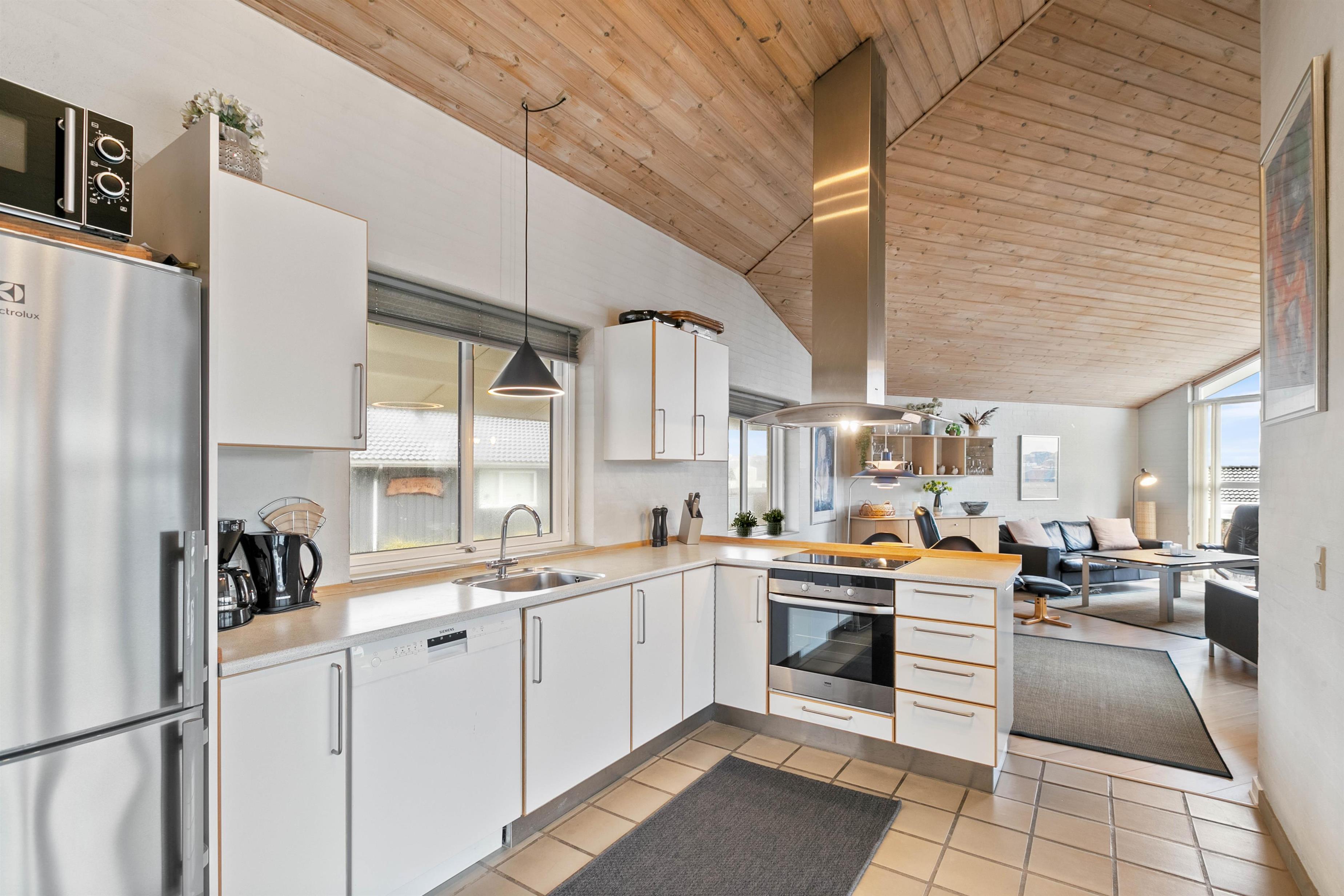 A beautiful holiday home with everything you need for a relaxing family holiday. In the open-plan living and dining area, you can enjoy the cosy atmosphere, while the wood-burning stove provides a pleasant warmth throughout. Laminate flooring, wooden ceilings, and light-colored walls combine to create a particularly homely and peaceful atmosphere.
