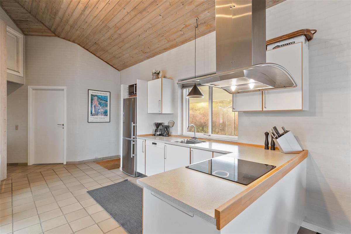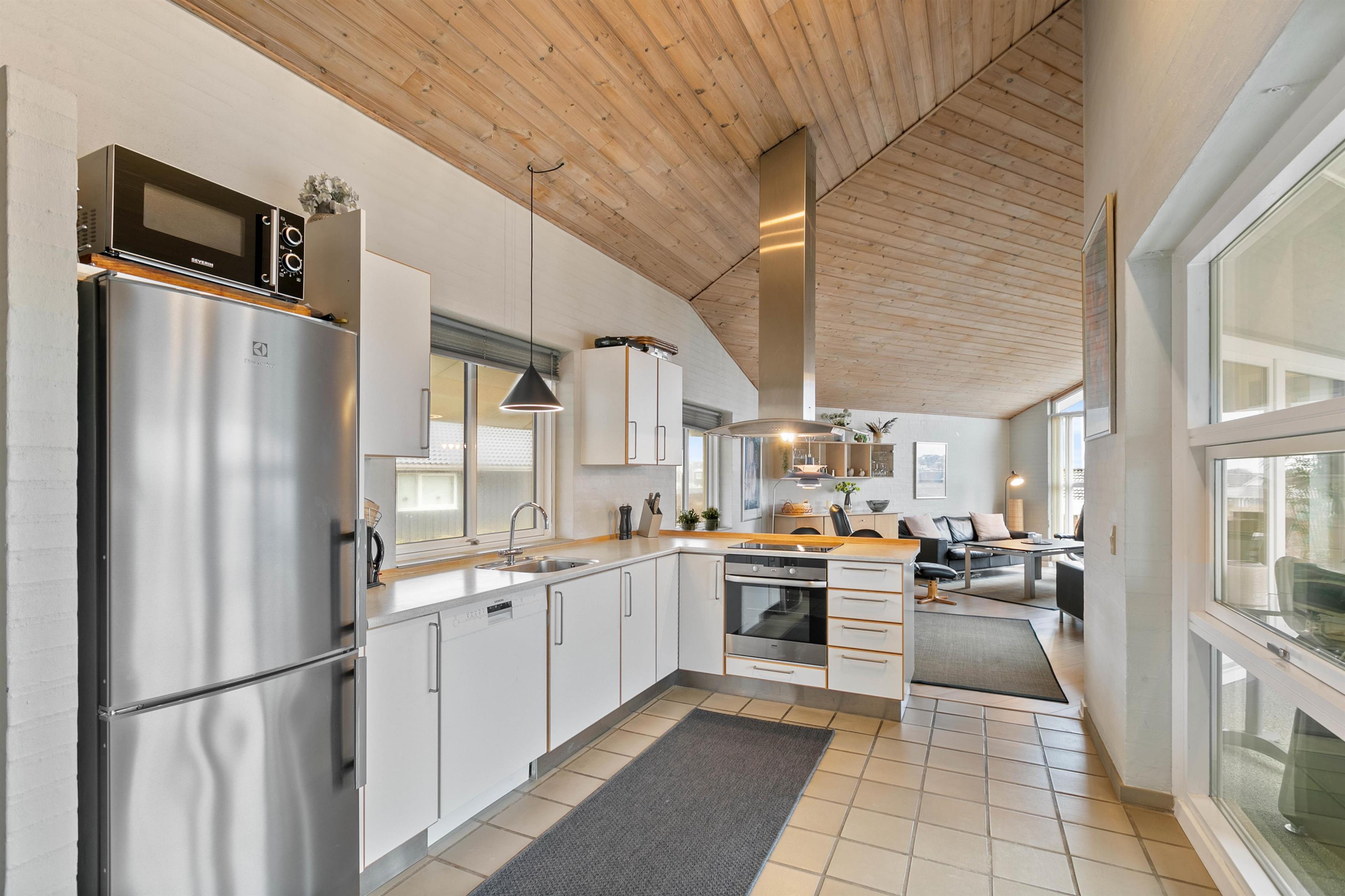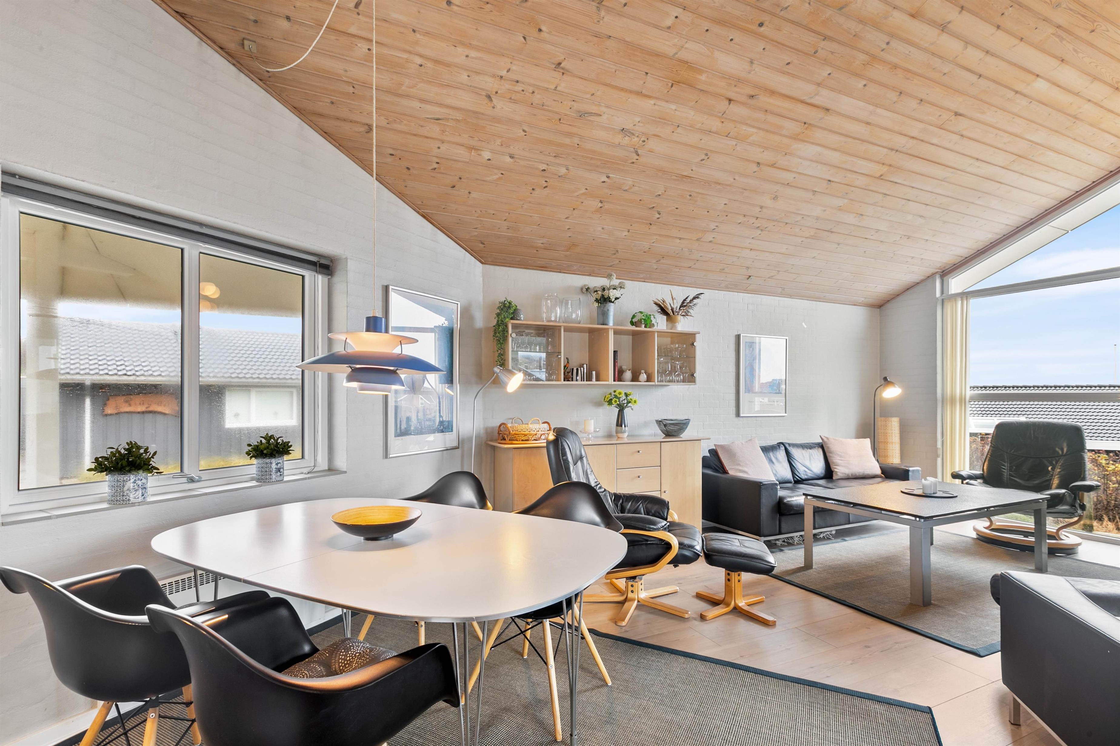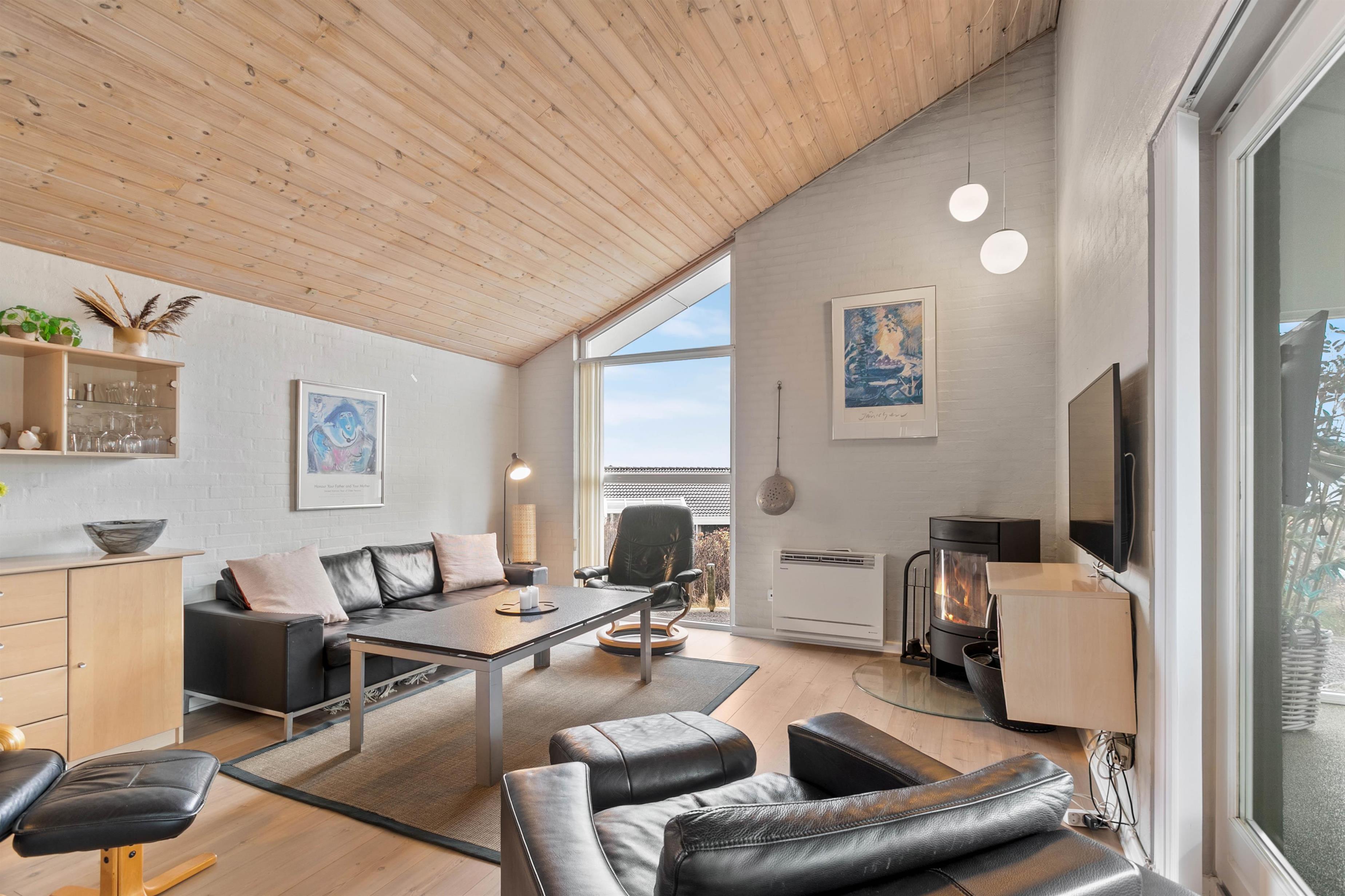 A beautiful holiday home with everything you need for a relaxing family holiday. In the open-plan living and dining area, you can enjoy the cosy atmosphere, while the wood-burning stove provides a pleasant warmth throughout. Laminate flooring, wooden ceilings, and light-colored walls combine to create a particularly homely and peaceful atmosphere.