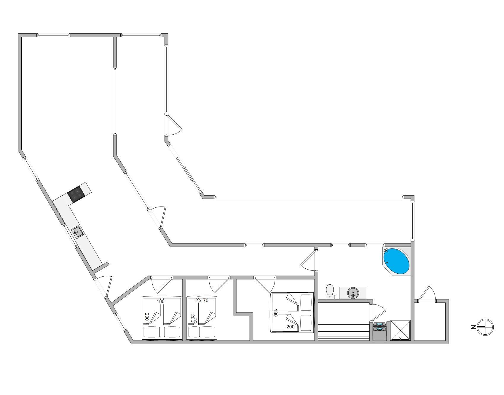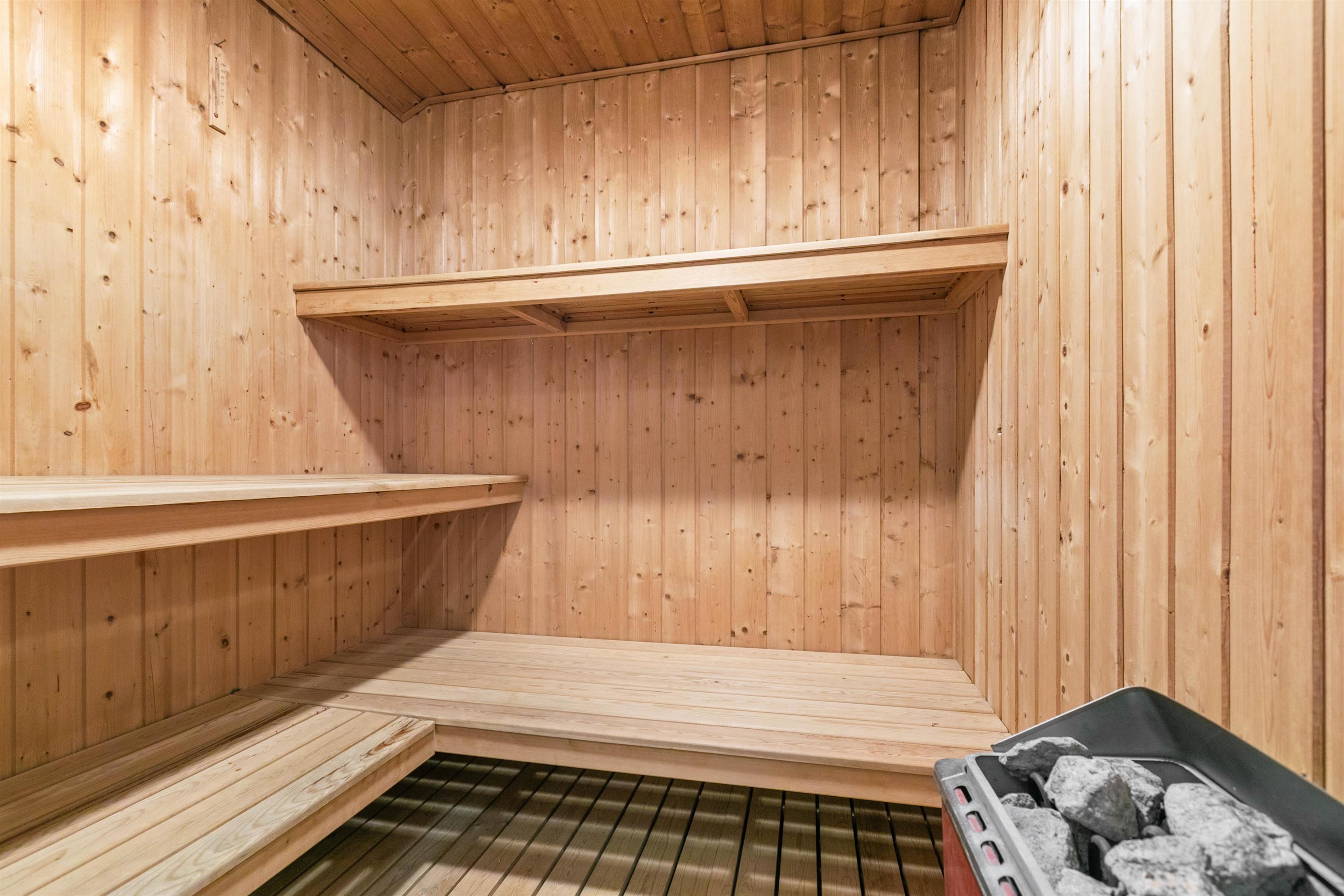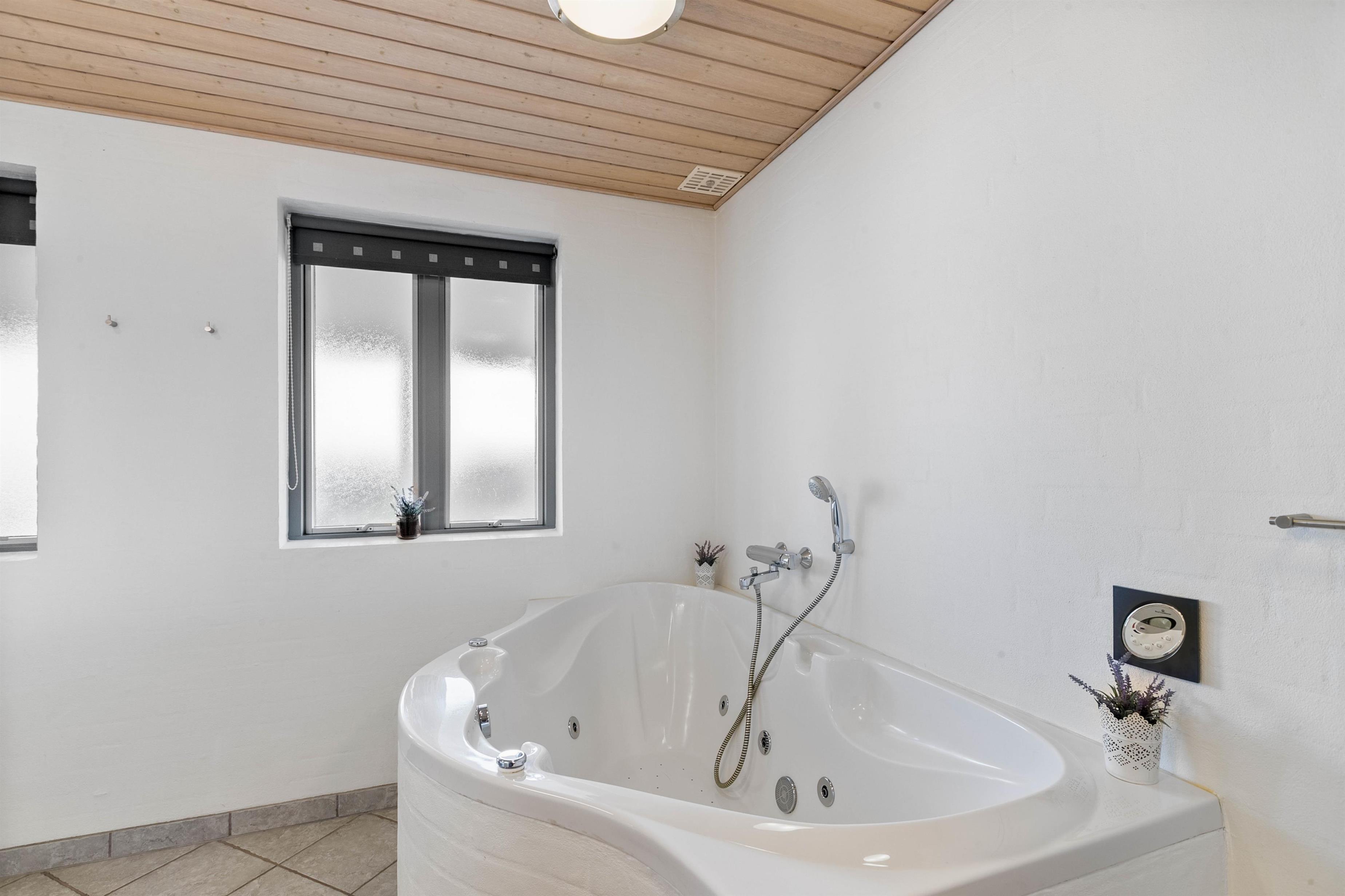 The bathroom features underfloor heating, which is especially welcome during the cooler months. On cold days, after a long beach walk, you can unwind in the hot tub or enjoy the warmth of the sauna.
