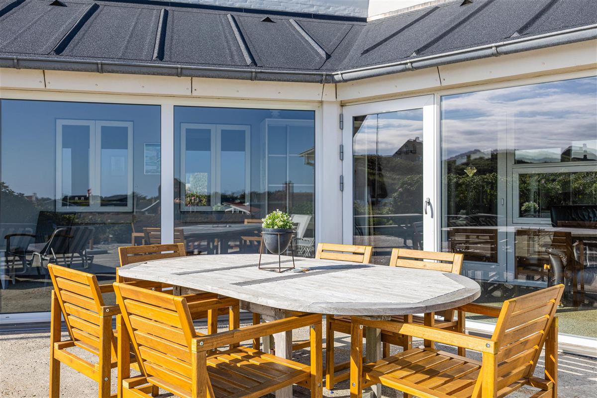 The holiday home is built on natural grounds and sits in a slightly elevated position. From the two terraces, you can enjoy undisturbed sunshine and fresh sea air throughout the day. A special highlight is the larger terrace, offering plenty of space for relaxation, barbecues or games.