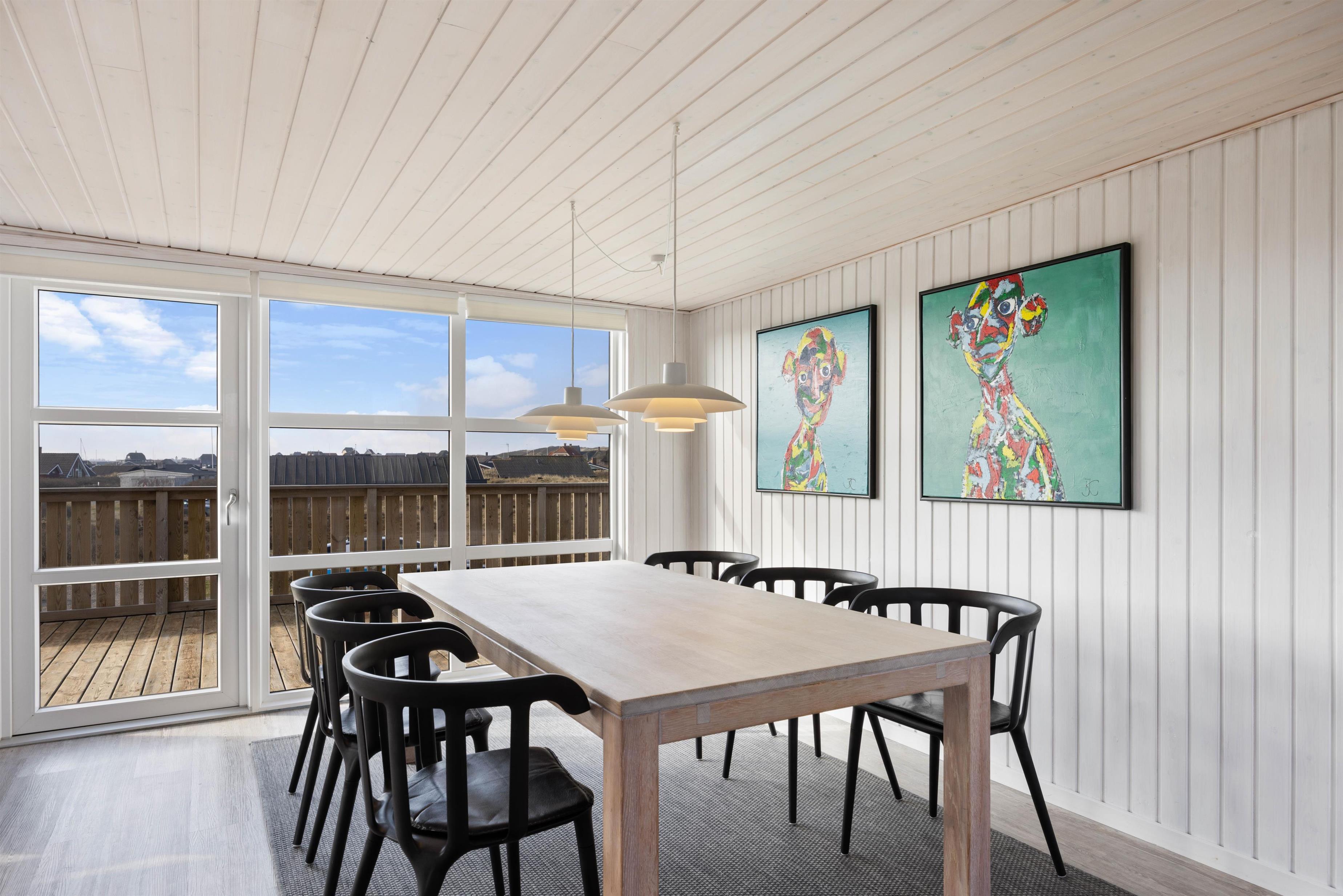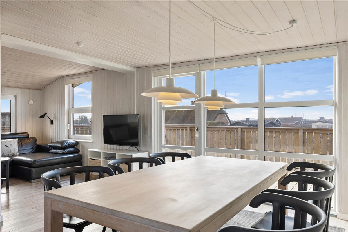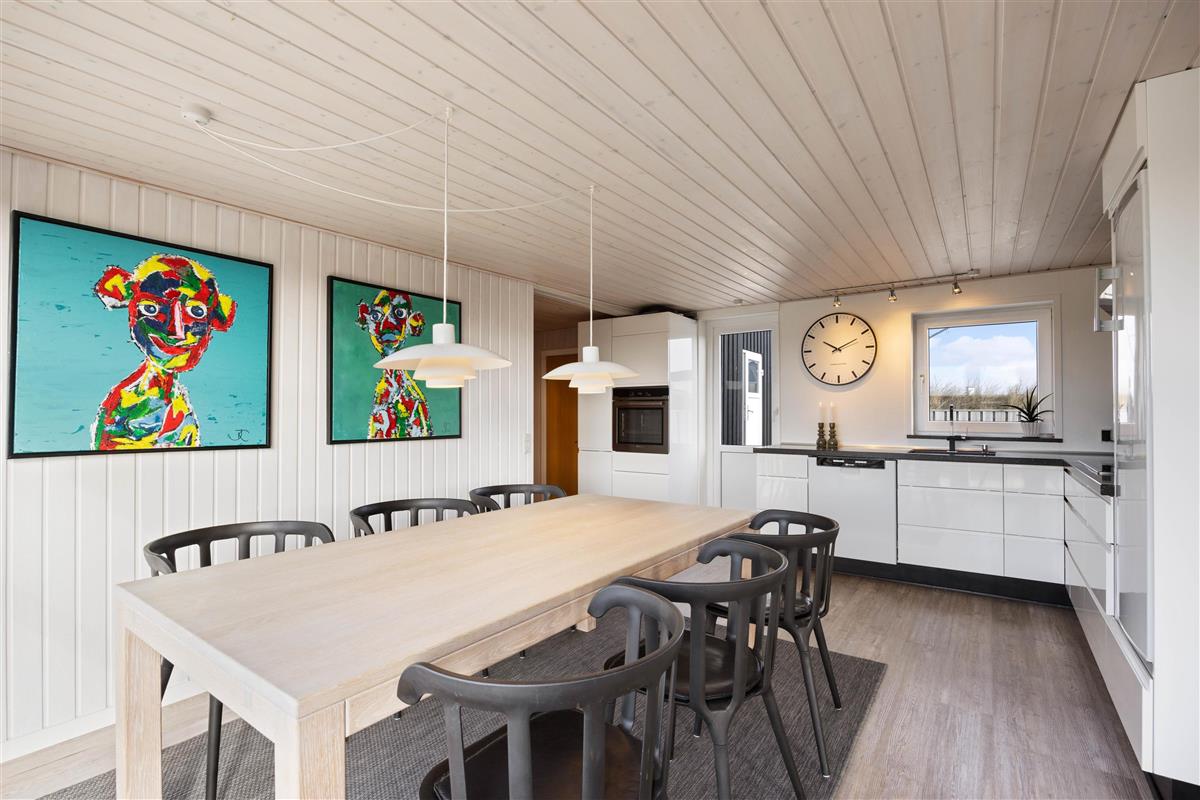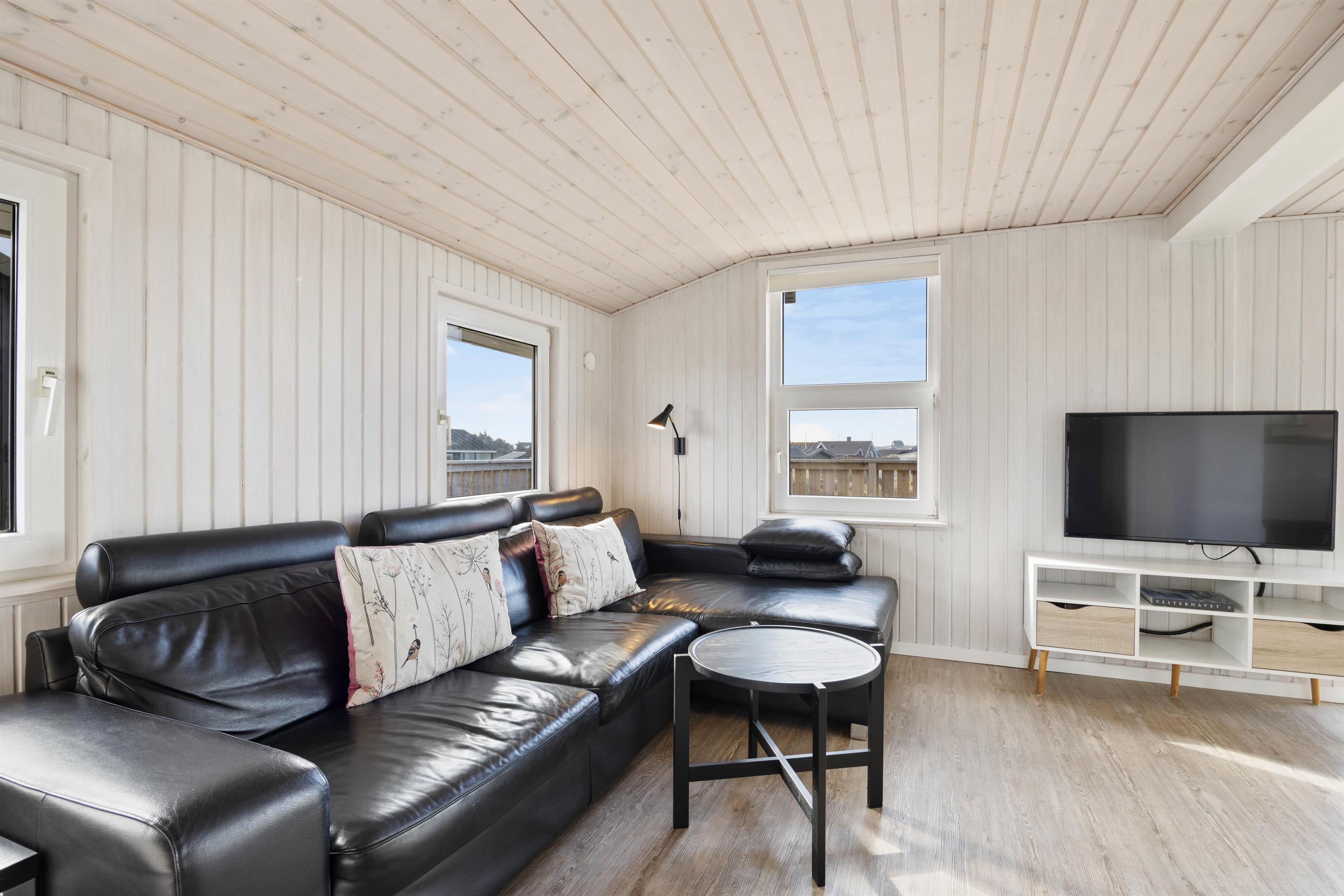 This 90-square-metre holiday home at Sand Holms Vej 43 in Søndervig, accommodating 5 people, instantly welcomes you, your family and your dog, helping you slip straight into holiday mode. The bright, sun-filled holiday home impresses with its well-designed layout and cosy atmosphere, enhanced by the wood-burning stove and integrated heat pump.