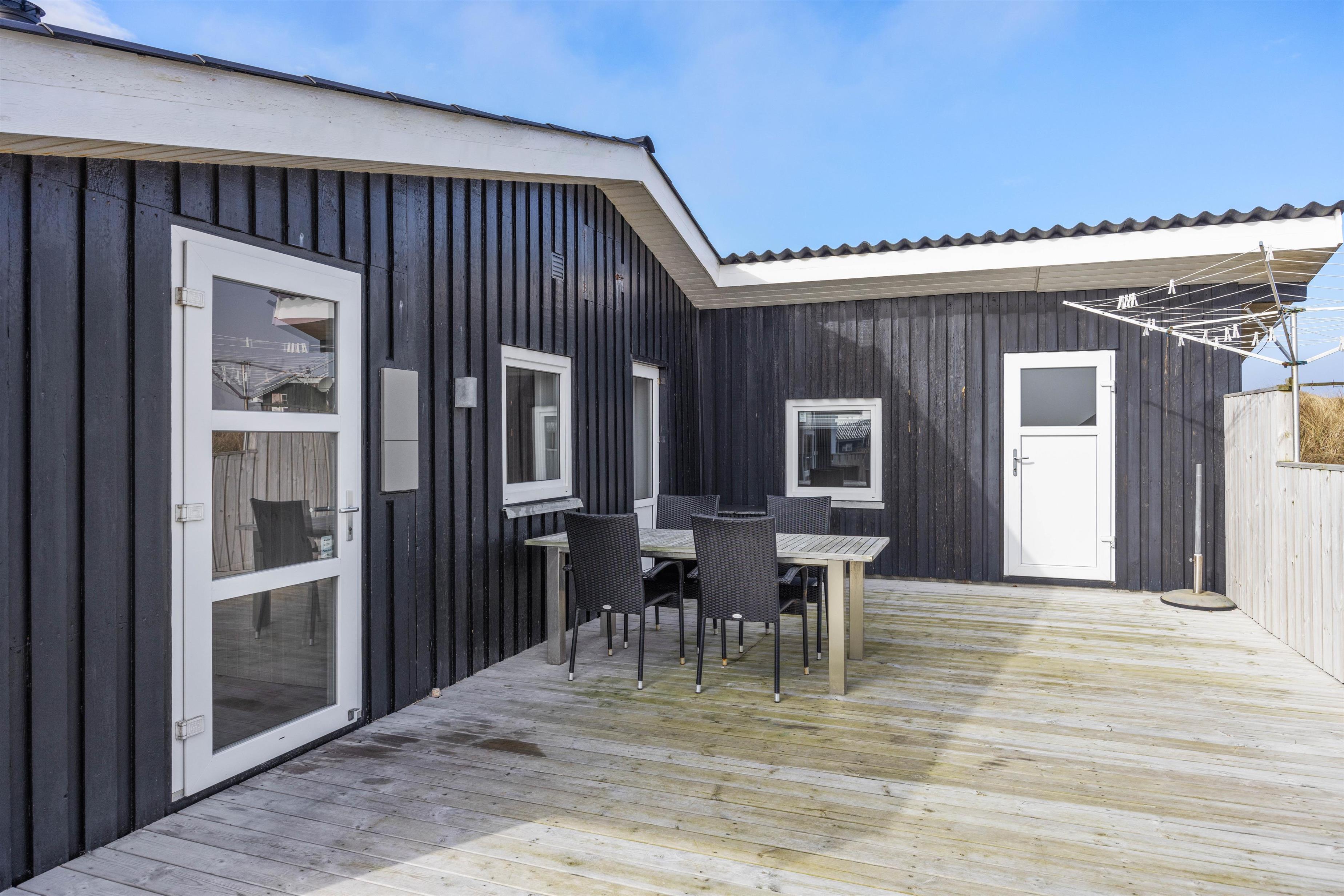 The cosy, enclosed wooden terrace provides a delightful outdoor space. Relax with some sunbathing amongst the dunes or let children play freely in the natural grounds. Your dog will also love exploring the holiday home and relaxing on the enclosed terrace. Evening barbecues are a pleasure with the provided gas BBQ - enjoy your grilled favourites and refreshments enhanced by the fresh sea air and sound of waves in the background. The beach's proximity invites evening walks to perfectly round off your day.