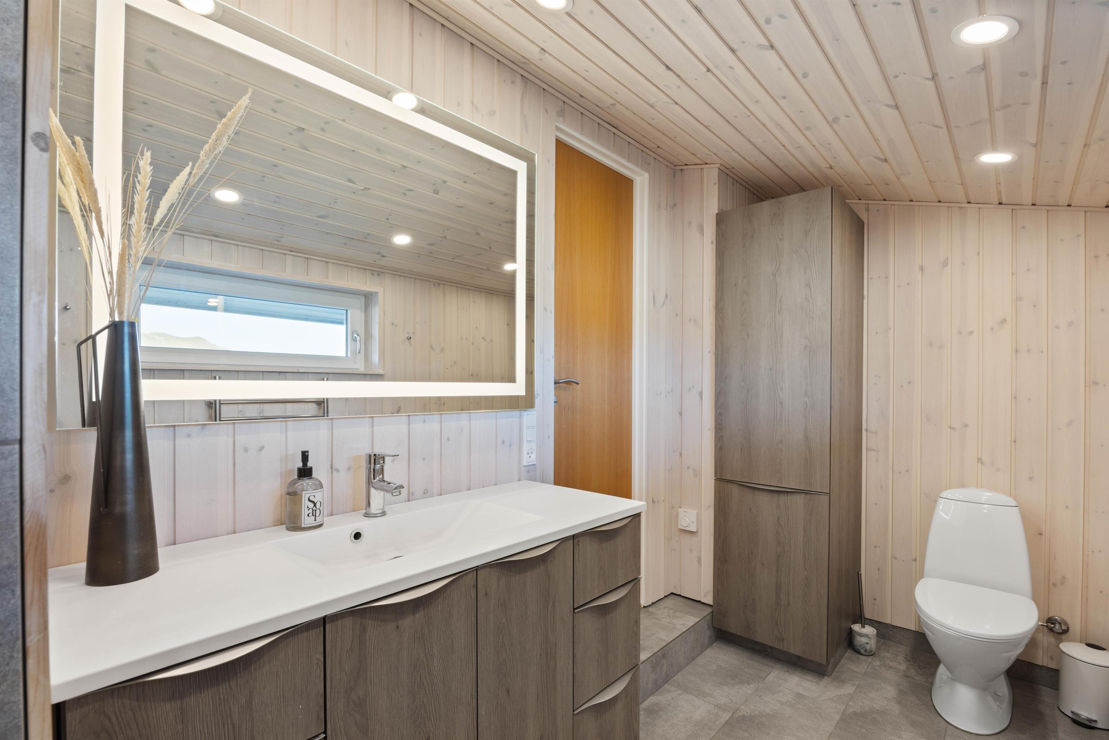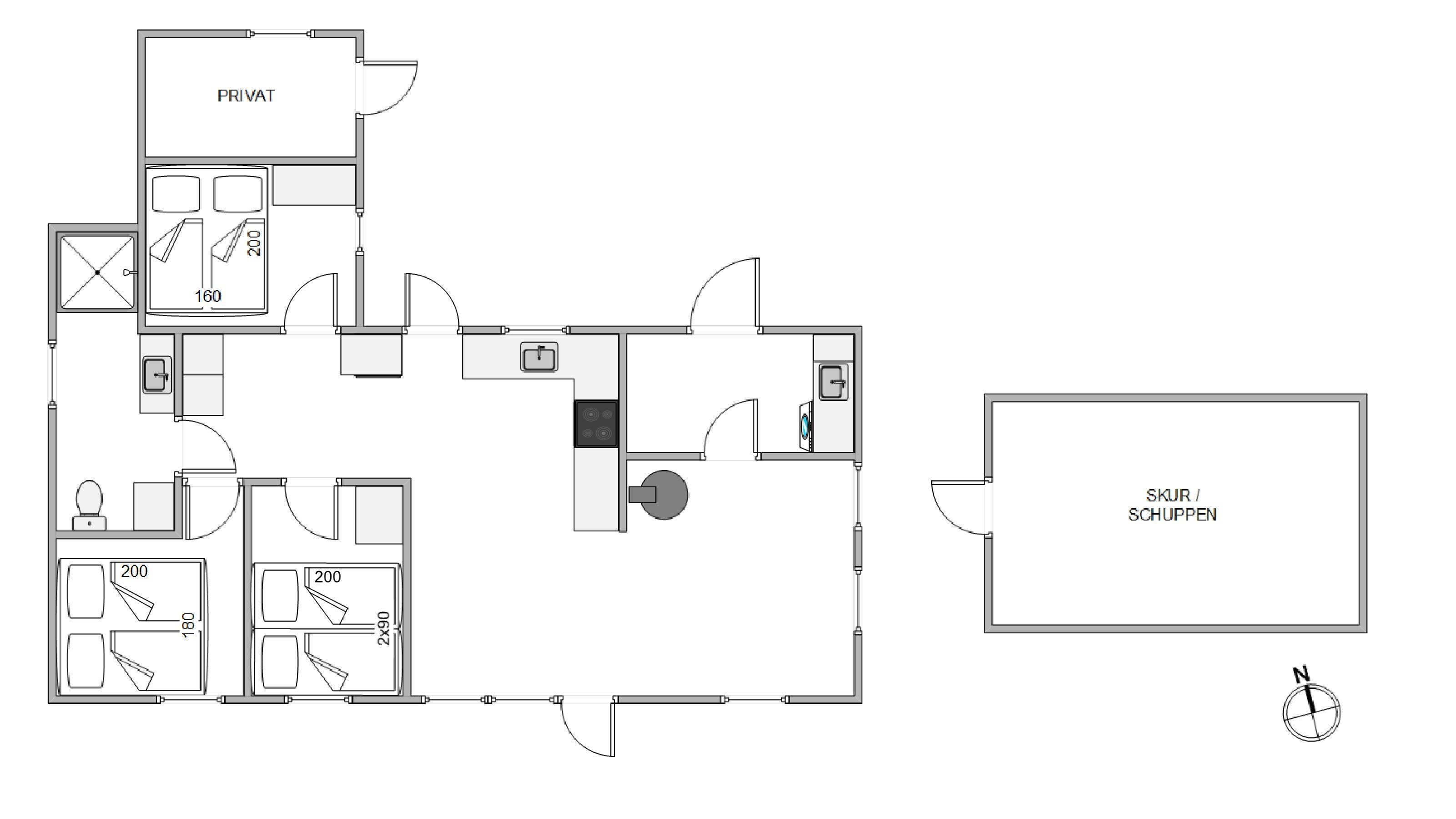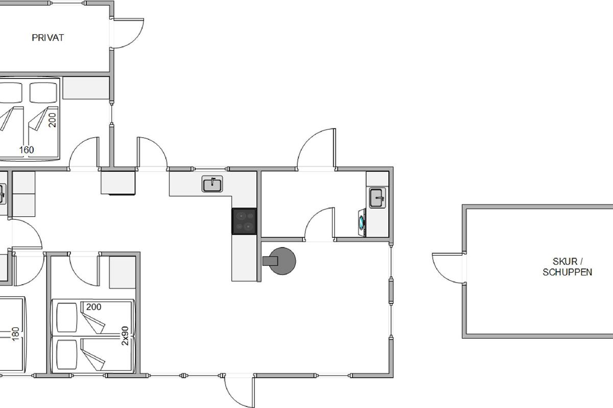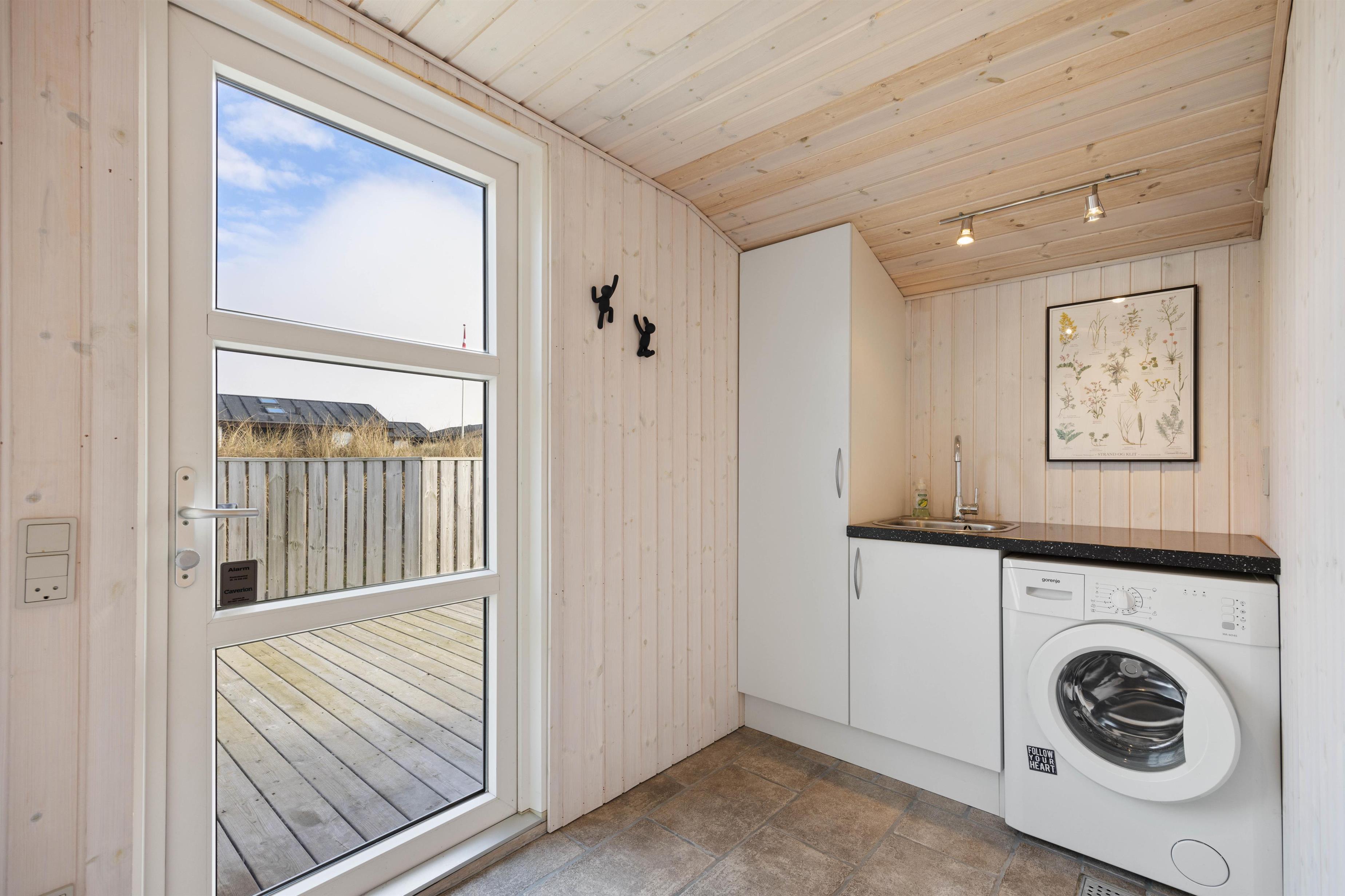 The open-plan, well-equipped kitchen is perfect for preparing delicious meals whilst remaining part of the holiday atmosphere – typical of Danish design. Whether spending evenings by the wood-burning stove, watching the flat-screen TV with German channels, or enjoying games nights at the large dining table, you can savour every moment of your holiday. The three bedrooms provide excellent sleeping arrangements, ensuring you're energised for each new holiday adventure. The open-plan dining and living area offers the perfect spot for planning your day over breakfast. The stylish bathroom reflects the welcoming concept of this holiday home. A washing machine in the hallway keeps clothes fresh, while the integrated heat pump helps keep energy costs down.
