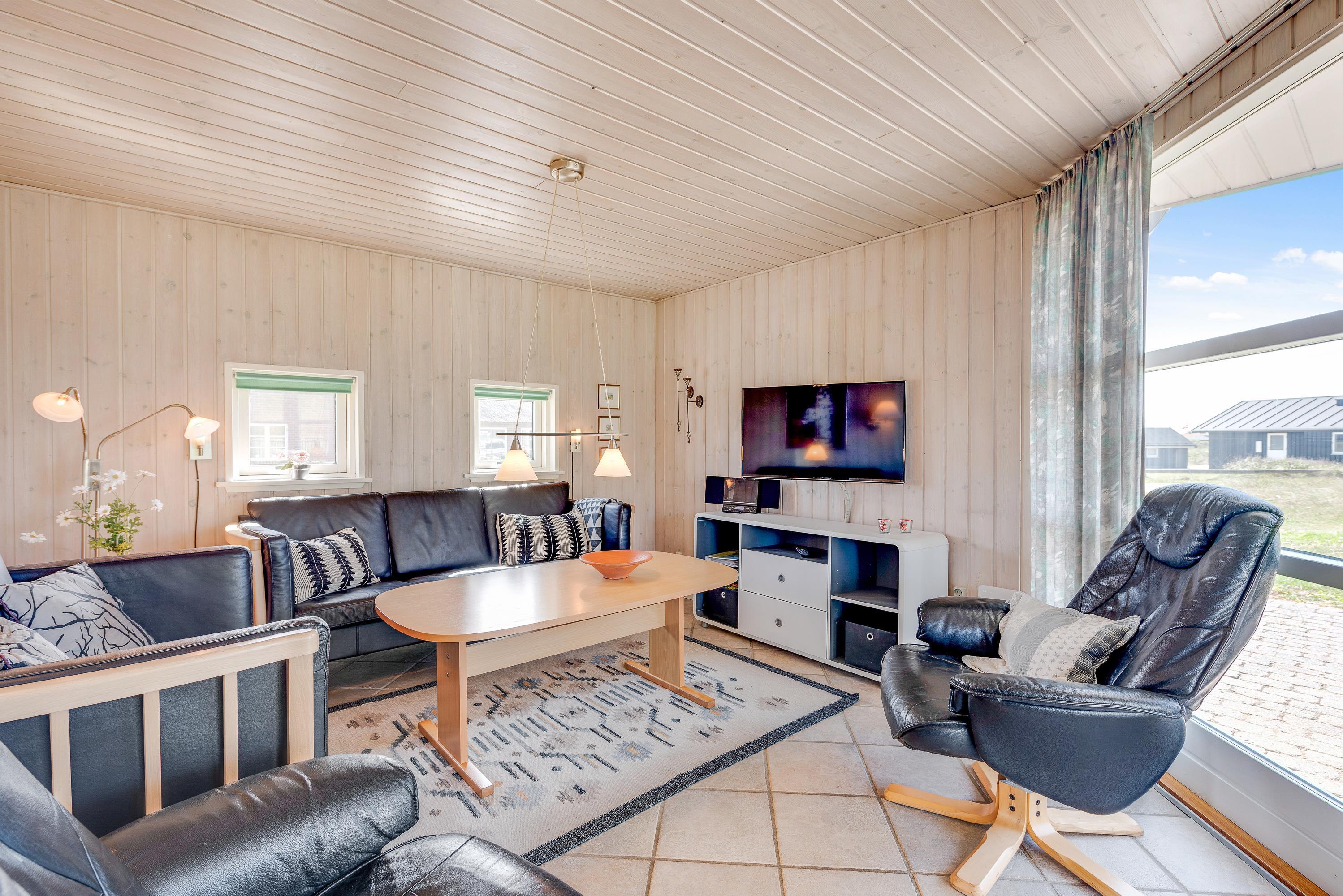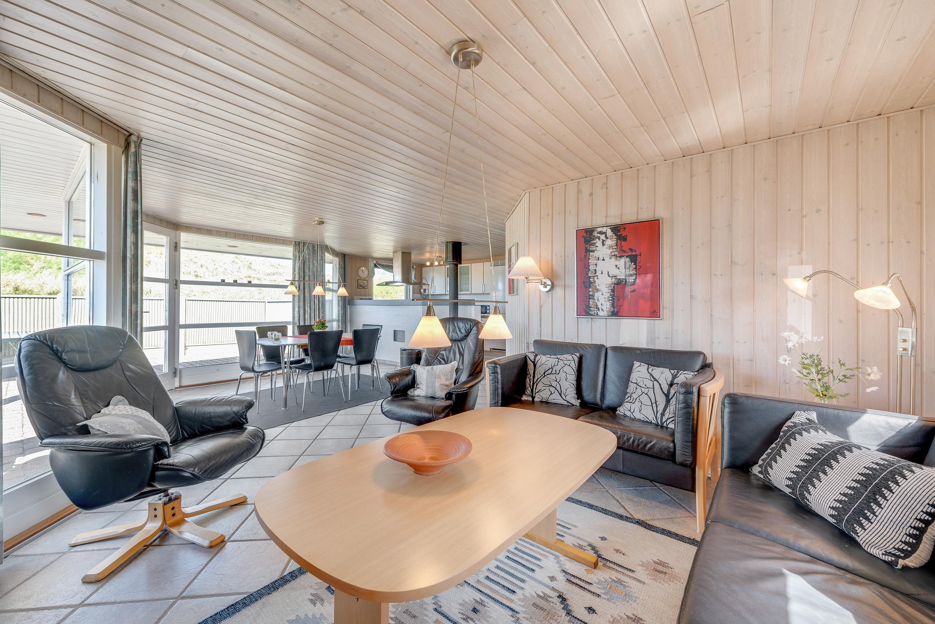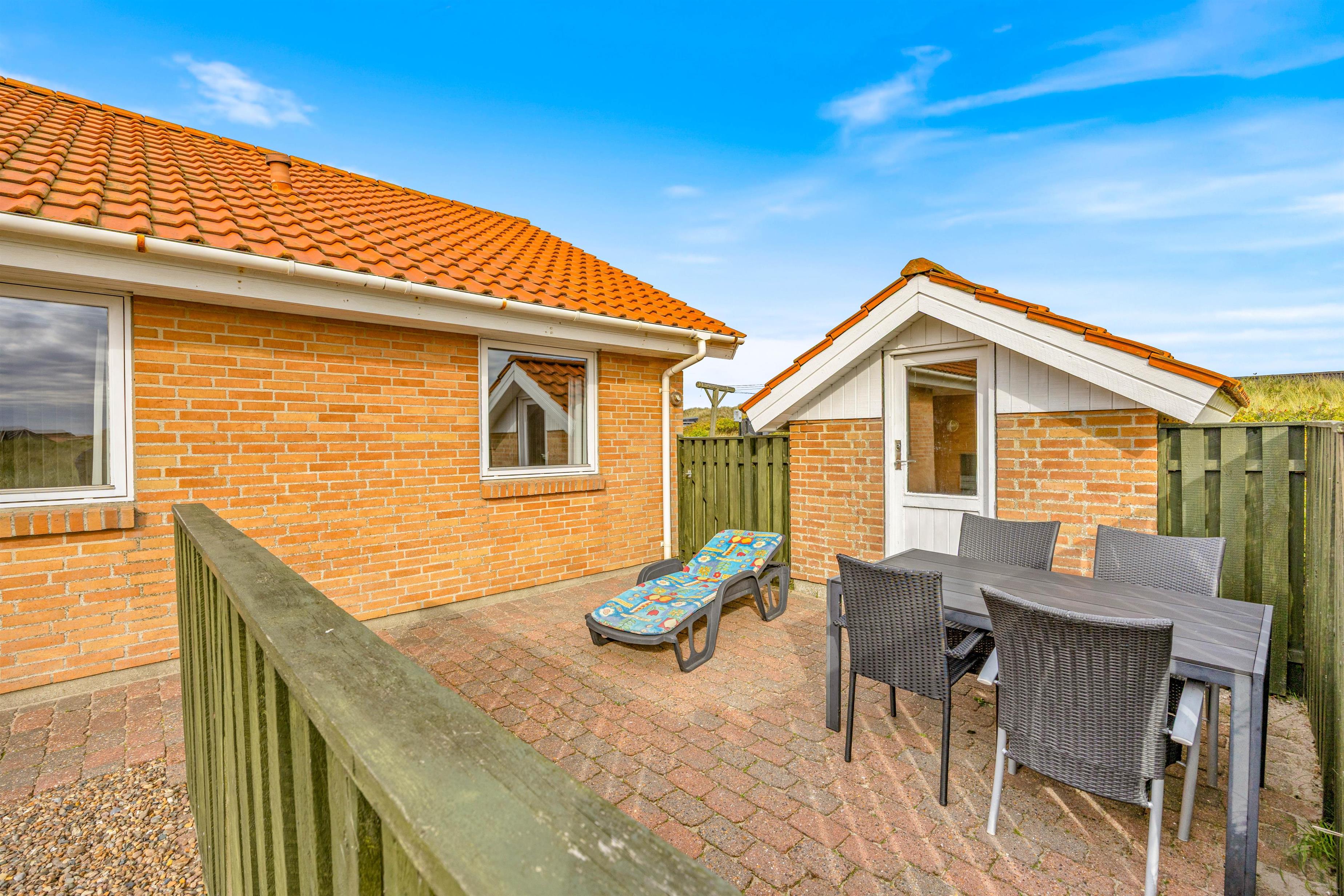 The holiday home is situated just 150 metres from the sea in an area of similar properties. Grab your children and dogs for long walks on Søndervig beach. Marvel at the historic bunkers, collect shells, hunt for amber or build magnificent sandcastles. The beach is worth visiting whether on a hot August summer's day or a windy October afternoon. In Søndervig, you'll also find boutiques, restaurants and cafés. The old town of Ringkøbing and the harbour town of Hvide Sande are also worth exploring.