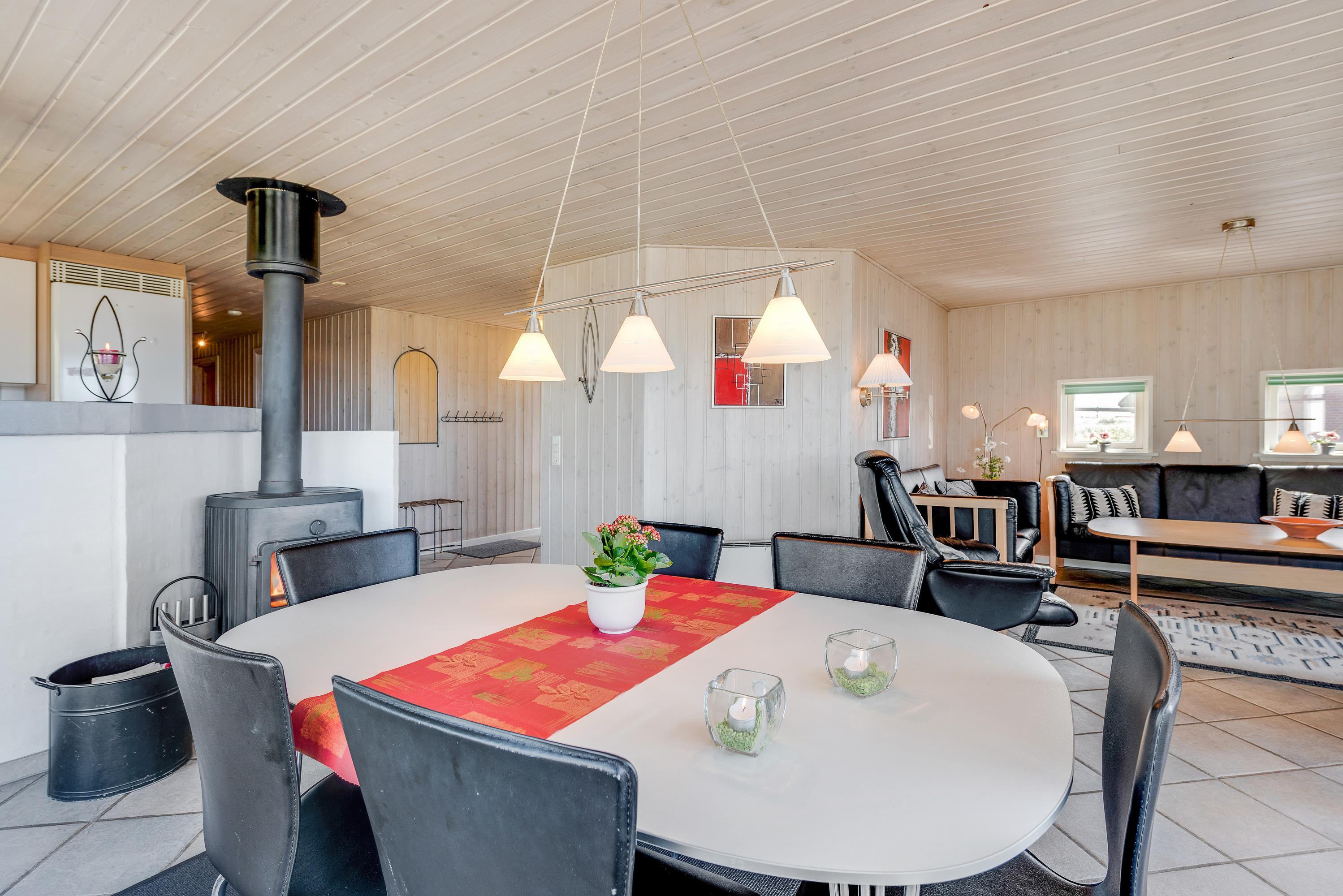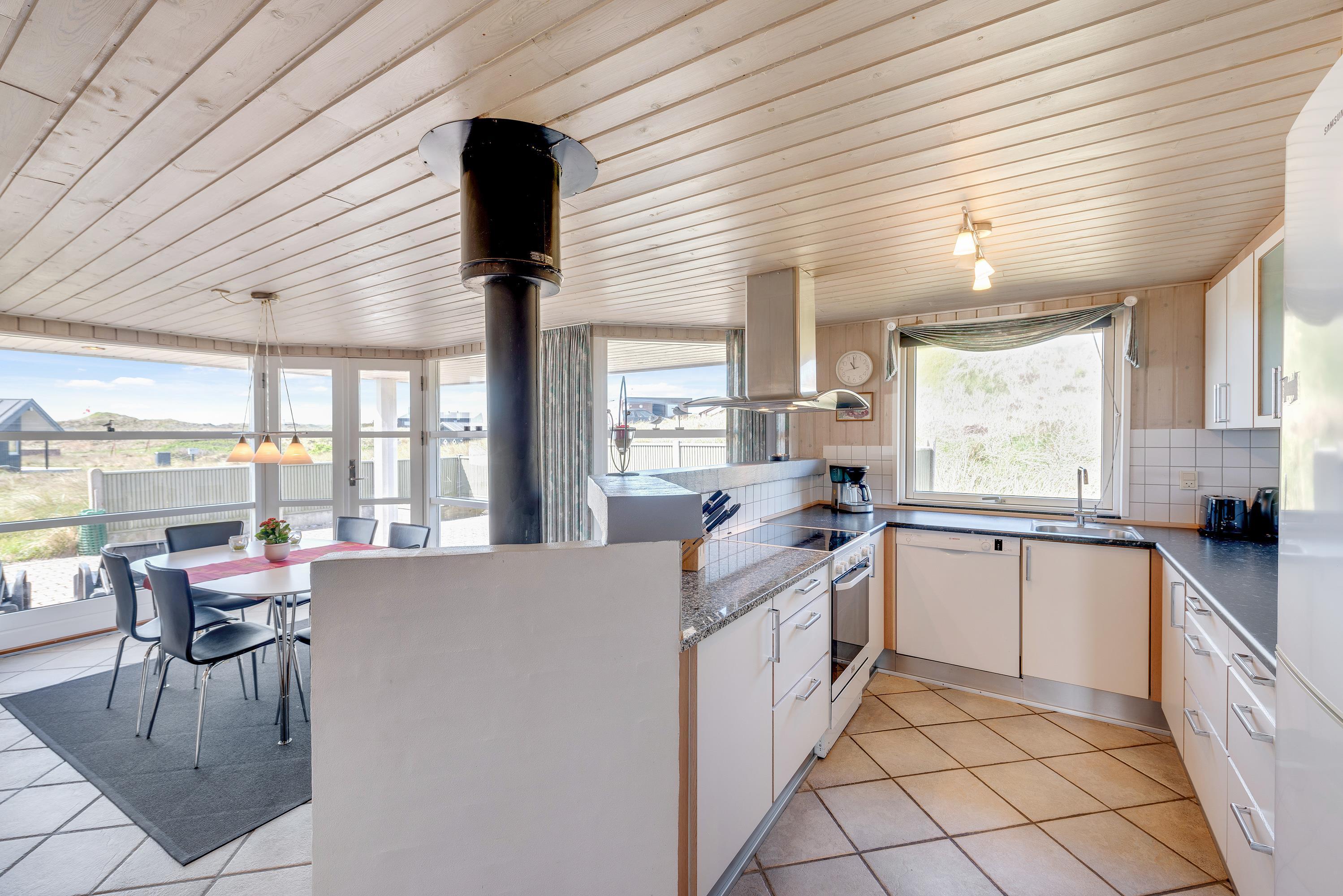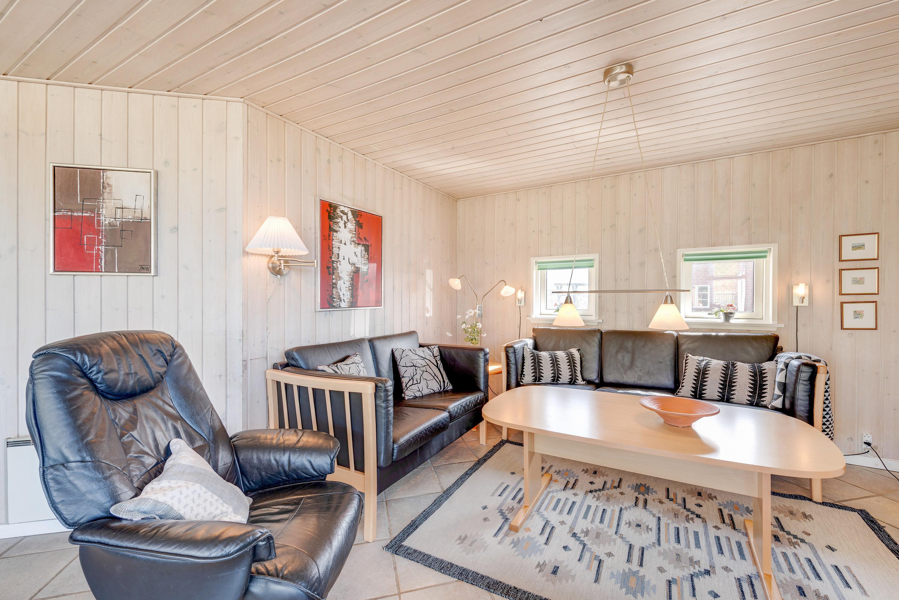 The holiday home is situated just 150 metres from the sea in an area of similar properties. Grab your children and dogs for long walks on Søndervig beach. Marvel at the historic bunkers, collect shells, hunt for amber or build magnificent sandcastles. The beach is worth visiting whether on a hot August summer's day or a windy October afternoon. In Søndervig, you'll also find boutiques, restaurants and cafés. The old town of Ringkøbing and the harbour town of Hvide Sande are also worth exploring.