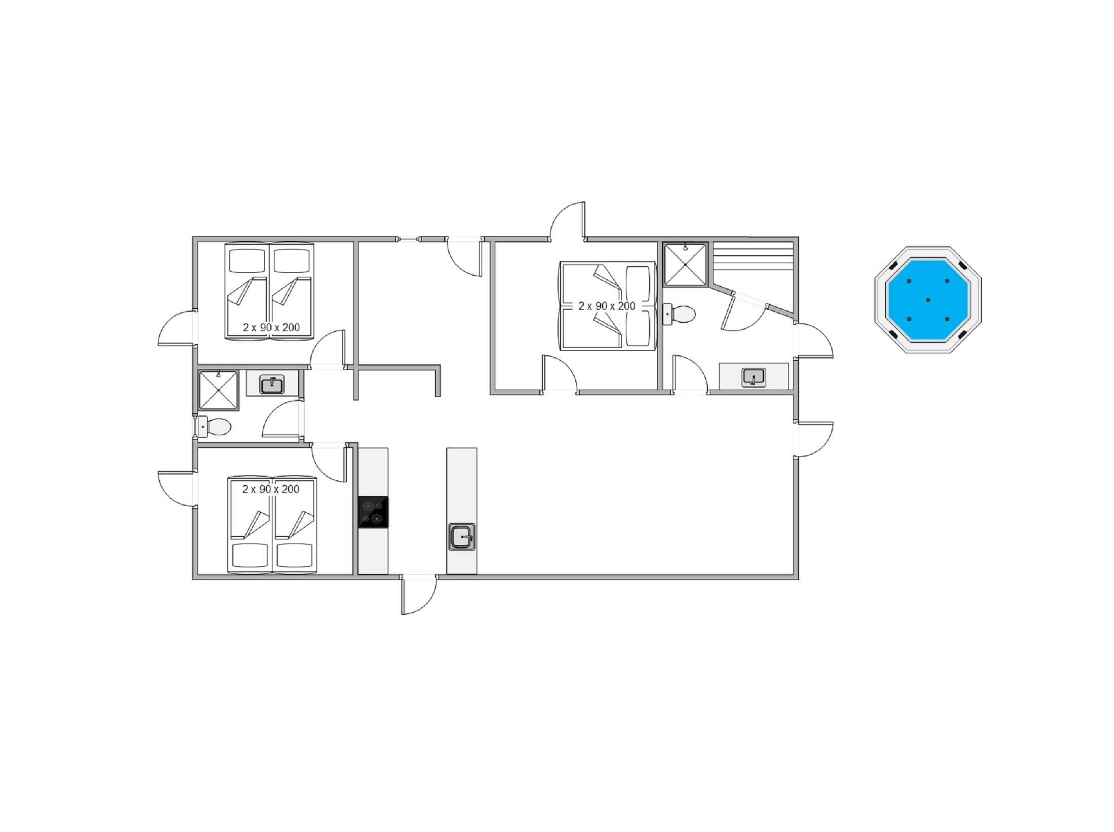 This holiday home with outdoor hot tub is situated at Lodbergsvej 76 in Søndervig, close to the beach on an attractive dune plot. With both a sauna and outdoor hot tub, you'll enjoy excellent wellness facilities.