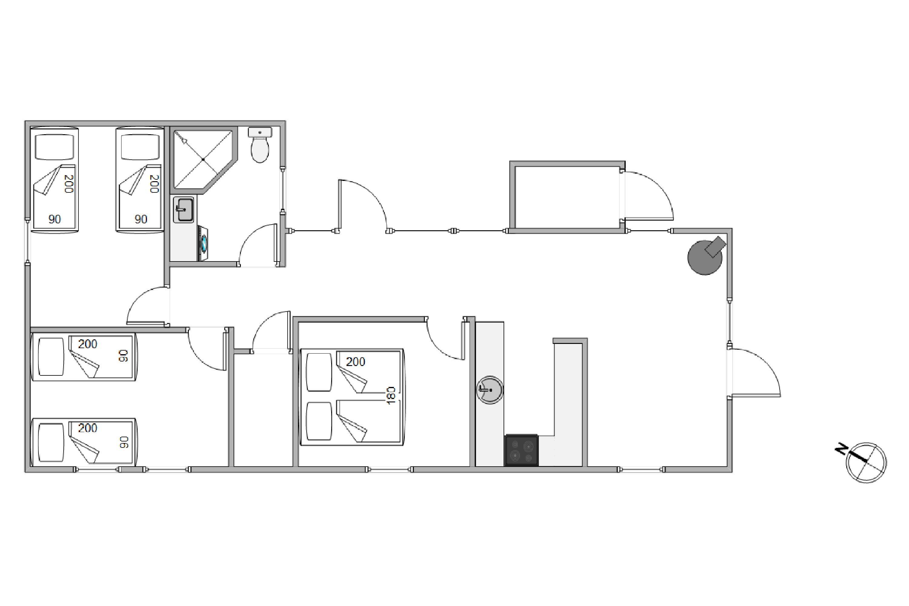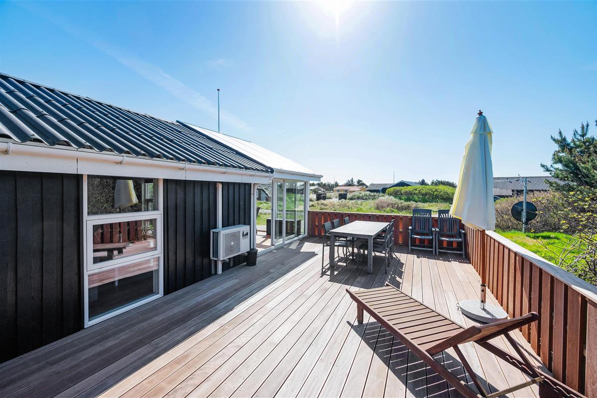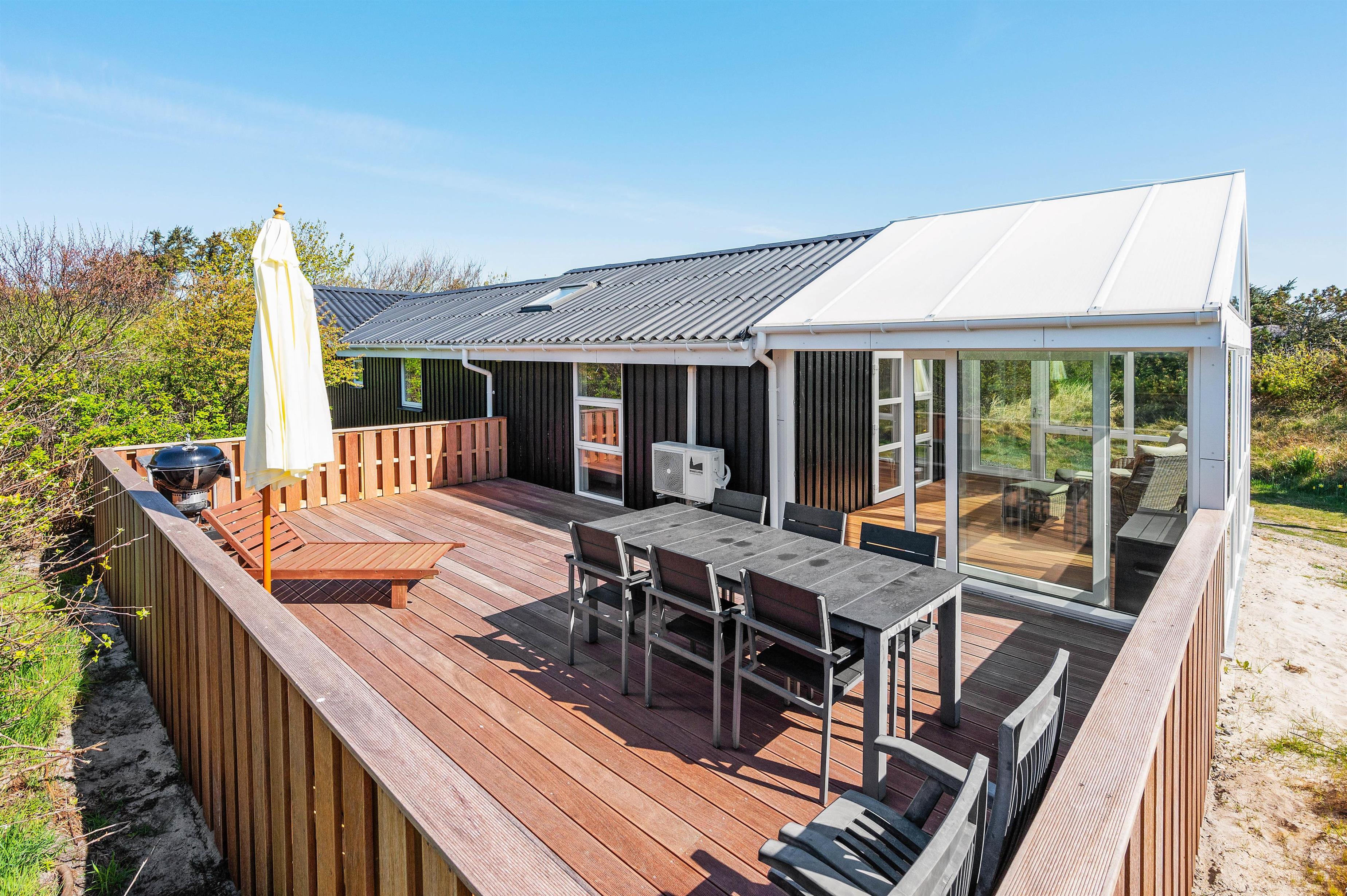 The holiday home has been extended to include a covered, enclosed terrace of approximately 18 square metres on the south side. Additionally, the west-facing terrace has been expanded by 5-6 square metres.
