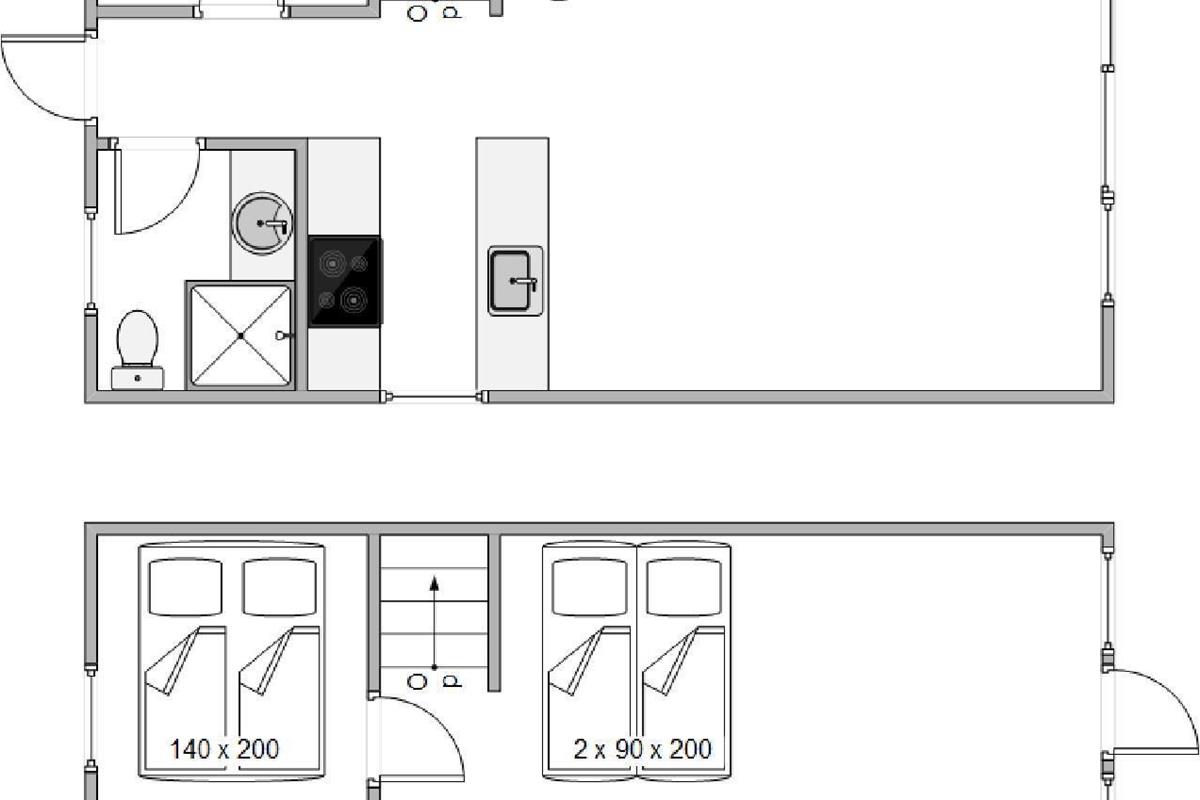 The 100 square metres of living space in this cosy and charmingly furnished holiday home is spread across two floors, connected by stairs leading from the living room. Light colours adorn the walls, and the large panoramic window provides beautiful natural lighting.