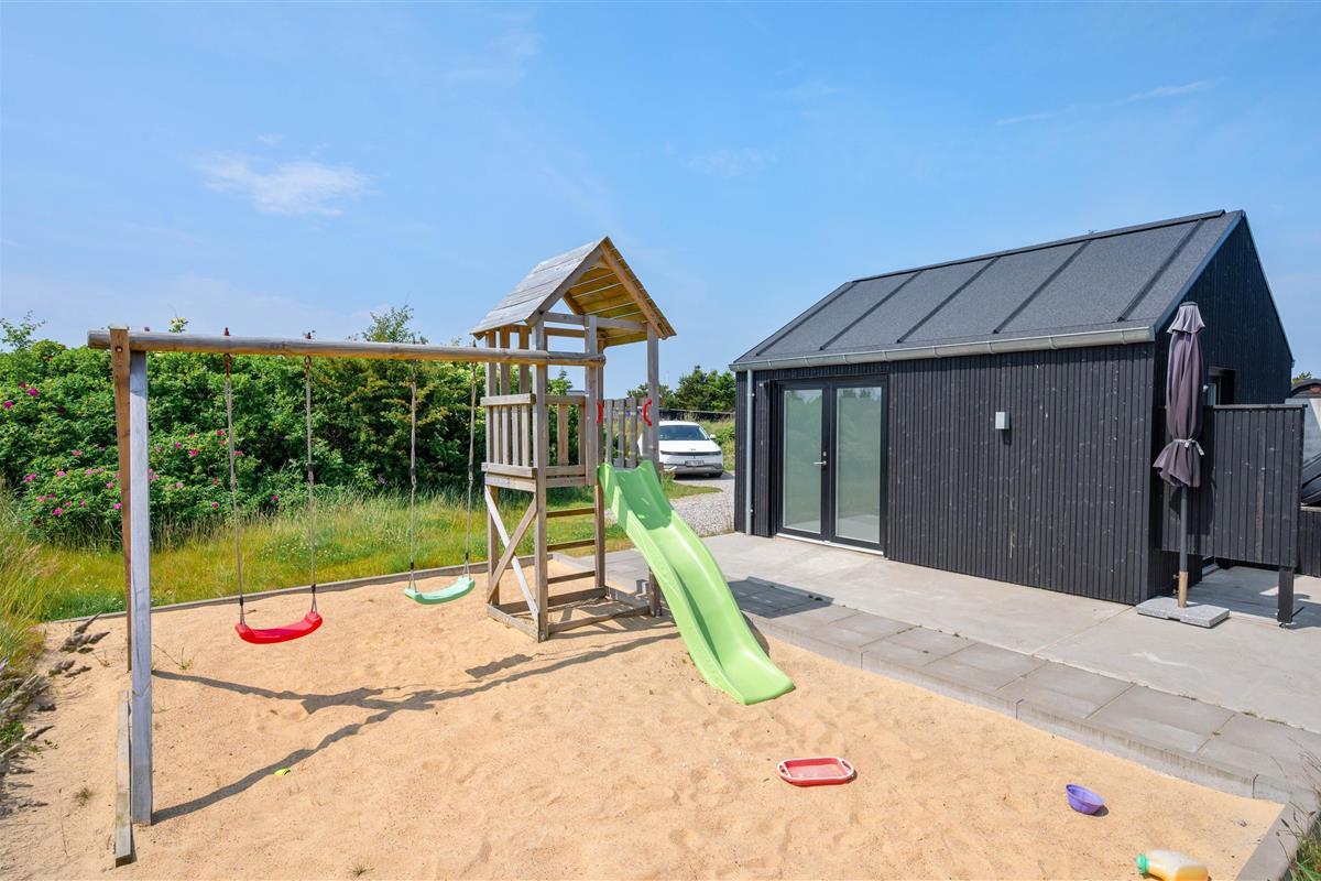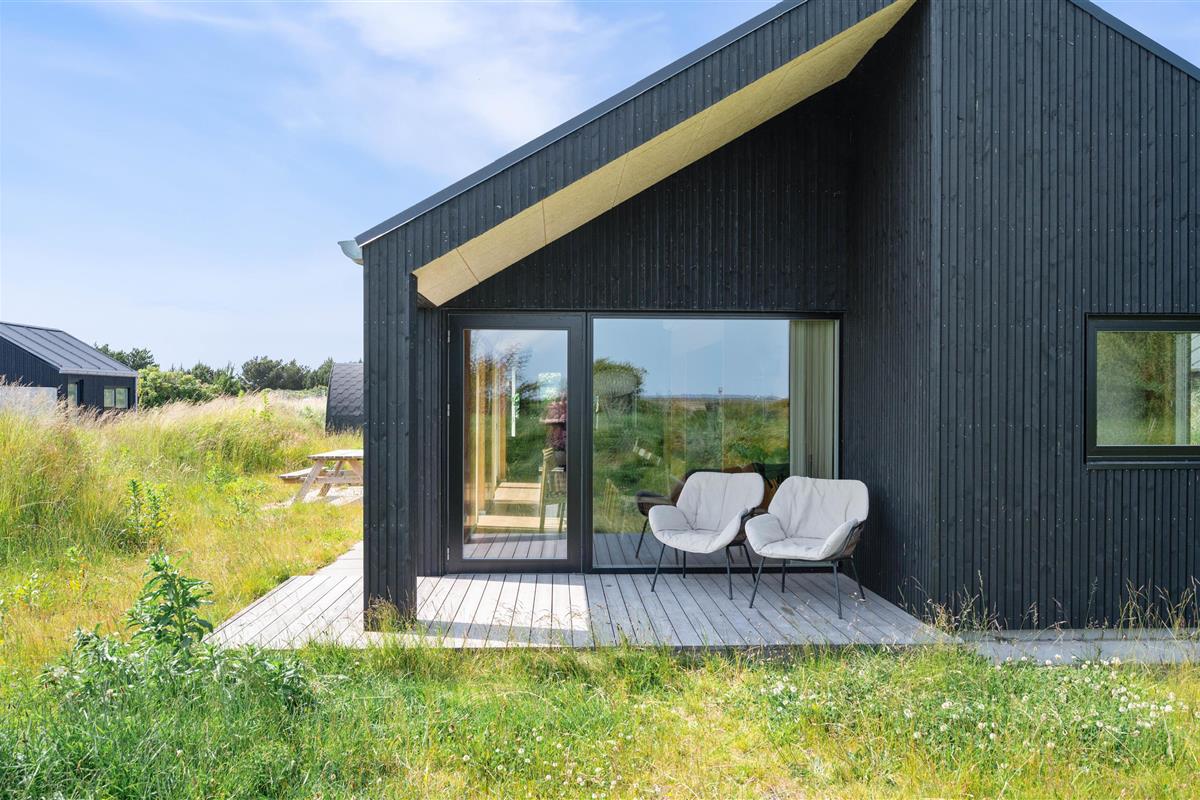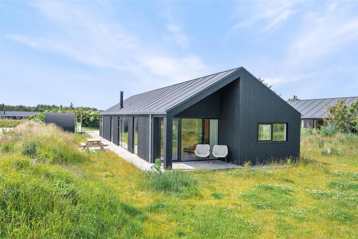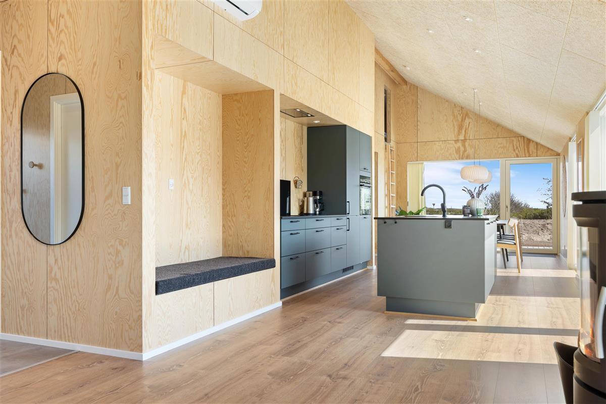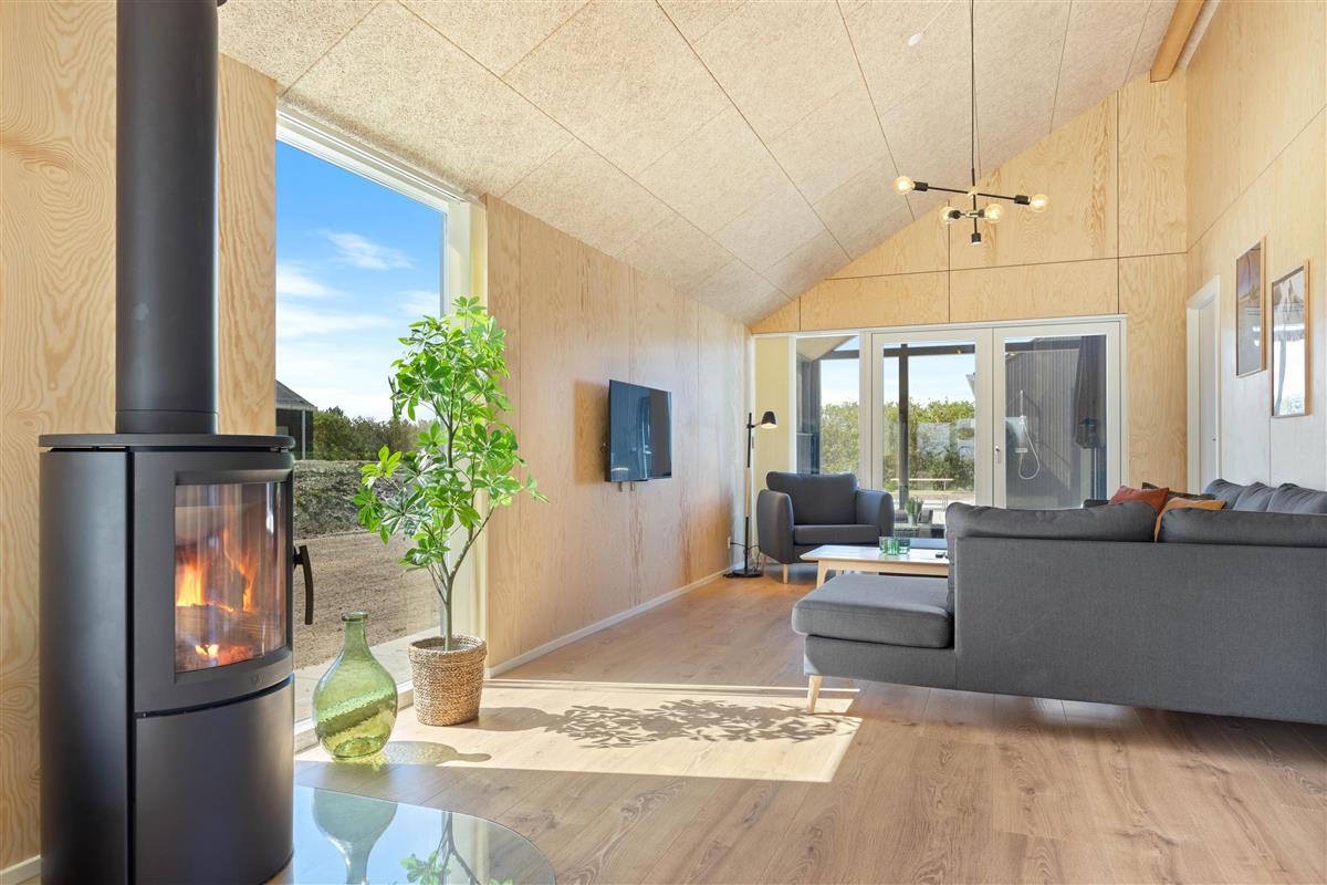 You'll feel at home straight away in this modern holiday home in Søndervig. Built in 2023, the holiday home features stylish, comfortable furnishings complemented perfectly by wonderful natural light. The spacious living room is your gathering point for cosy moments of cooking, gaming and watching films together. The living room fireplace creates both a wonderful holiday atmosphere and cosy warmth. Additionally, there's an energy-efficient heat pump ensuring comfortable temperatures throughout.