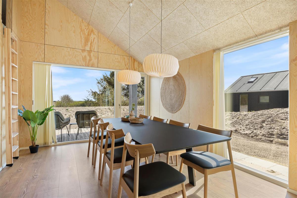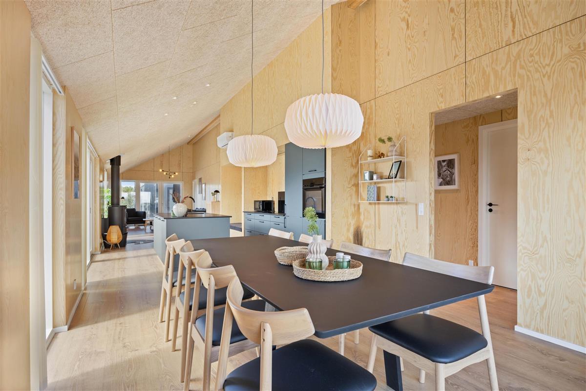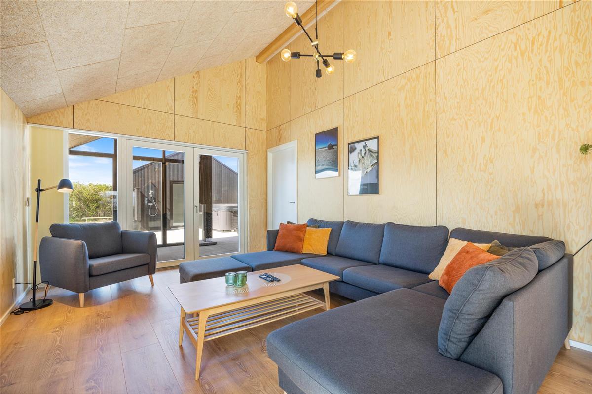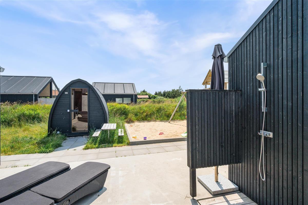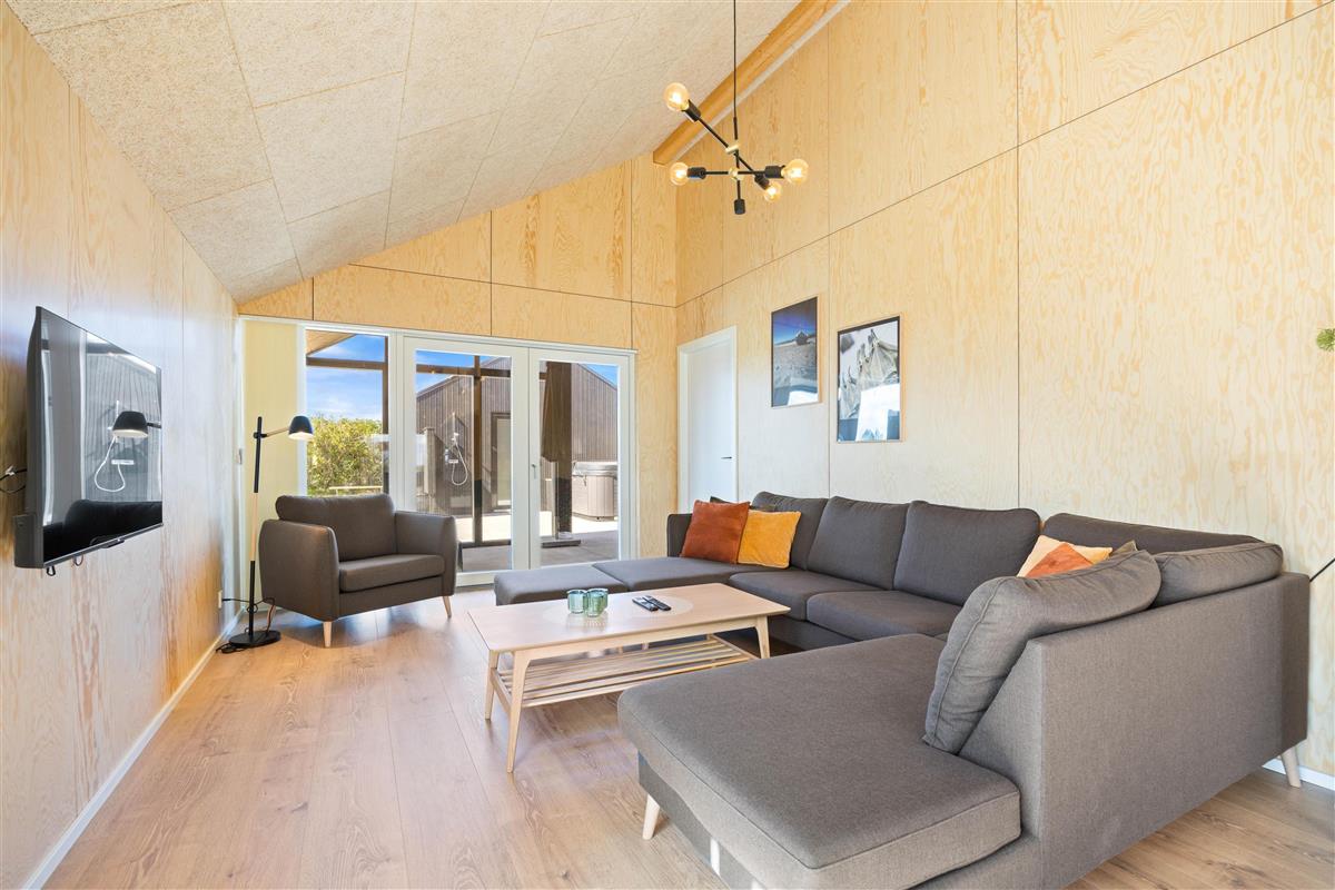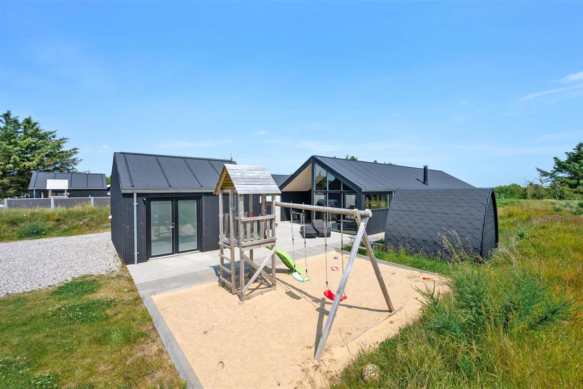 You'll feel at home straight away in this modern holiday home in Søndervig. Built in 2023, the holiday home features stylish, comfortable furnishings complemented perfectly by wonderful natural light. The spacious living room is your gathering point for cosy moments of cooking, gaming and watching films together. The living room fireplace creates both a wonderful holiday atmosphere and cosy warmth. Additionally, there's an energy-efficient heat pump ensuring comfortable temperatures throughout.
