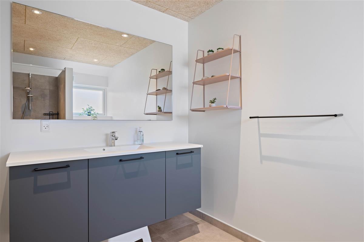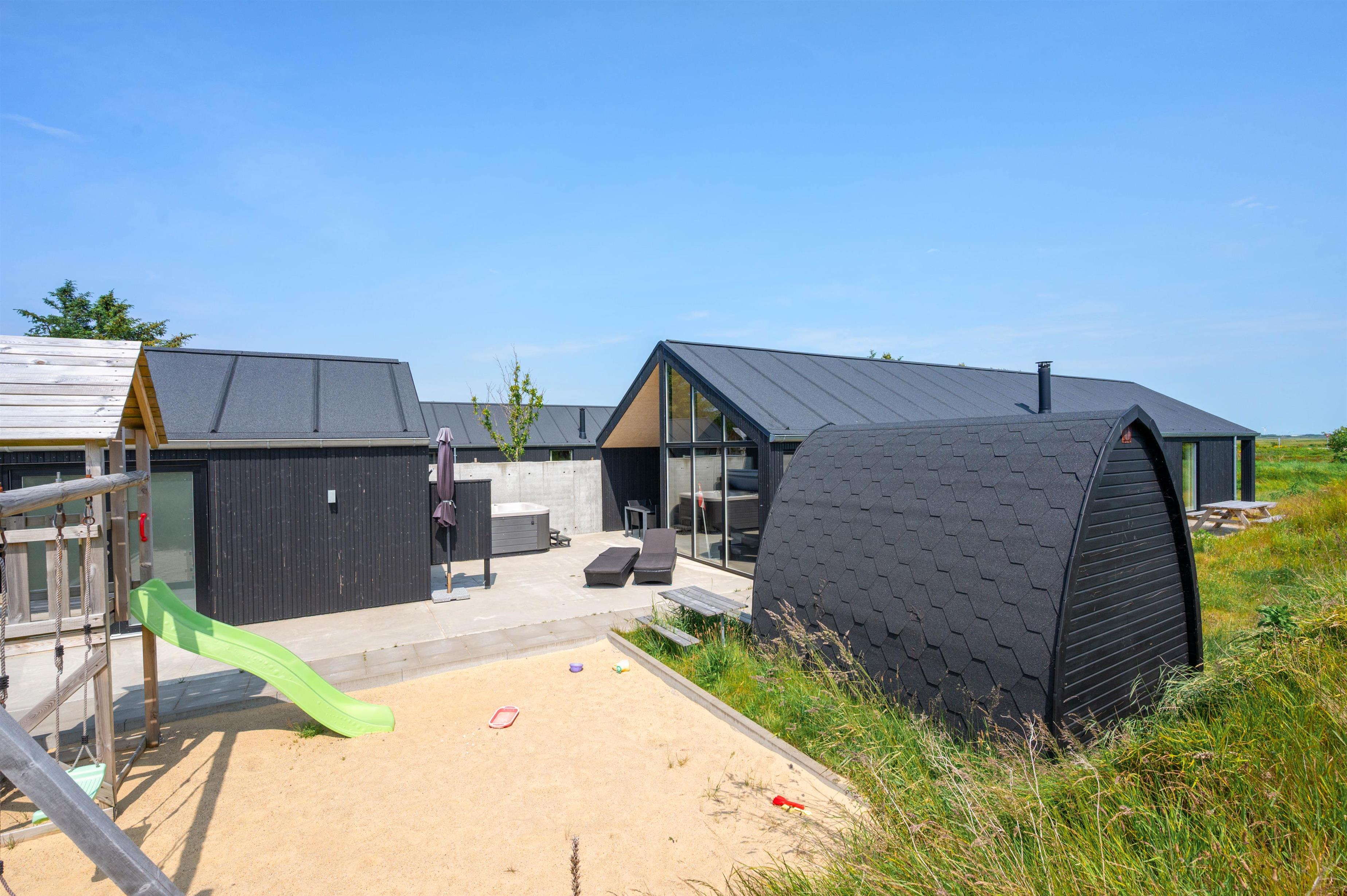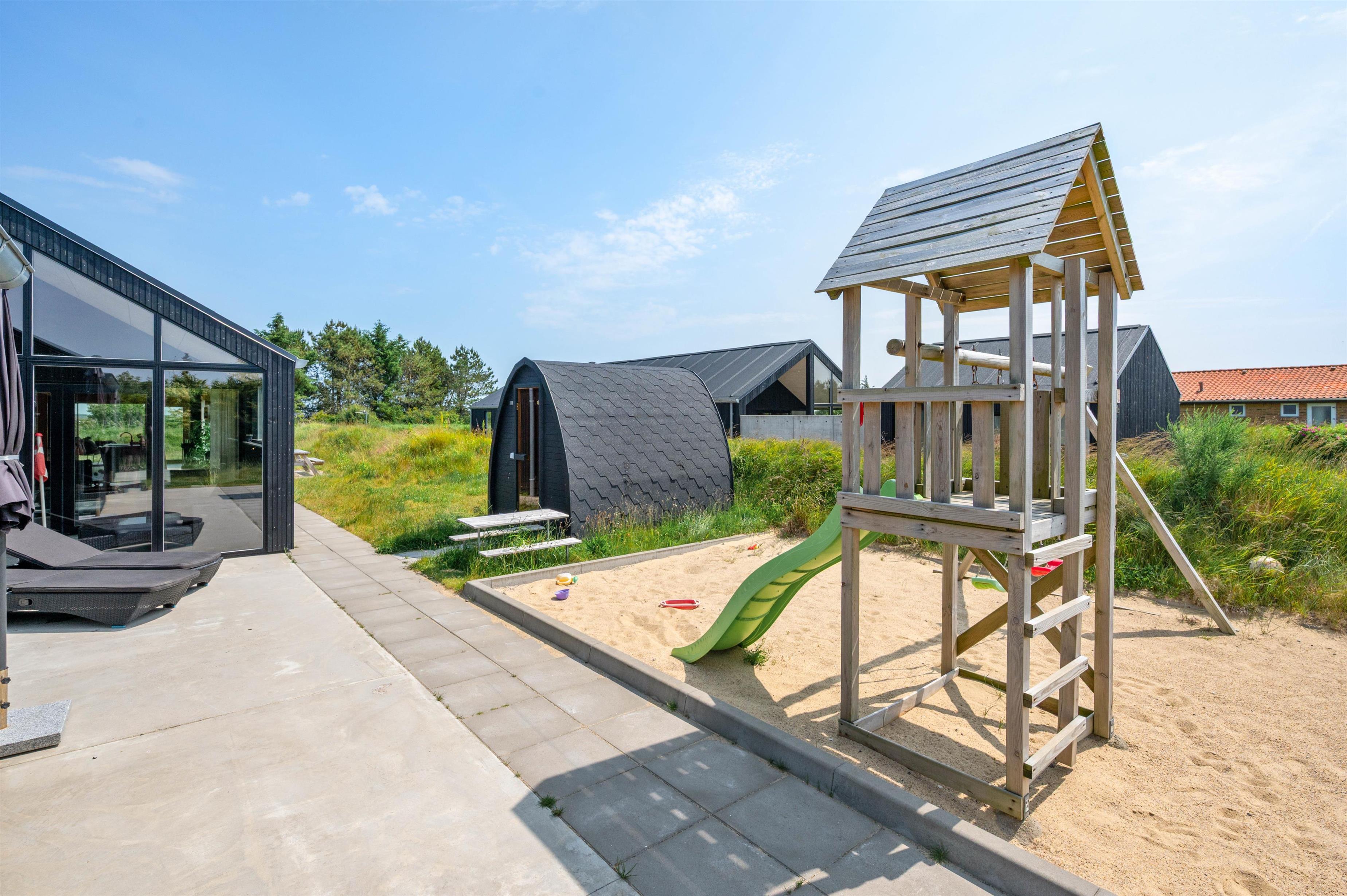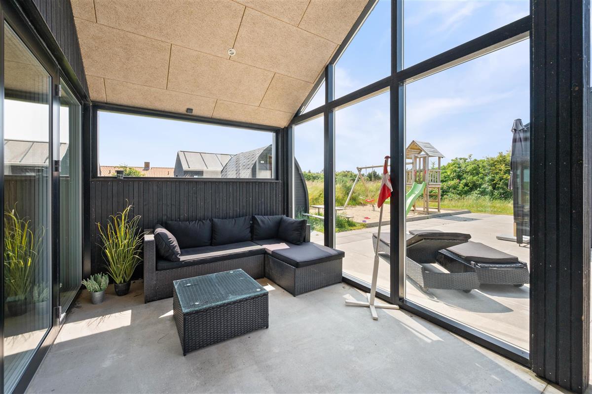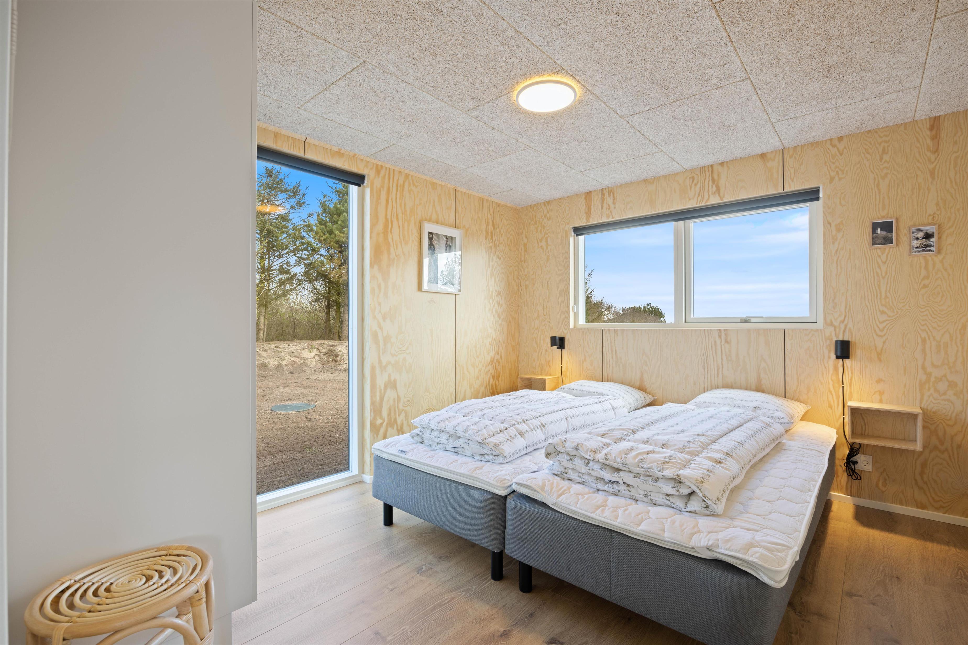 You'll feel at home straight away in this modern holiday home in Søndervig. Built in 2023, the holiday home features stylish, comfortable furnishings complemented perfectly by wonderful natural light. The spacious living room is your gathering point for cosy moments of cooking, gaming and watching films together. The living room fireplace creates both a wonderful holiday atmosphere and cosy warmth. Additionally, there's an energy-efficient heat pump ensuring comfortable temperatures throughout.